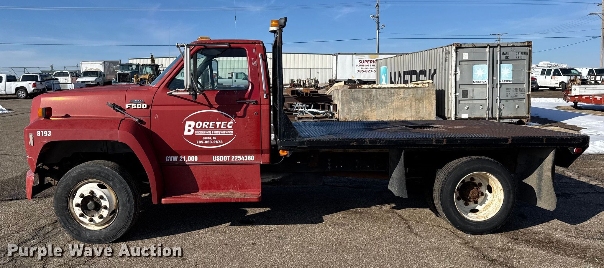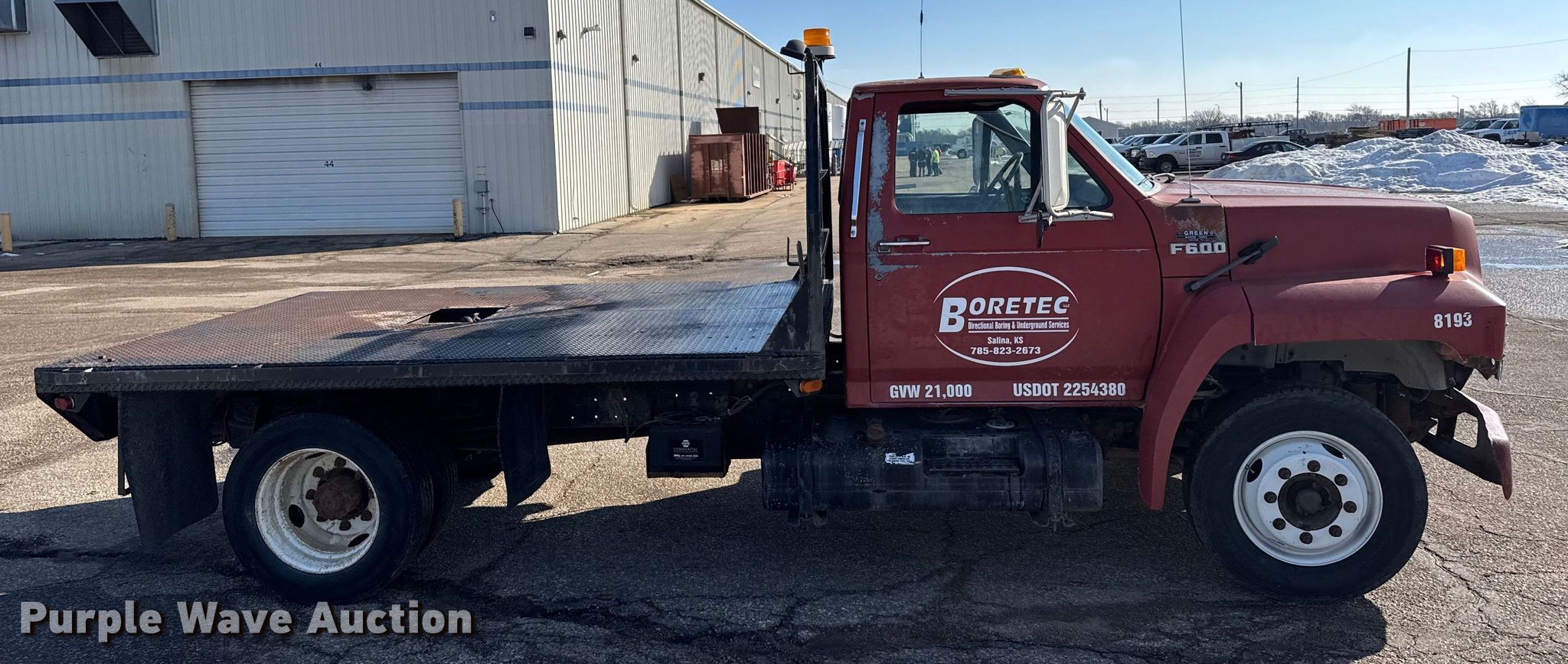 Purple Wave is selling a used Flat Bed Truck in Kansas. This item is a 1994 Ford F600 flatbed truck with the following: Miles: 107,494 on odometer, VIN: 1FDNF62J4RVA38193
