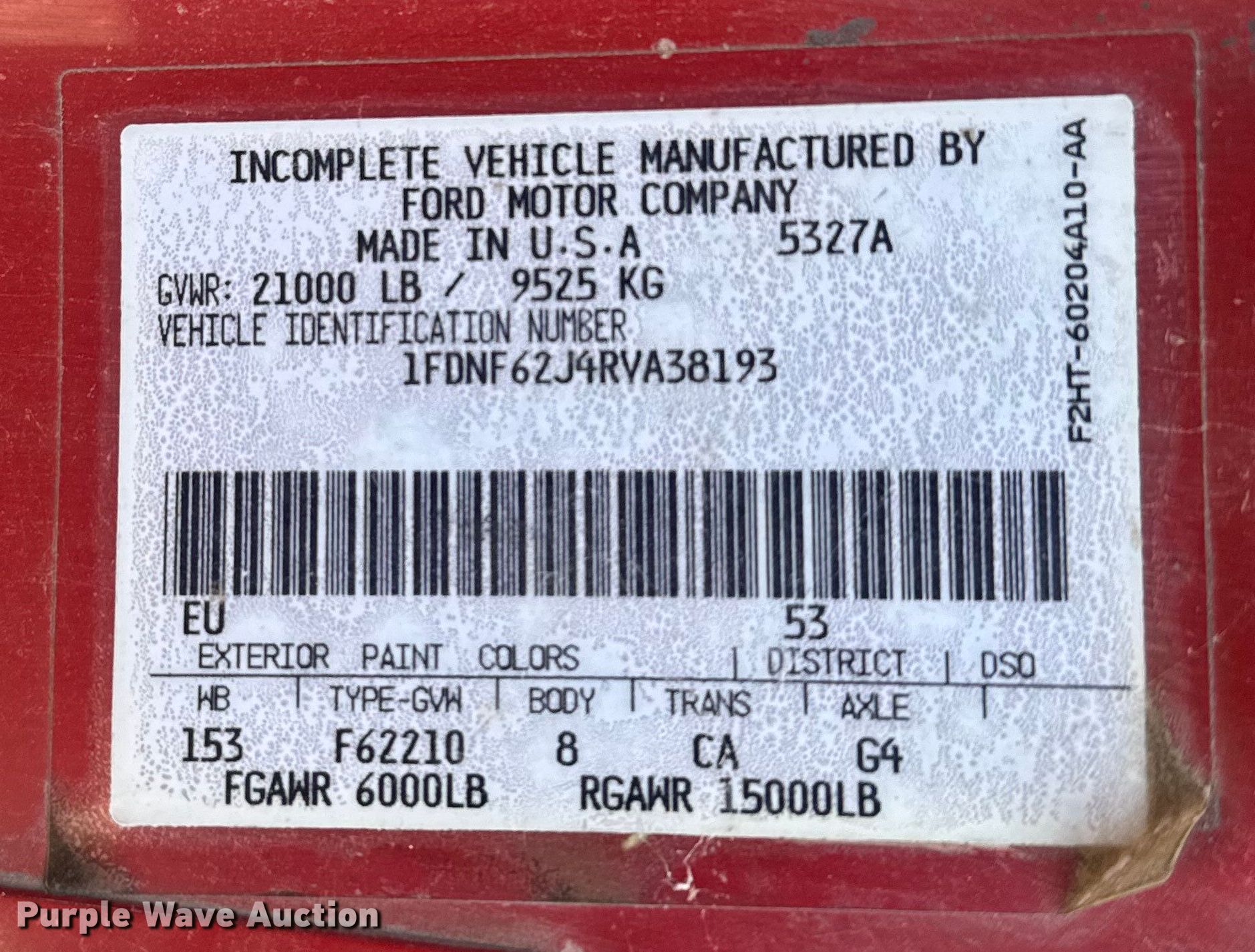 - VIN: 1FDNF62J4RVA38193