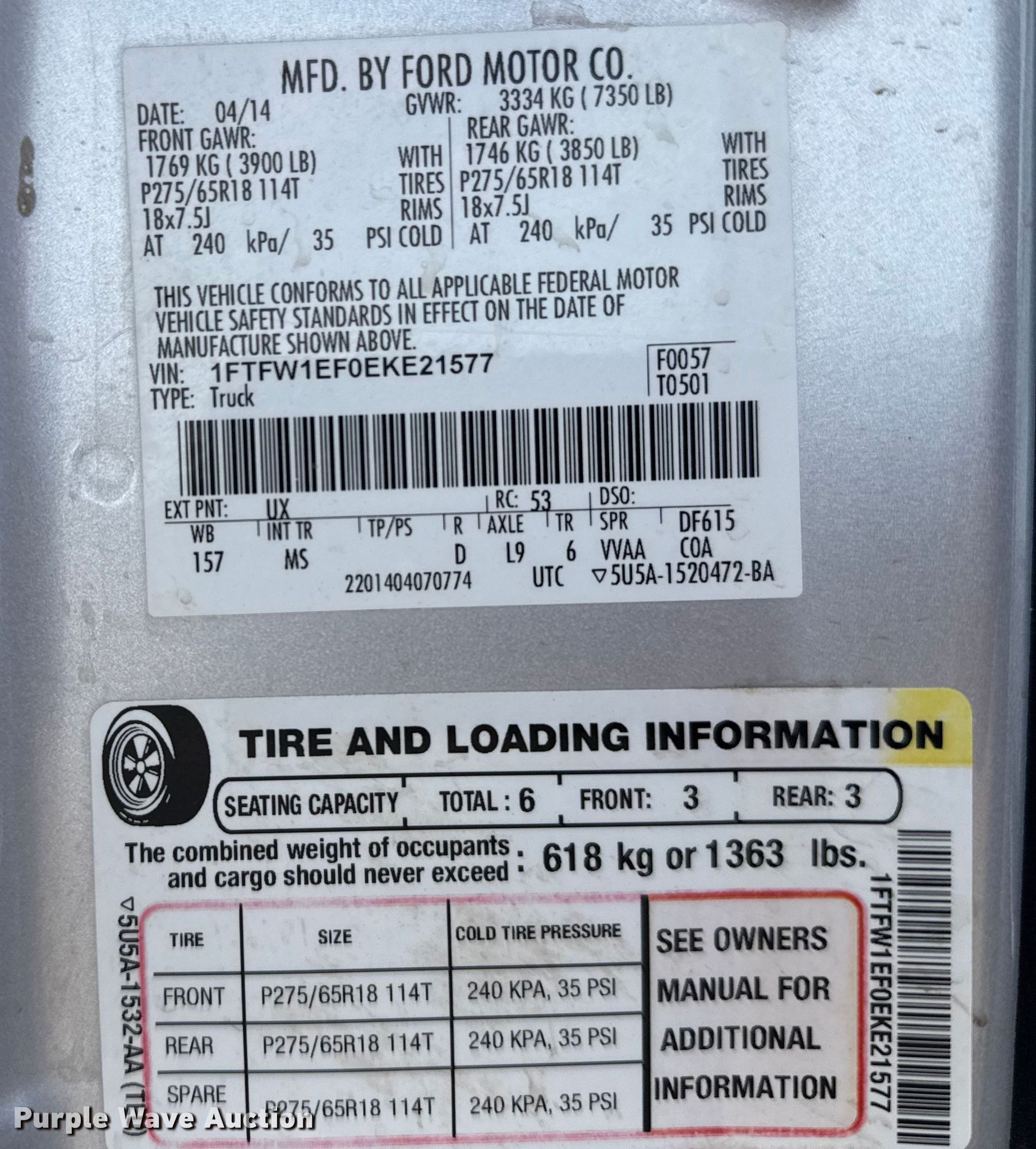 Purple Wave is selling a used 1/2 Ton Pickup or Van in Kansas. This item is a 2014 Ford F150 Crew Cab pickup truck with the following: Miles: 271,784 on odometer, VIN: 1FTFW1EF0EKE21577