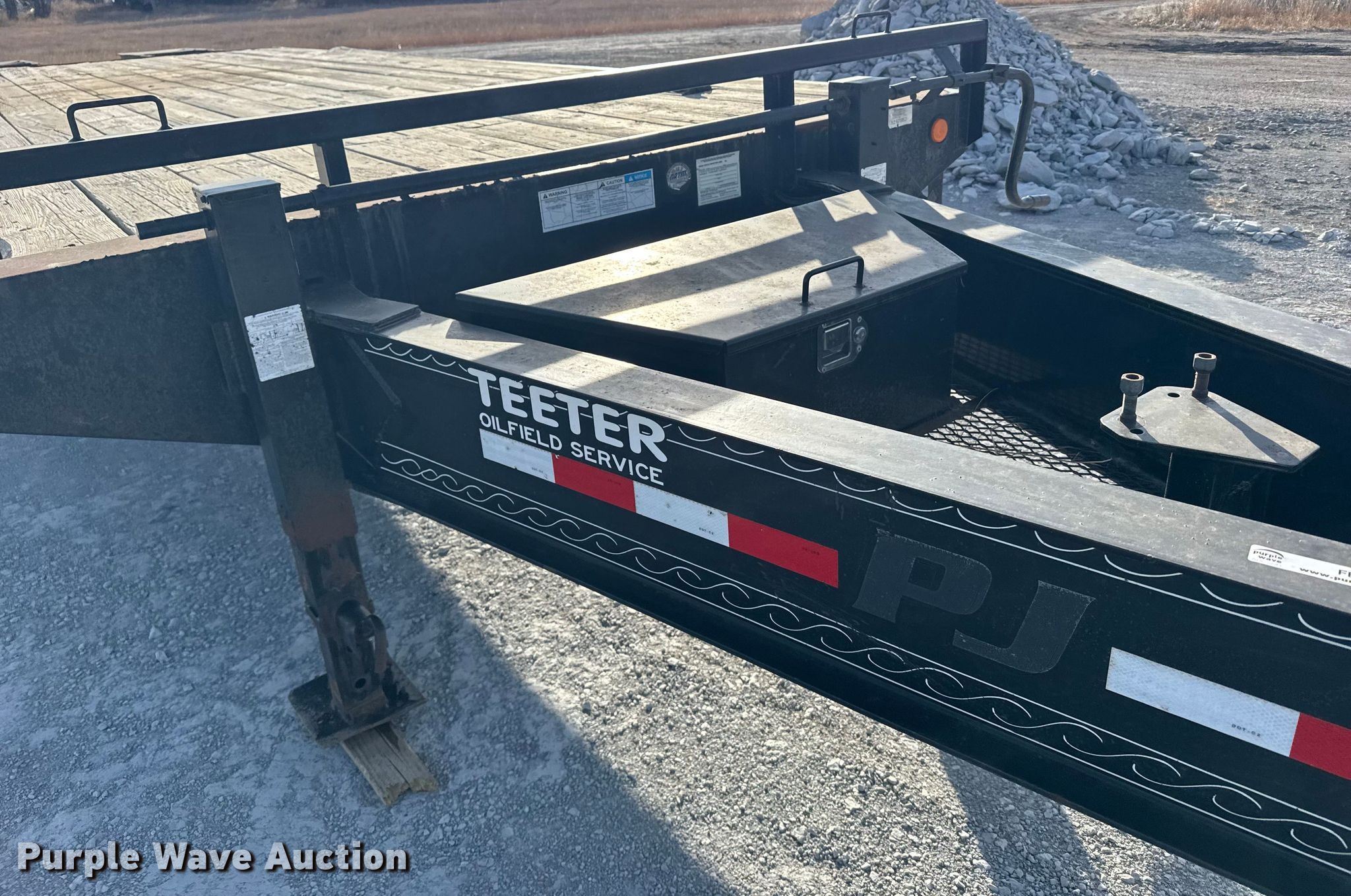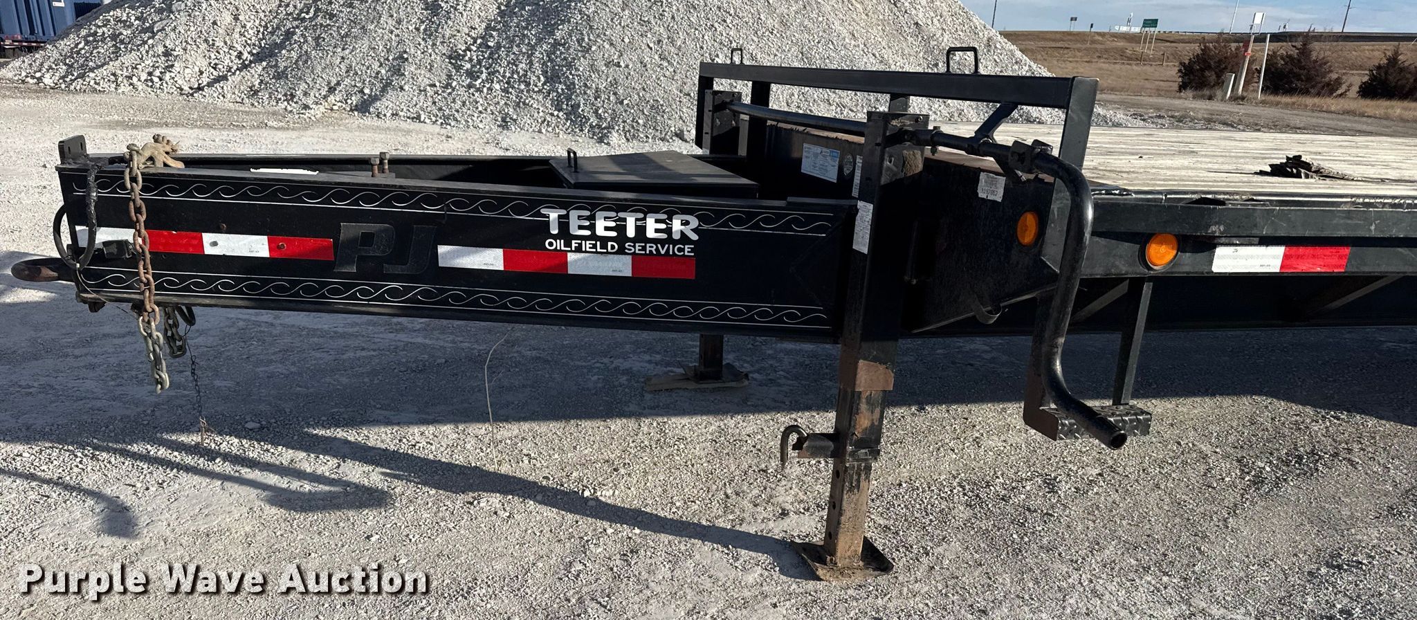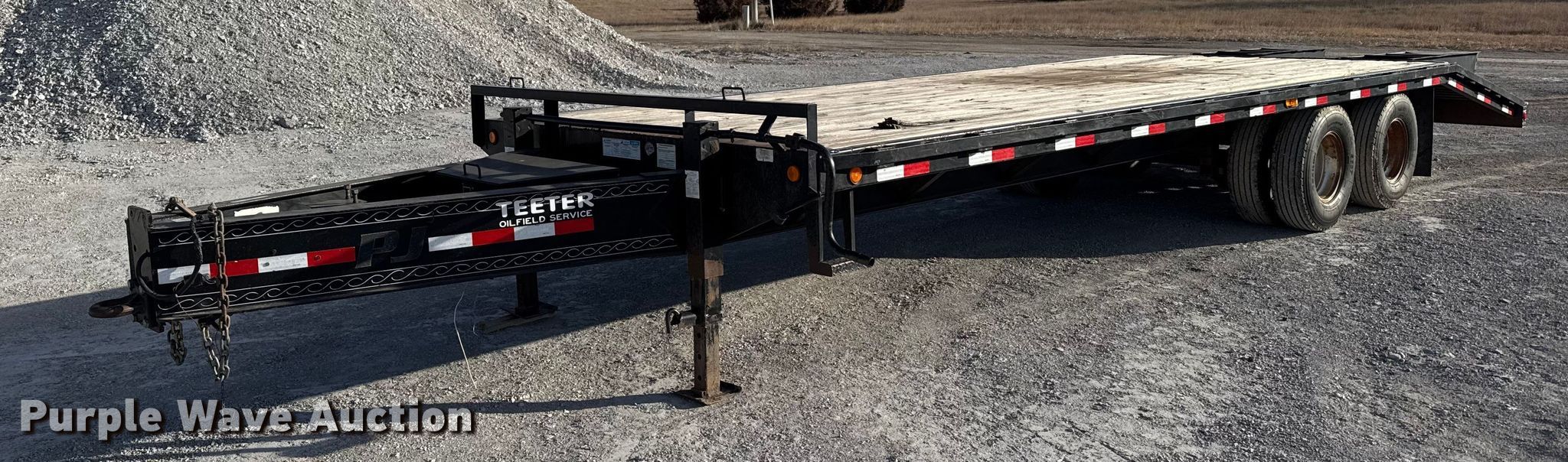 2014 PJ FD262 equipment trailer. VIN: 4P5FD2622E1197862. Dimensions Overall Length: 32', Width: 102", Deck Length: 20' 9", Width: 96", Deck height: 36", Tail length: 6' 8", Ramps: Manual Length: 60". Features Deck type: Wood. Chassis Hitch: Pintle, Landing gear: Dual, Suspension: Spring, Brakes: Electric, Axles: Tandem, GVWR: 25,000 lbs. Tires Steel wheels, Size: 235/85R16. Kansas title. Title distribution may be delayed up to 30 days from verification of funds. Teeter Oilfield Service, LLC. Grinnell, KS 67738