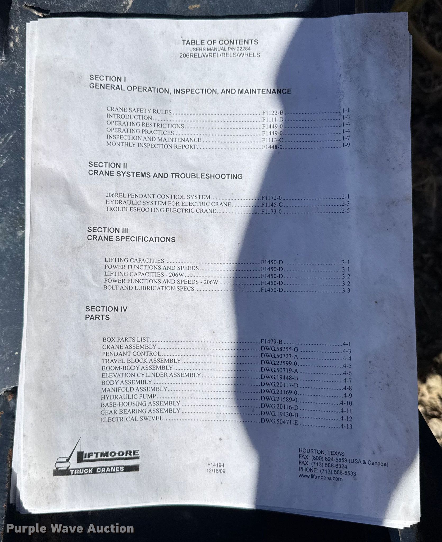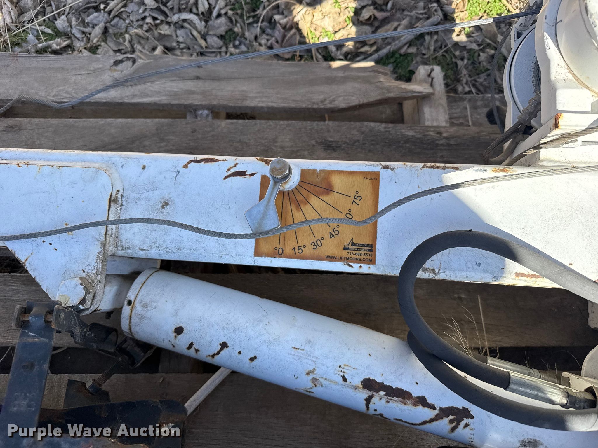 Purple Wave is selling a used Truck Part and Attach. in Kansas. This item is a Liftmoore truck crane with the following: Serial: 11-2602W99, Capacity: 2,000 lbs
