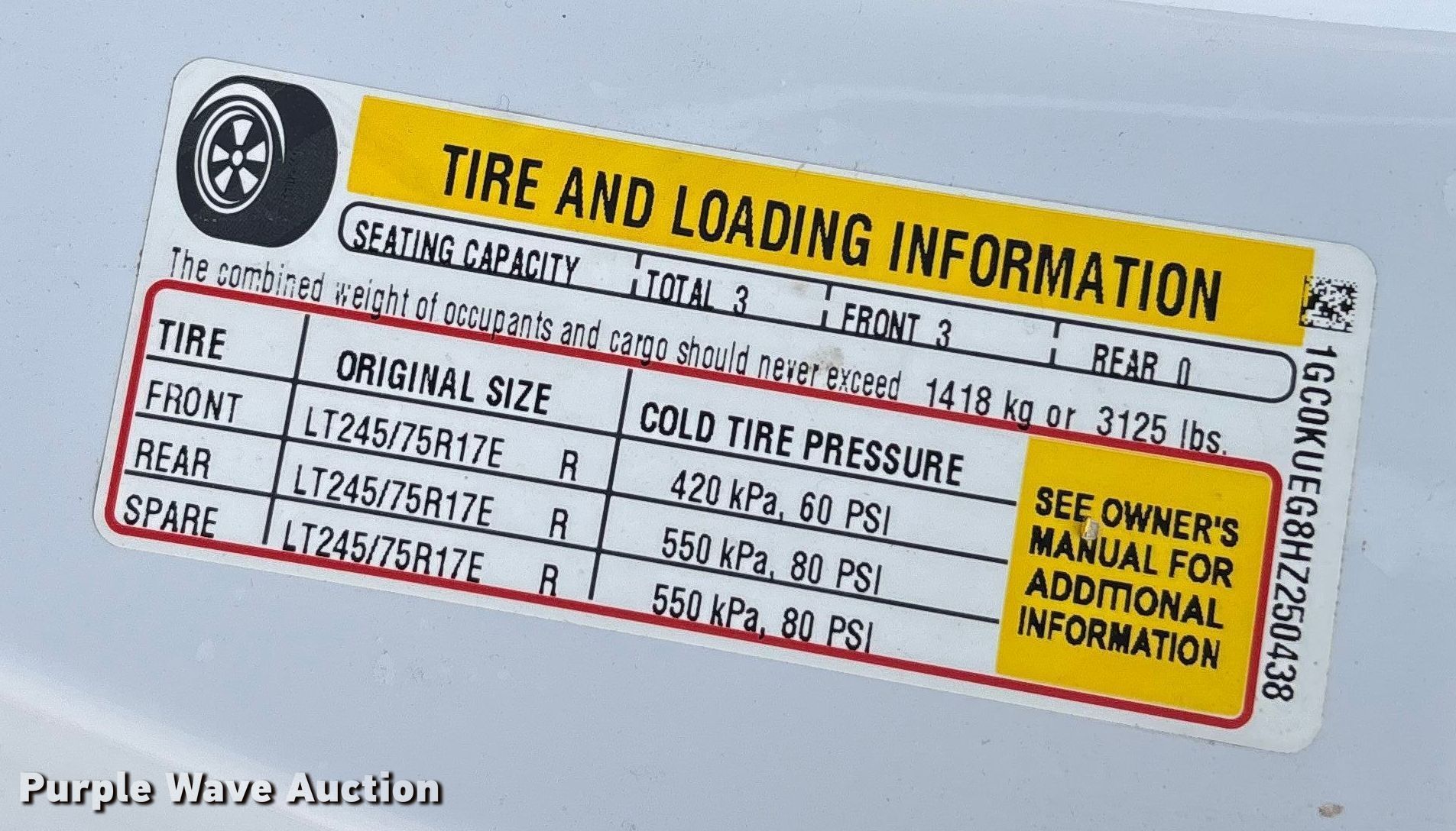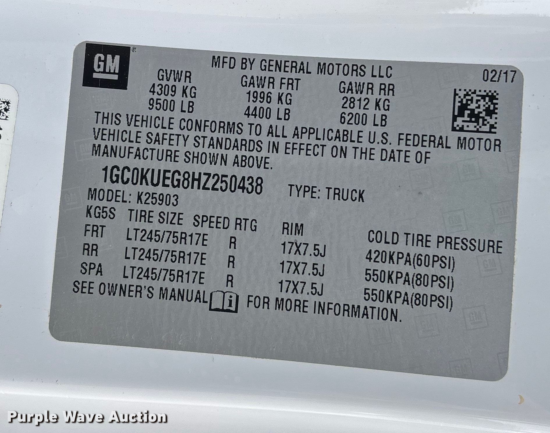 - VIN: 1GC0KUEG8HZ250438