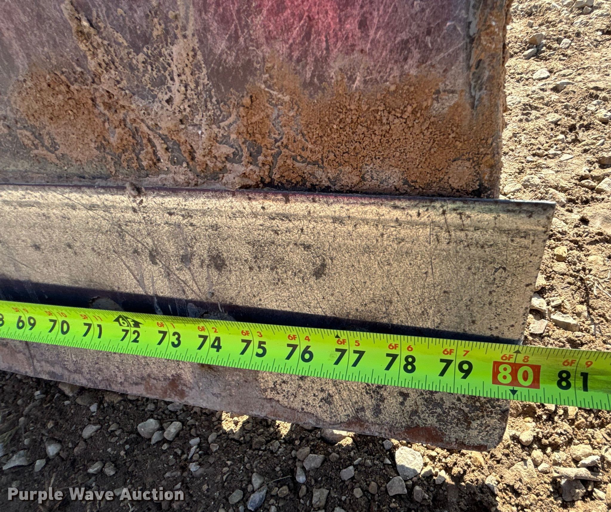 Bobcat 80 dozer skid steer dozer blade. Serial: 232111877, Width: 80", Cutting edge: Bolt-on. Fortuna Fire Protection District. Forutna, MO 65034