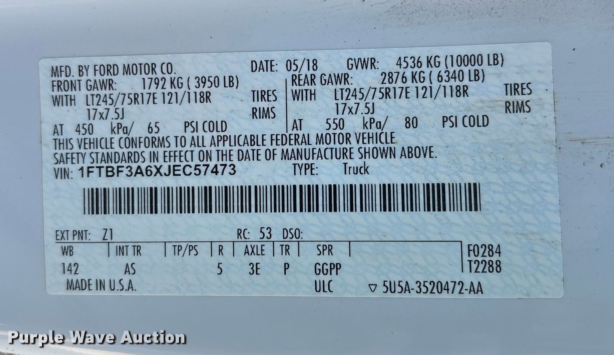 - VIN: 1FTBF3A6XJEC57473