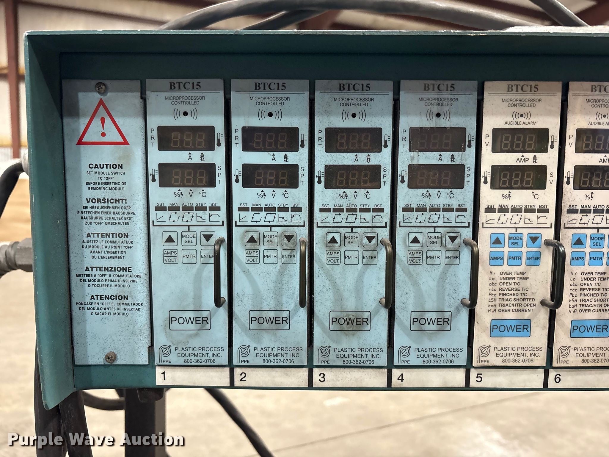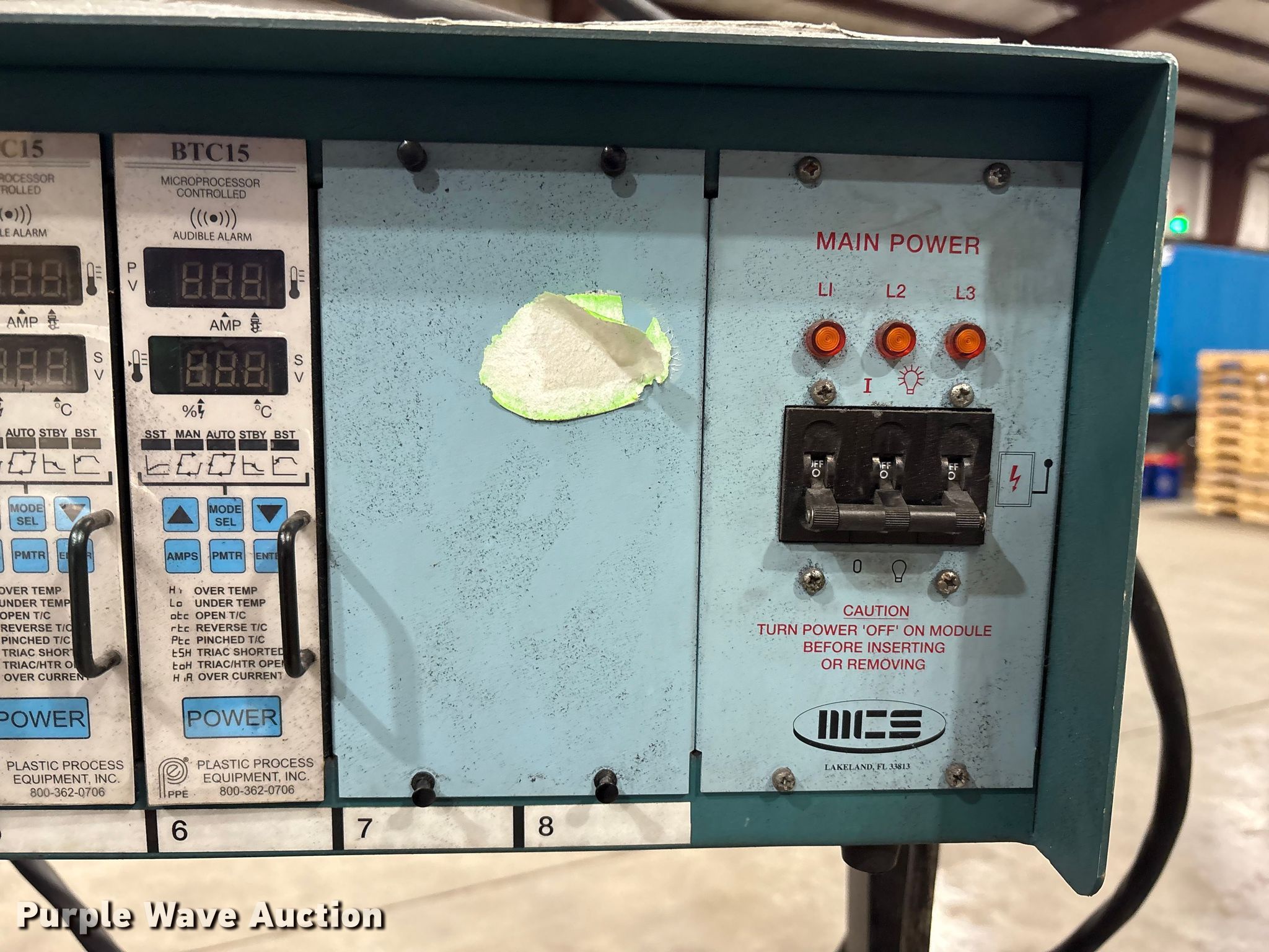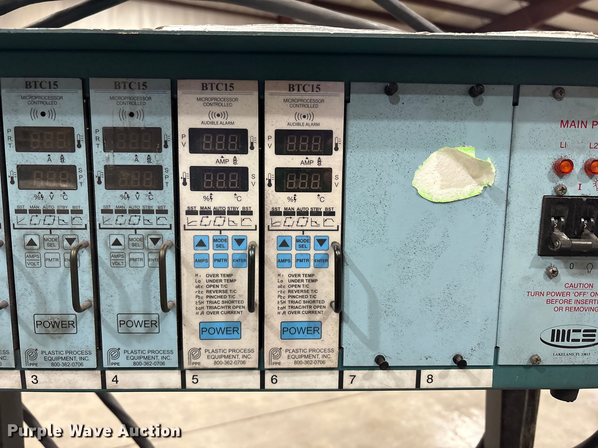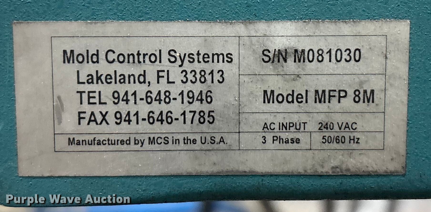 Purple Wave is selling a used Tools in Kentucky. This item is a Mold Control Systems MFP 8M temperature control unit with the following: Serial: M081030, 6-BTC15 controllers