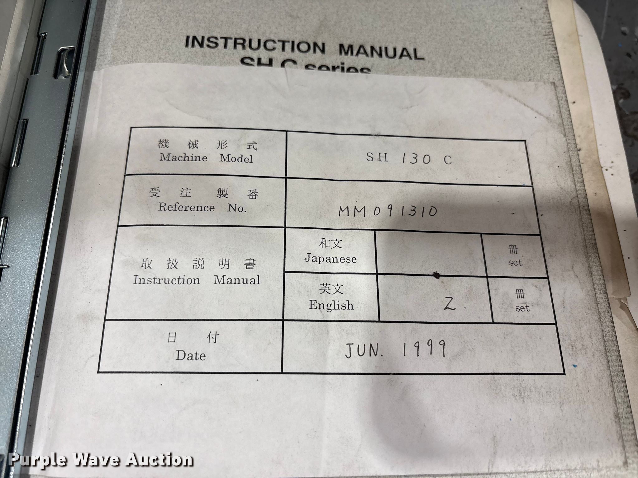 Sumitomo SH130C plastic injection molding machine | Wednesday March 11 Vehicles and Equipment Auction