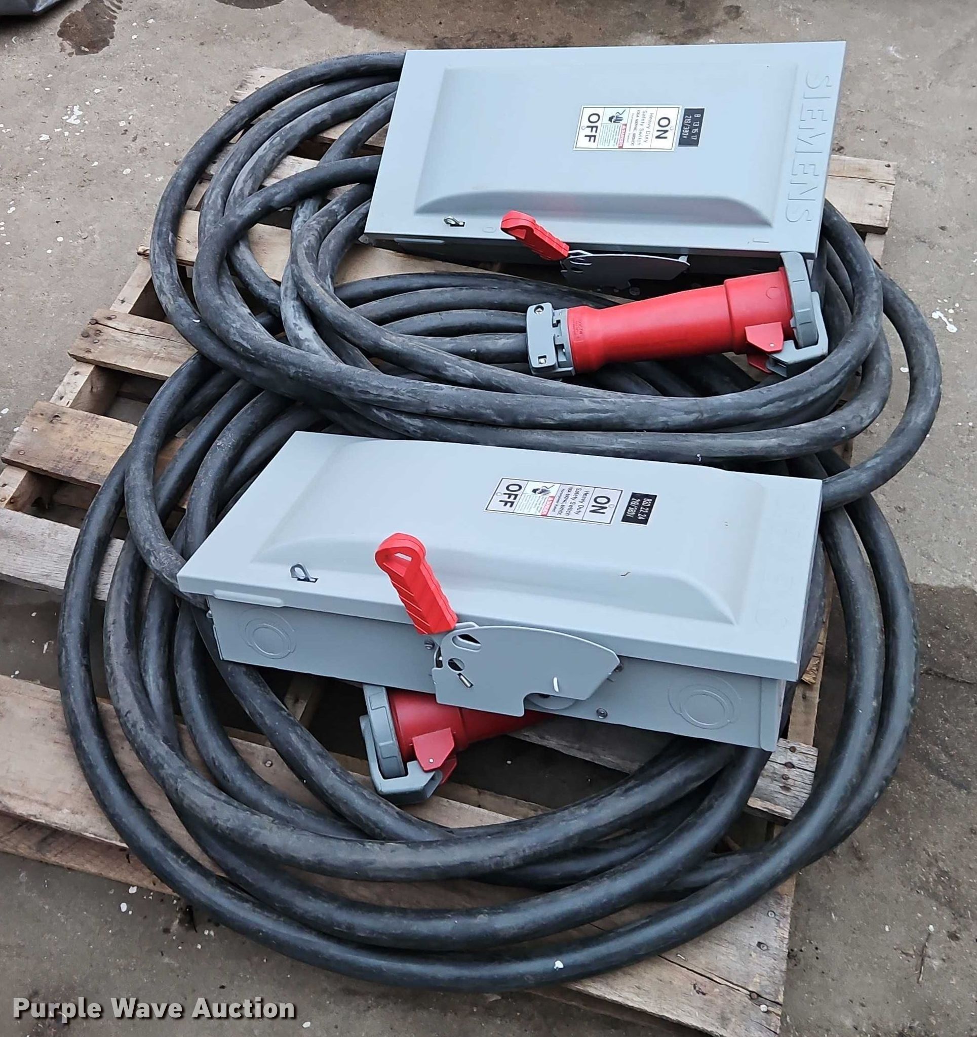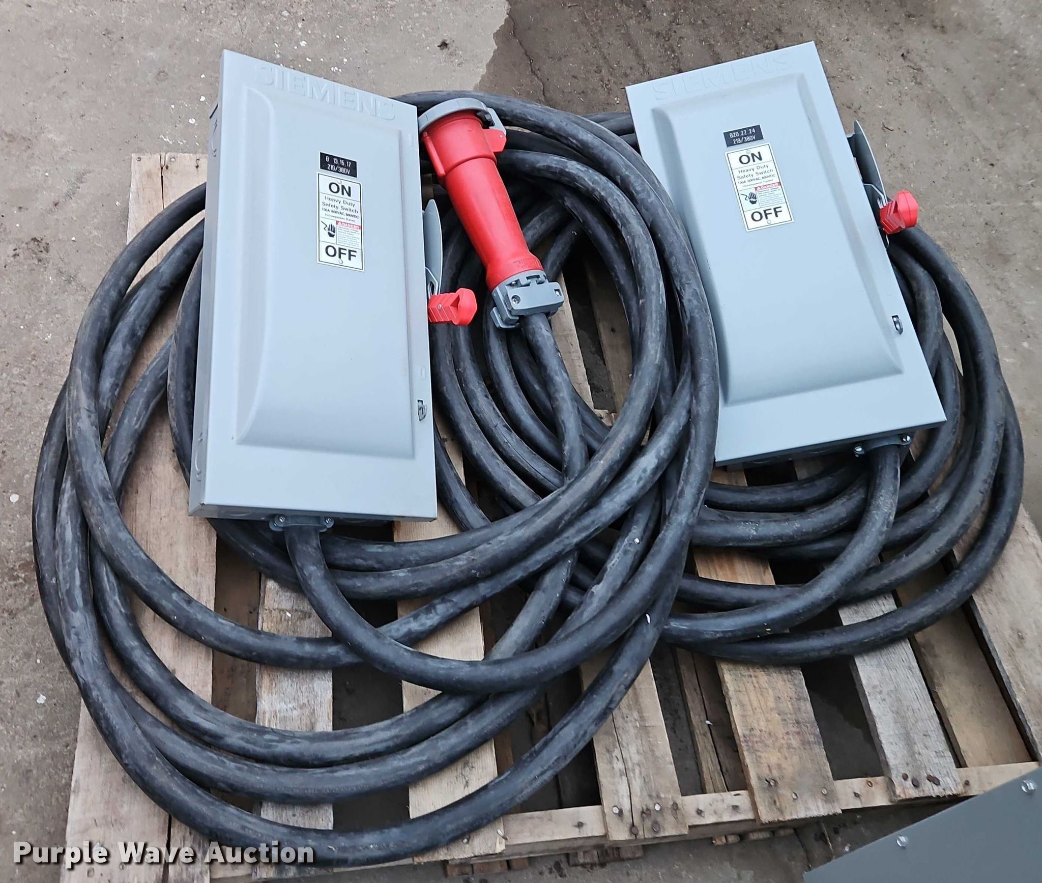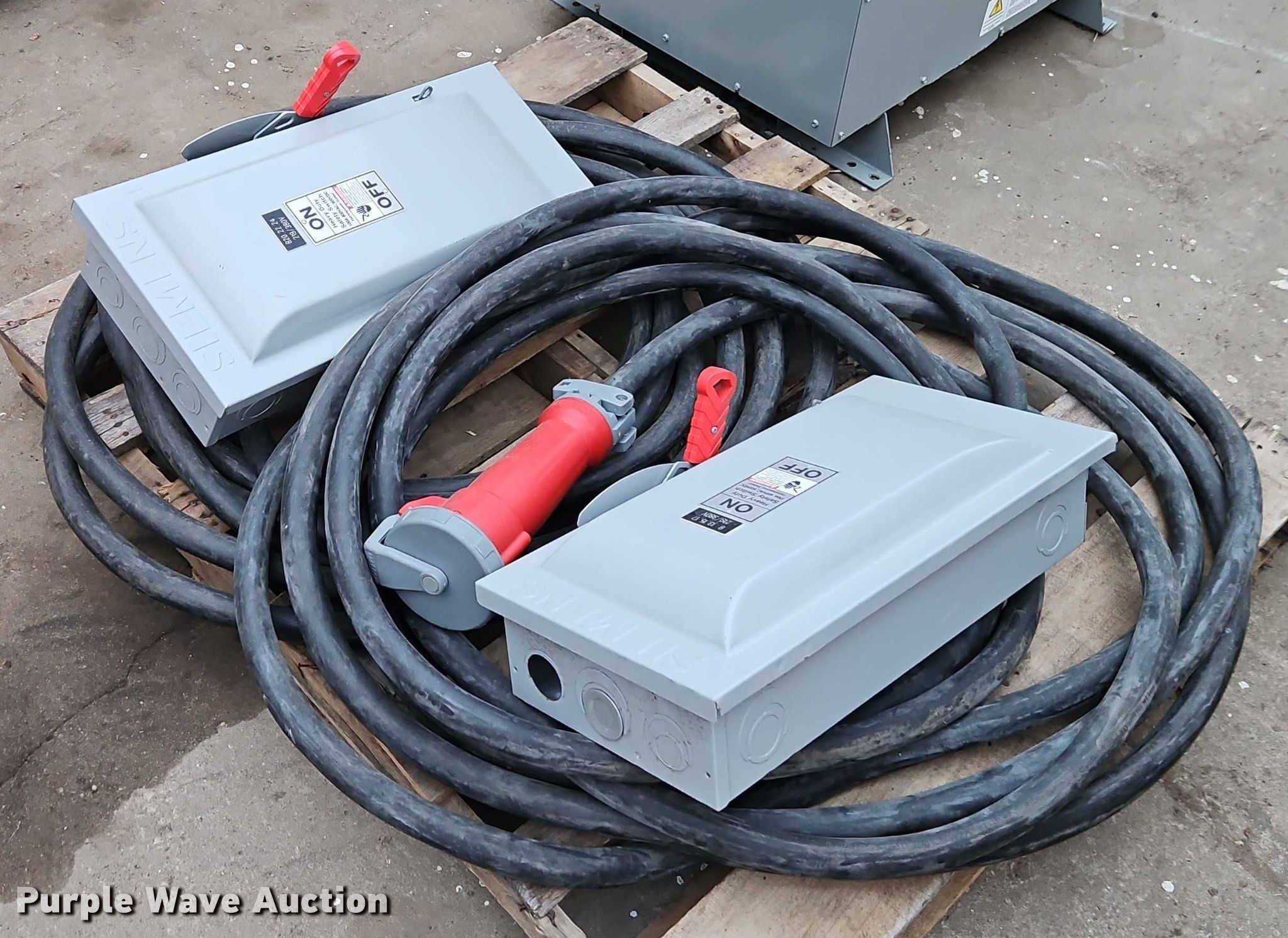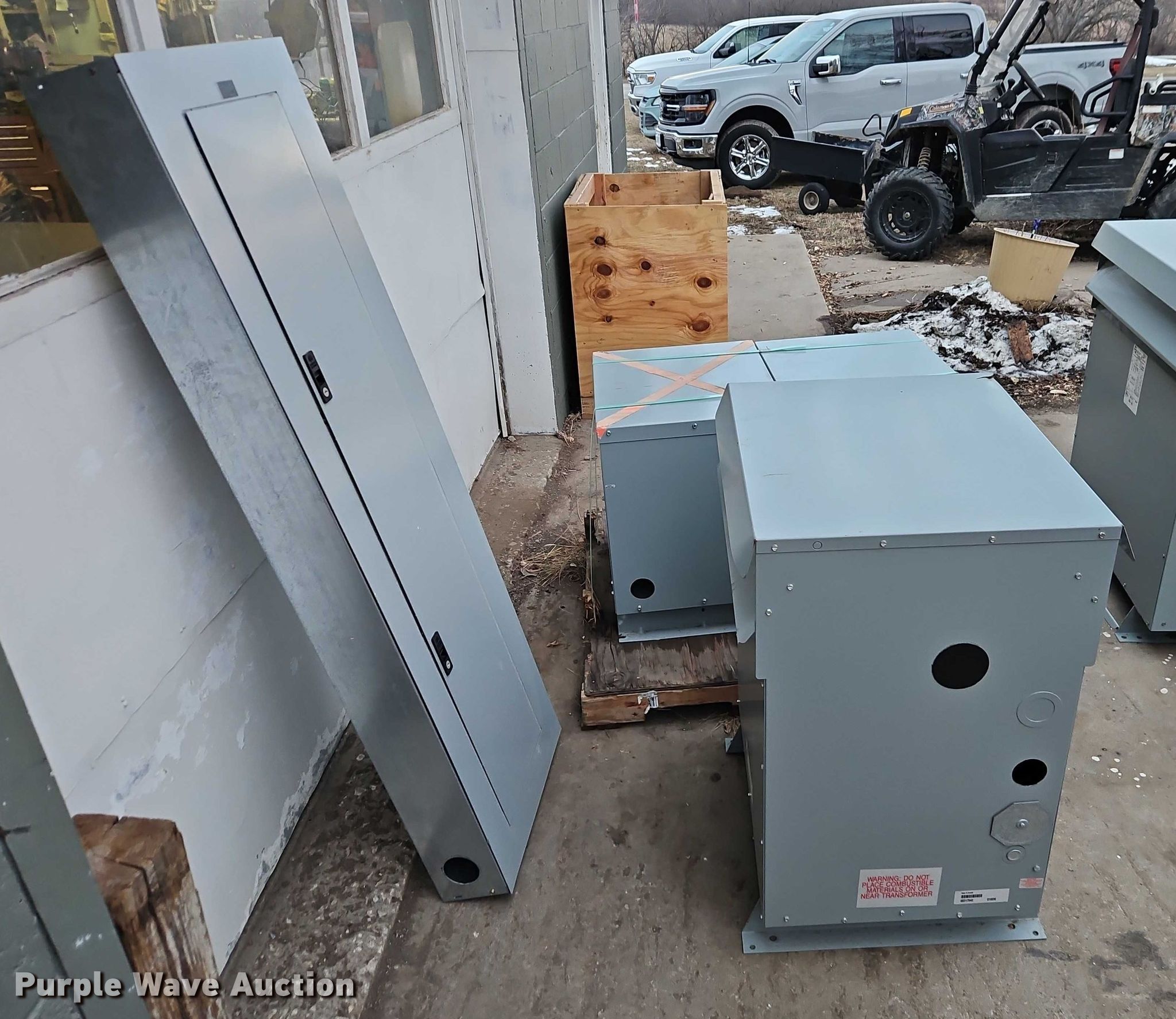 Purple Wave is selling a used Electronics in Missouri. This item is a (4) transformers with the following: Phase: Three, Electrical panel, Amps: 400, (2) disconnect switches, Phase:3, Hubble connectors, Amps: 100, 50' cable