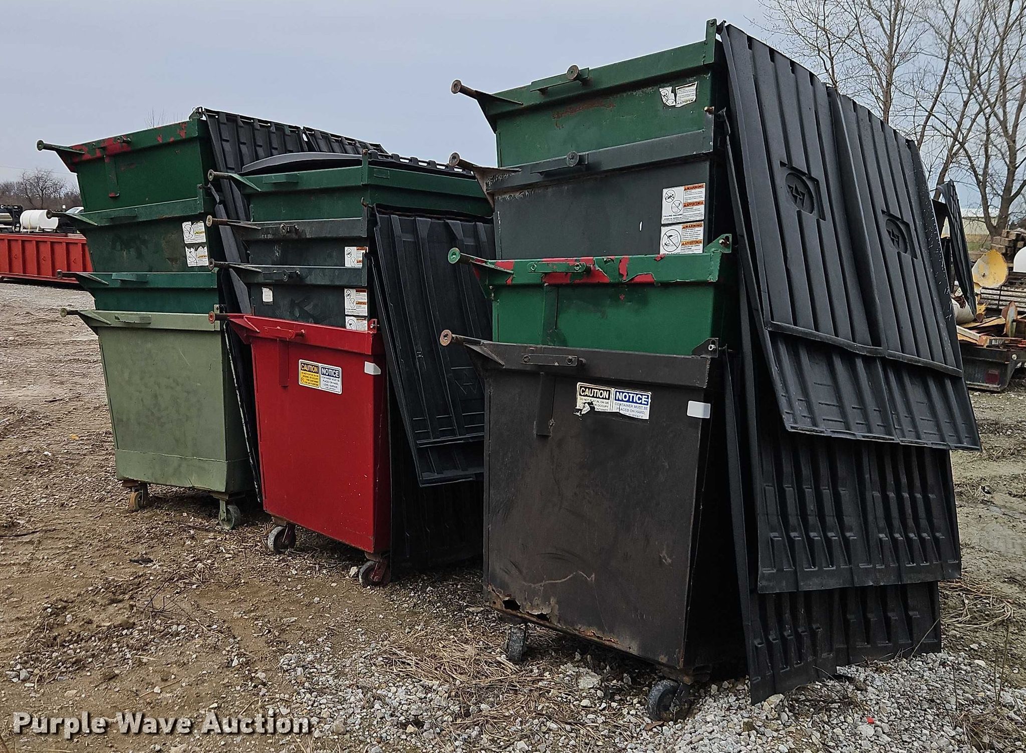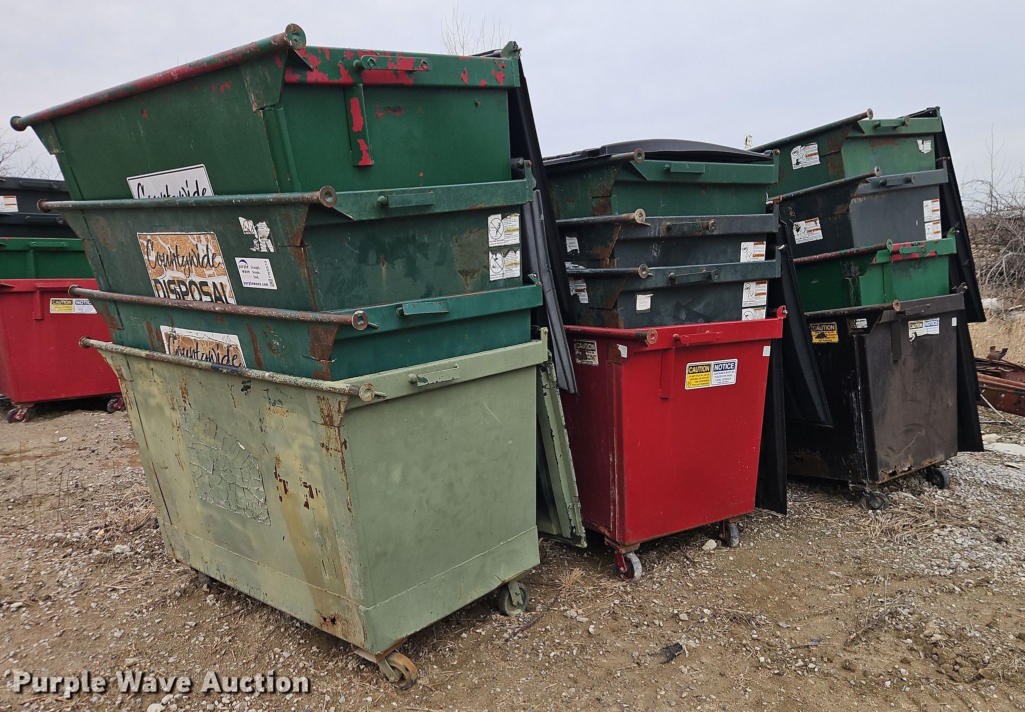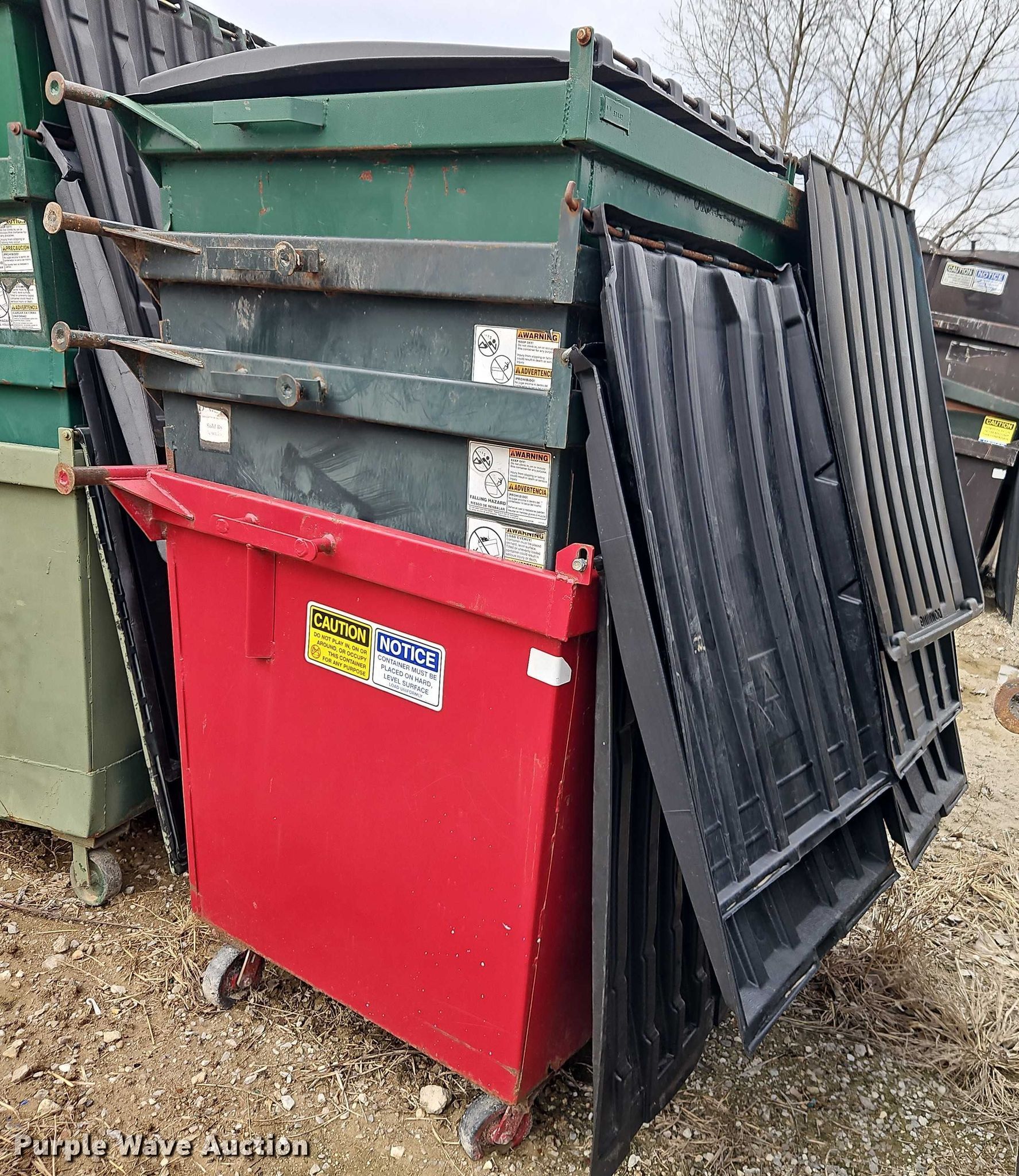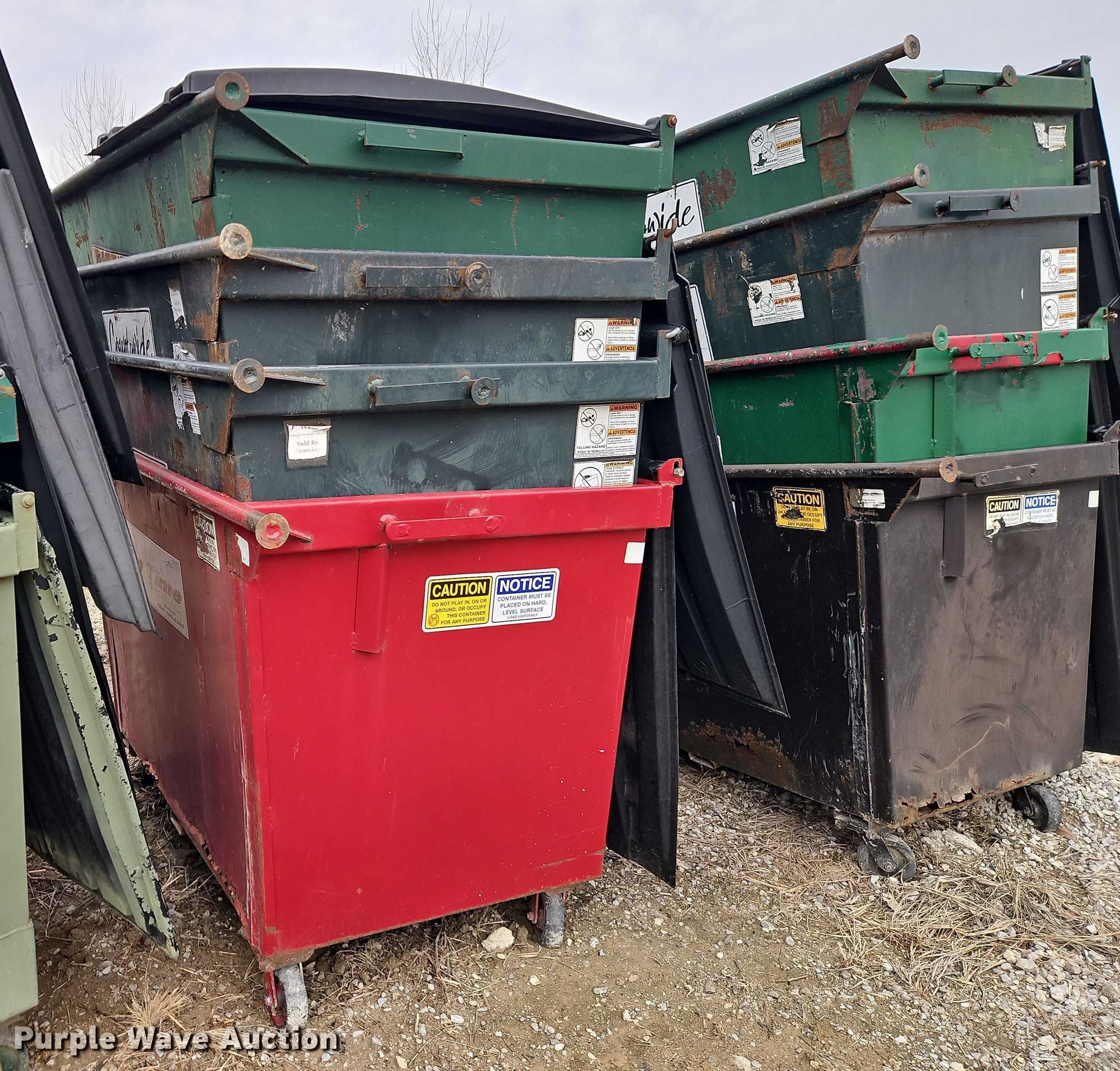 Purple Wave is selling a used Refuse or Compaction Equip. in Missouri. This item is a (12) dumpsters with the following: Capacity: 2 cu. ya.