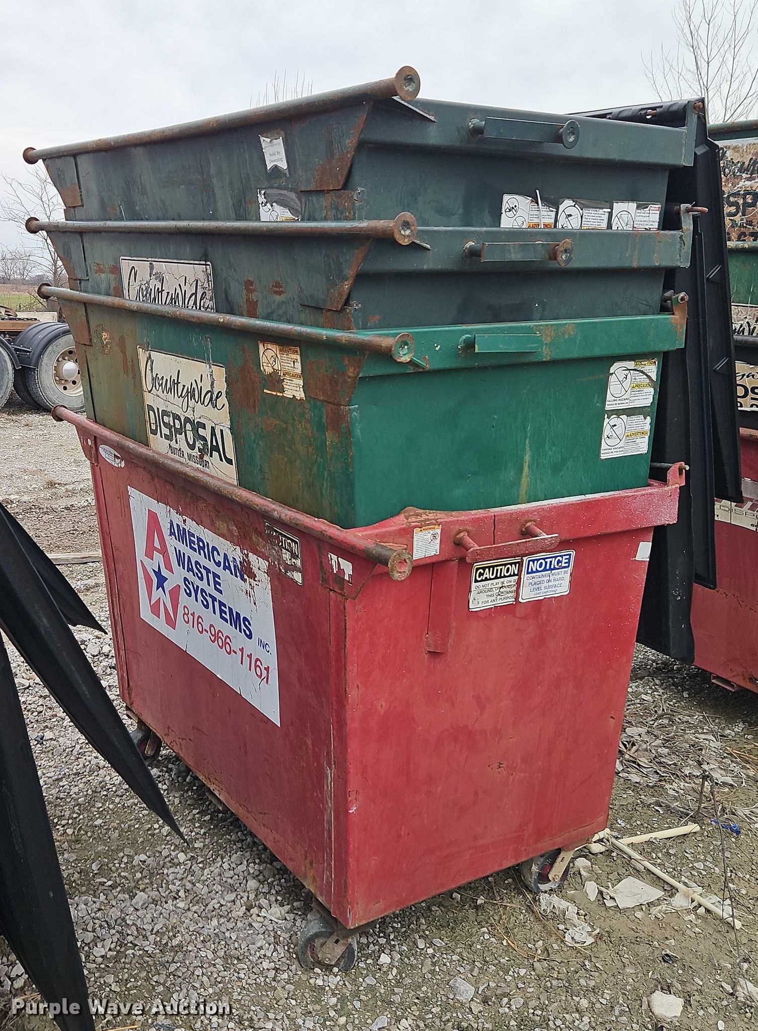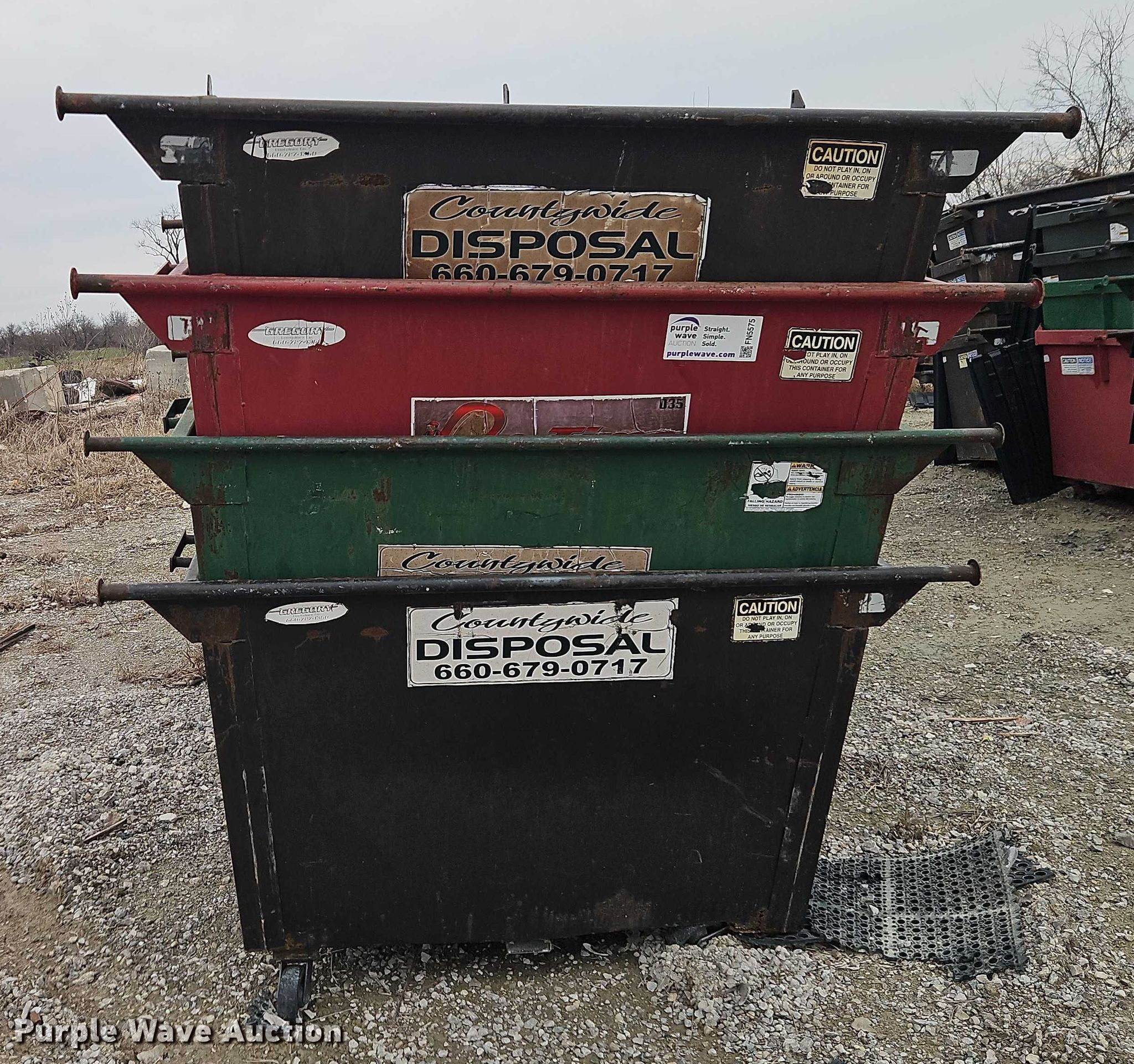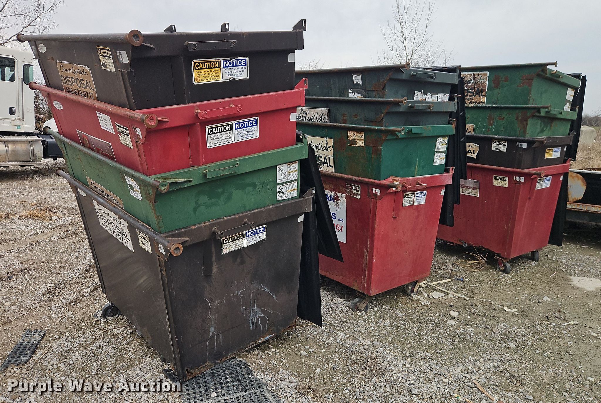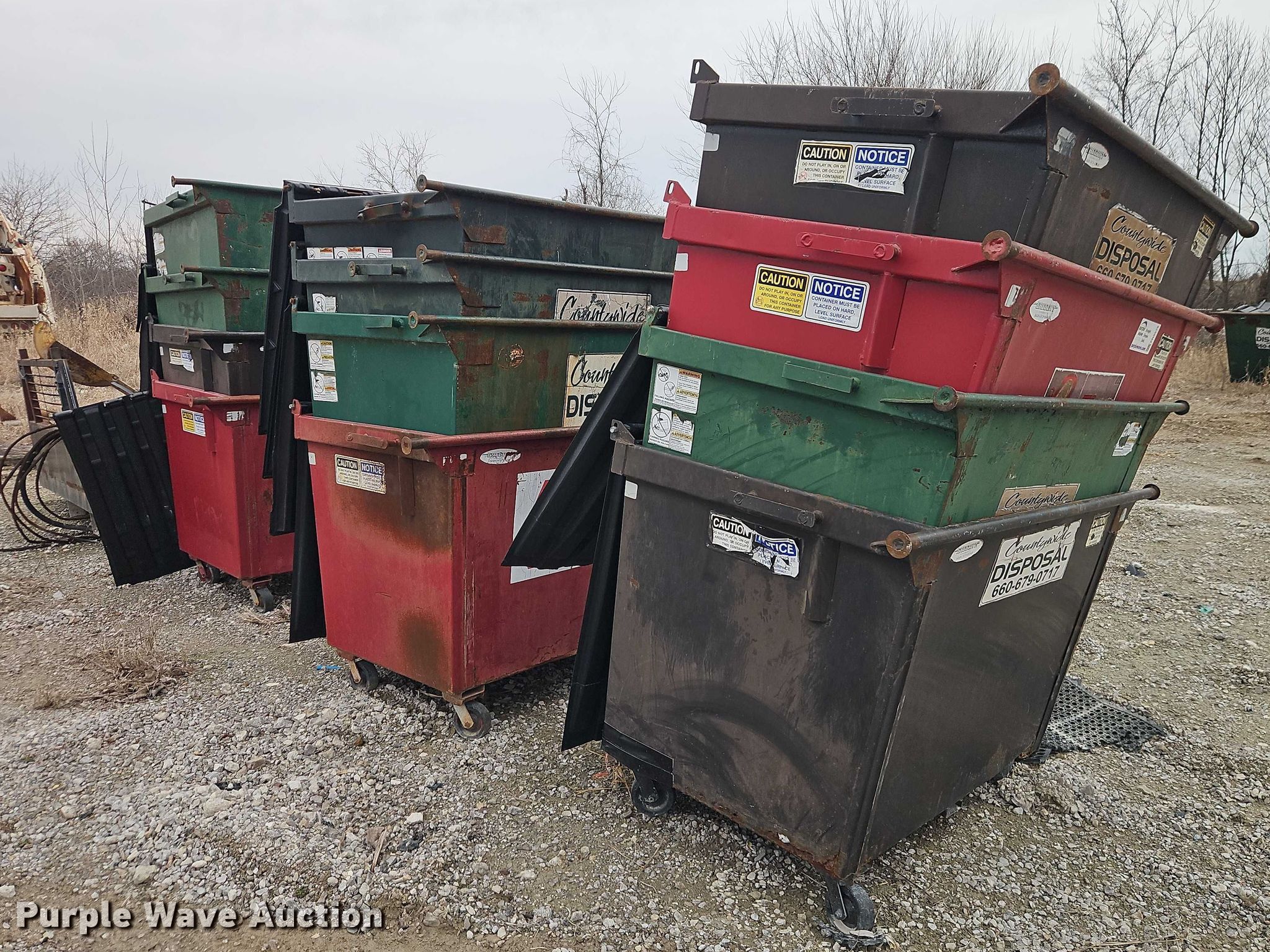 Purple Wave is selling a used Refuse or Compaction Equip. in Missouri. This item is a (12) dumpsters with the following: Capacity: 2 cu.ya.