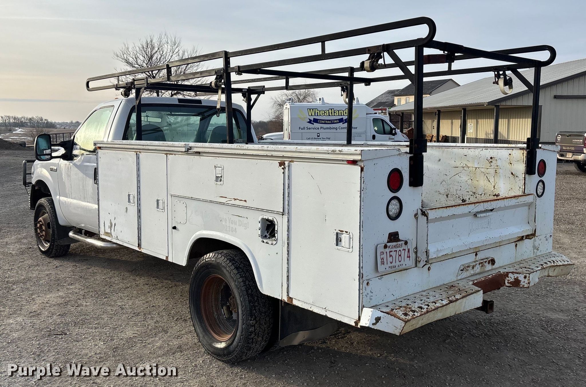 2007 Ford F350 utility bed pickup truck has sold in Effingham, Kansas for $3190. Item FO3522 sold on March 11th, 2026.