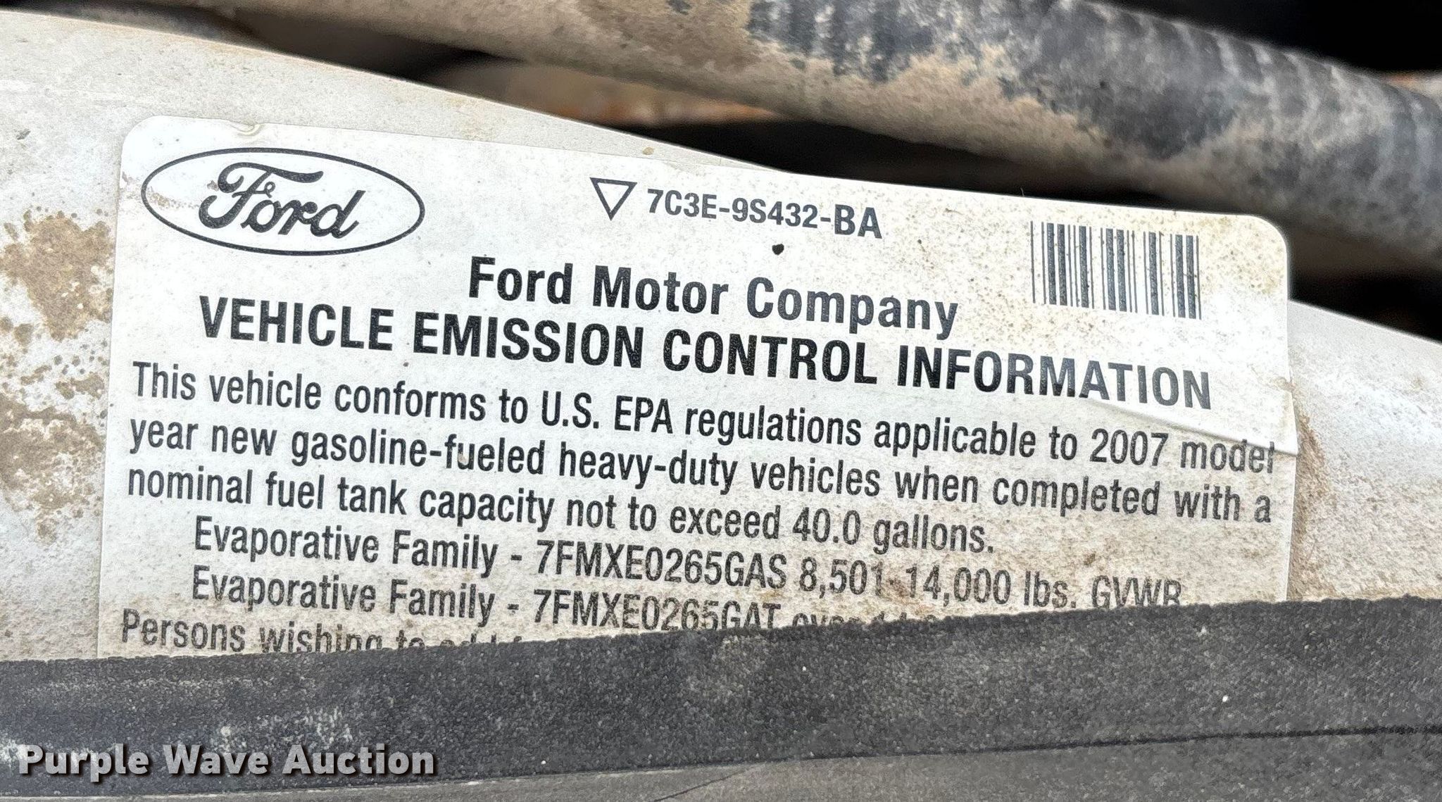 2007 Ford F350 utility bed pickup truck. Miles: 183,989 on odometer, VIN: 1FDWF37Y37EA75354. Engine Displacement: 6.8L, Cylinders: 10, Fuel type: Gas. Transmission Automatic, Four wheel drive. Interior AC, Heat, Cruise control, Auxiliary controls, Brake controller. Features Bed Utility bed, Knapheide, Length: 11' 6", Width: 89". Tires Size: 245/75R17. Notes Dash warning indicator: ABS. Kansas title. Title distribution may be delayed up to 14 days from verification of funds. Wheatland Contracting. Effingham, KS 66023