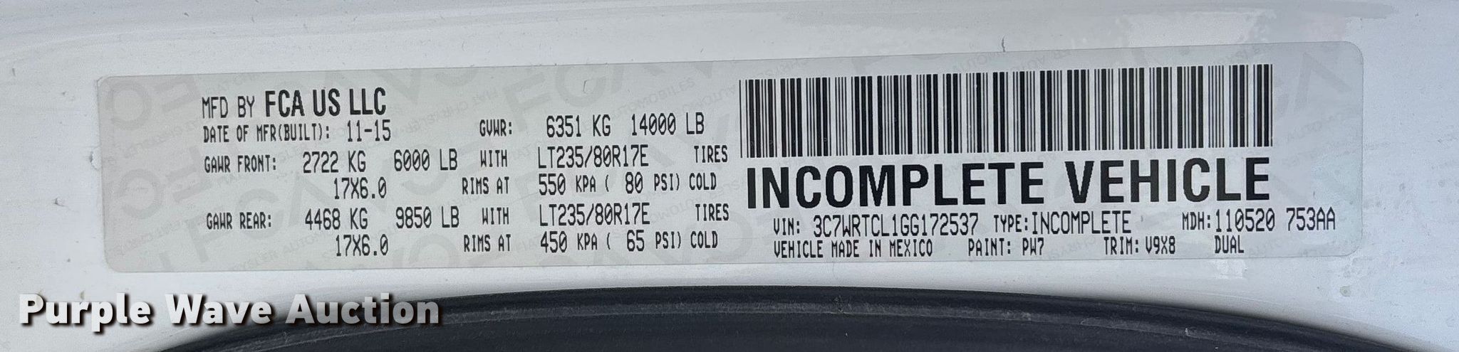 - VIN: 3C7WRTCL1GG172537