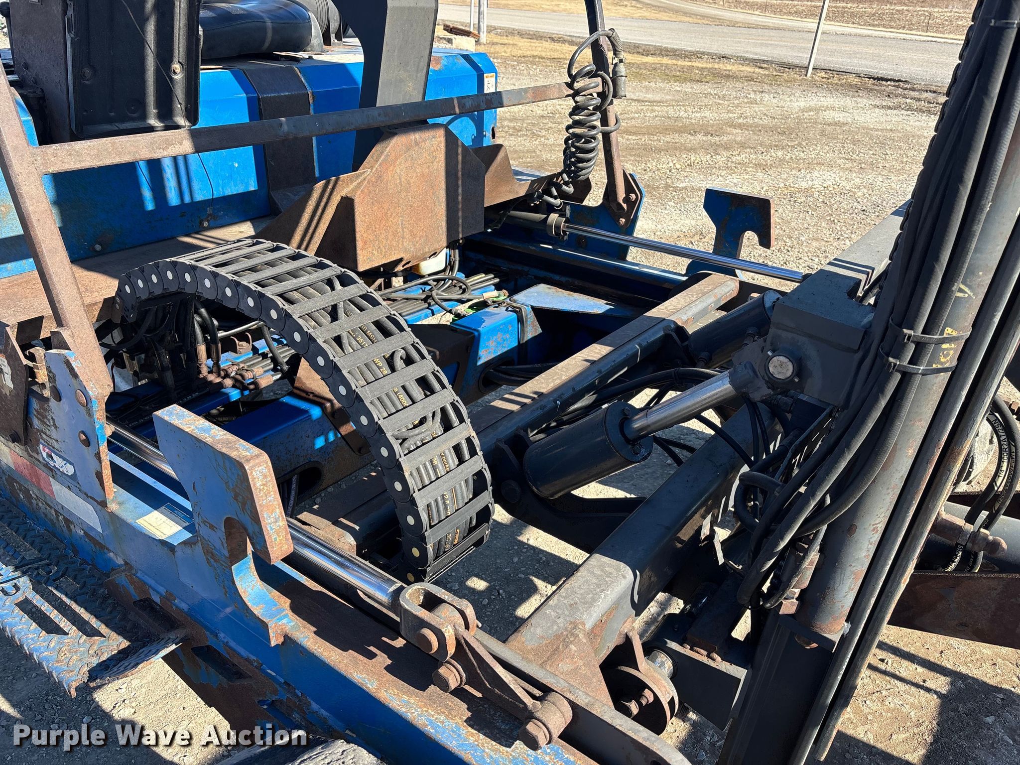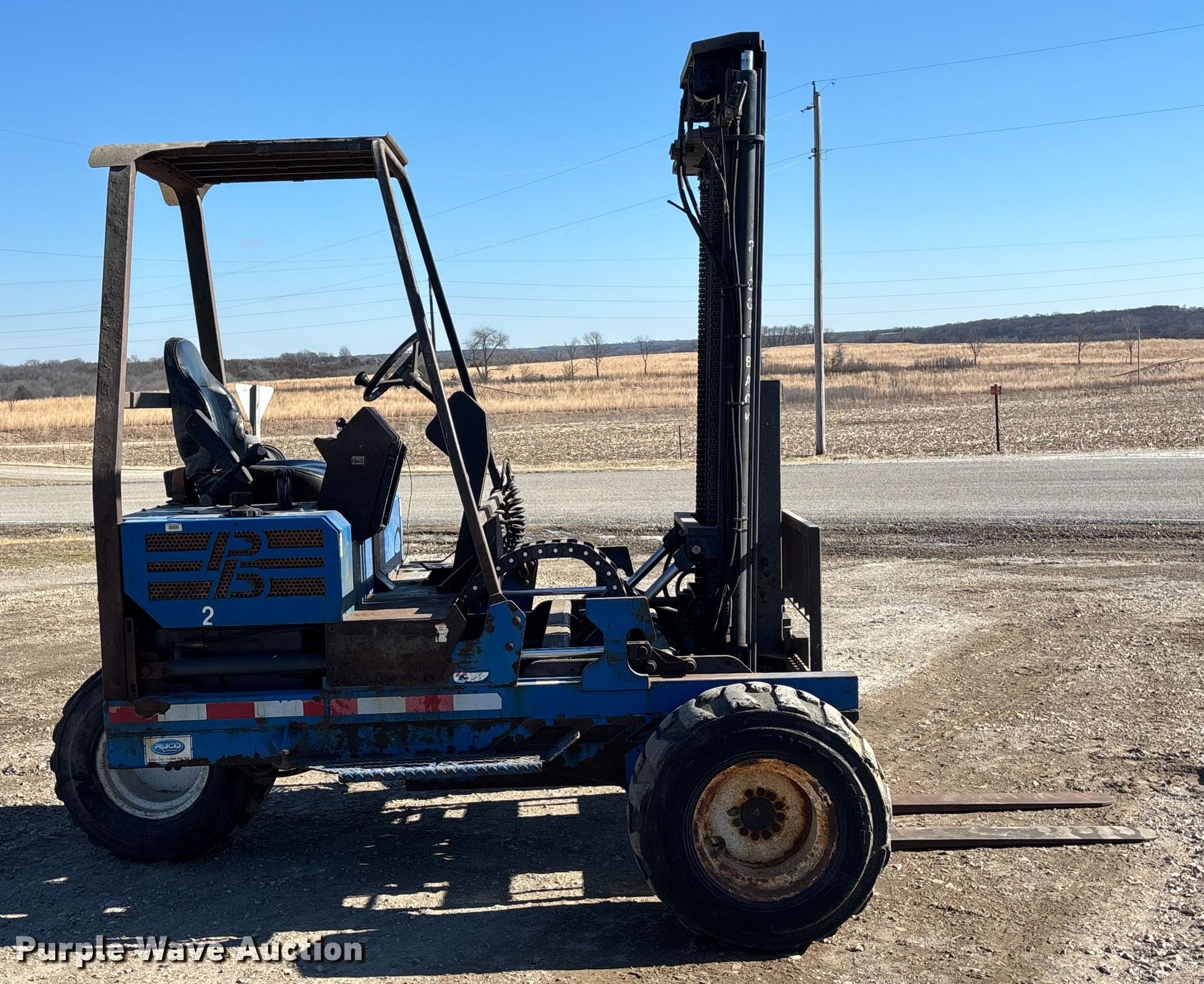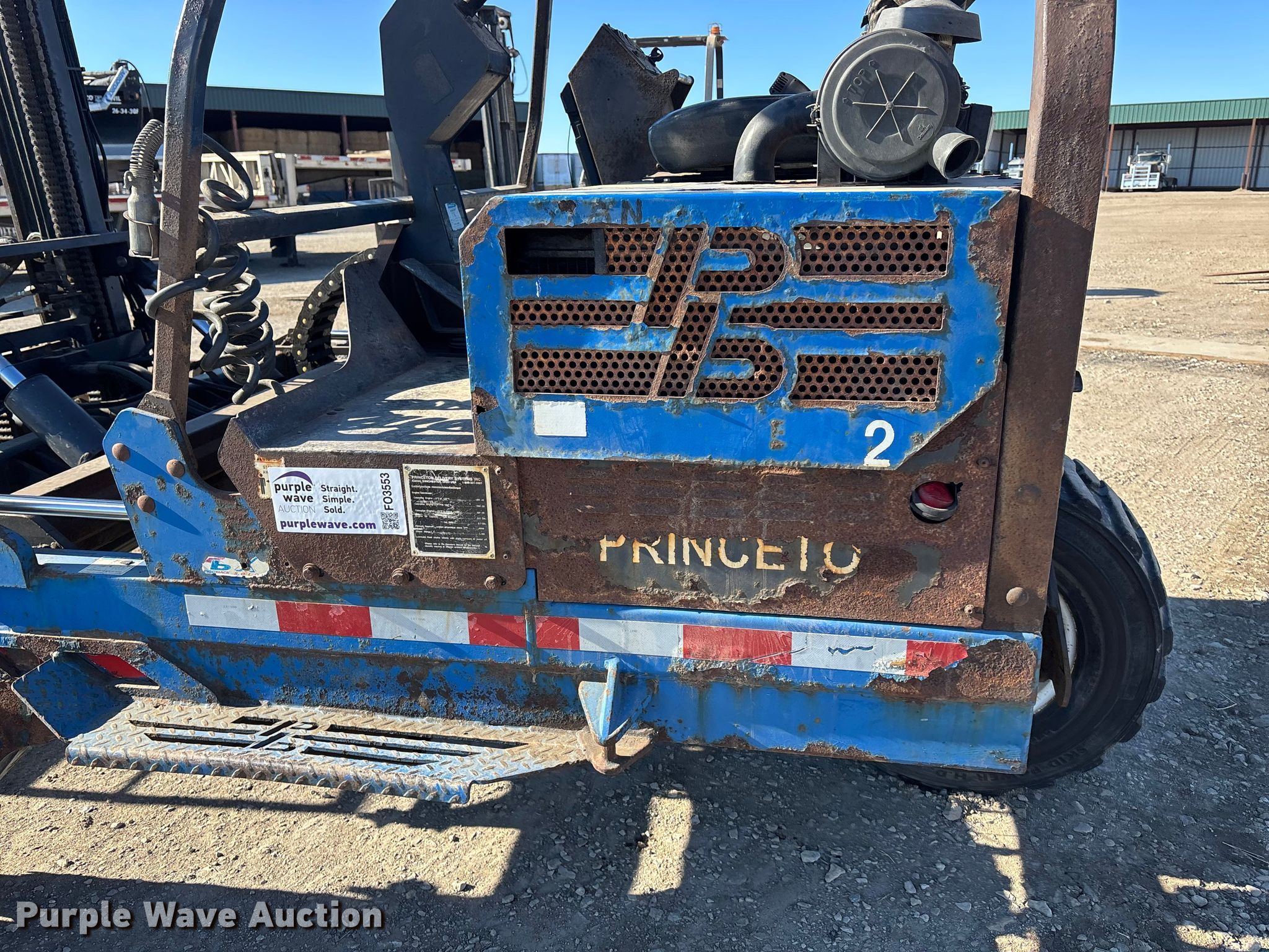 Princeton PBX forklift. Hours: 1,454 on meter, Serial: P11734. Engine Caterpillar 3024C, Cylinders: 4, Fuel type: Diesel. Transmission Hydrostatic. Chassis Differential lock. Operators station OROPS, Canopy. Features Maximum lift capacity: 5,000 lbs, Maximum lift height: 144", Collapsed mast height: 115", Mast stages: 2, Side shift, Mast tilt, Reach / retract, Fork length: 48". Tires Size: 31x15.5-15. Notes Rust damage, Driver side mast cylinder hydraulic leak. Hollis Truck Line, LLC. Valley Falls, KS 66088