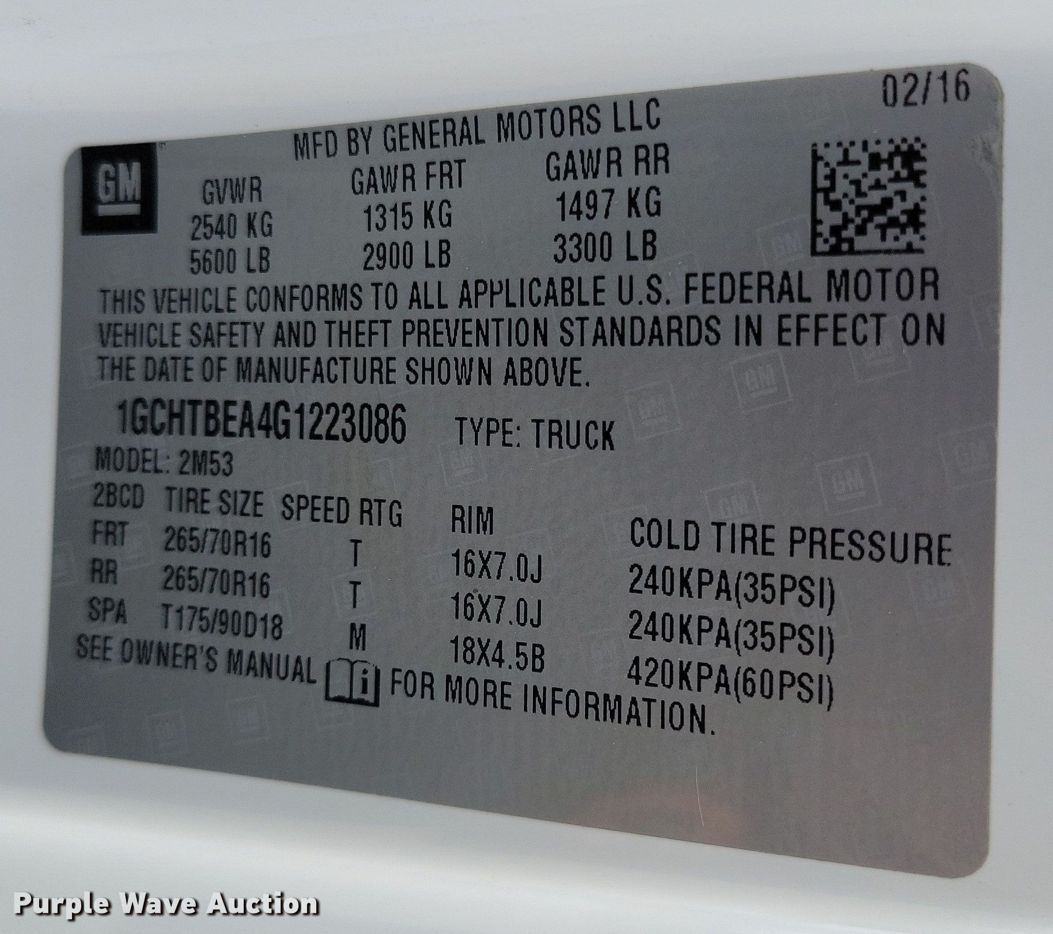 - VIN: 1GCHTBEA4G1223086