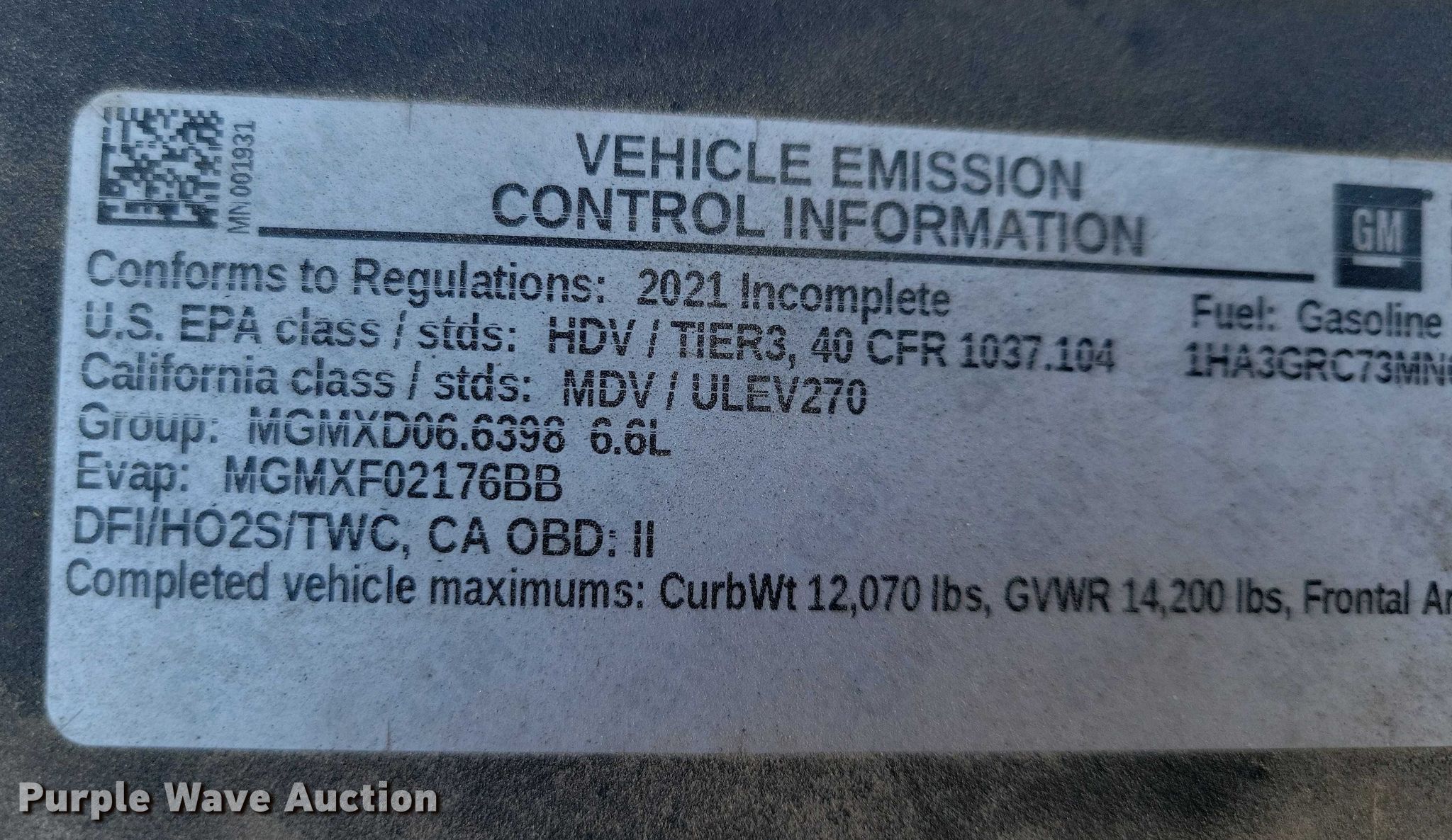 2021 Chevrolet G3500 box truck. Miles: 164,298 on odometer, VIN: 1HA3GRC73MN001931. Engine Displacement: 6.6L, Cylinders: 8, Fuel type: Gas. Transmission Automatic. Chassis Axles: Single, Suspension: Spring, Brakes: Hydraulic, GVWR: 12,300 lbs. Interior AC, Heat, Power windows, Power locks, Cruise control, Backup camera. Features Bed Cargoport, Length: 13' 7", Width: 96", Height: 93", Floor: Wood. Tires Size: LT225/75R16. Iowa title. Title distribution may be delayed up to 30 days from verification of funds. Casey's General Stores Inc. Ankeny, IA 50021