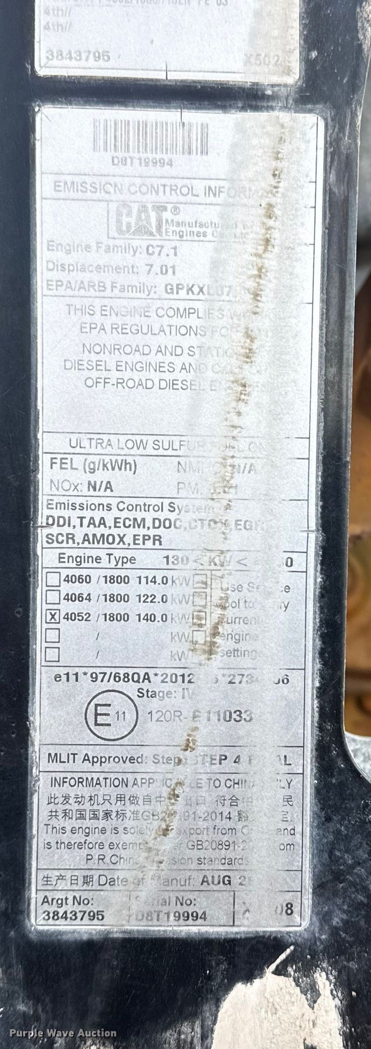 2017 Caterpillar 938M wheel loader. Hours: 1,673 on meter, Serial: CAT0938MVJ3R03168, Unit #: 45.39L. Engine Caterpillar C7.1, Displacement: 7.01L, Cylinders: 6, Fuel type: Diesel. Transmission Hydrostatic, Two speed travel. Operators station Enclosed cab, AC, Heat, Bucket controls: Joystick. Features Bucket Caterpillar, Width: 108", Cutting edge: Bolt-on. Tires Size: 20.5R25. Sherwood Construction Company. Owasso, OK 74055