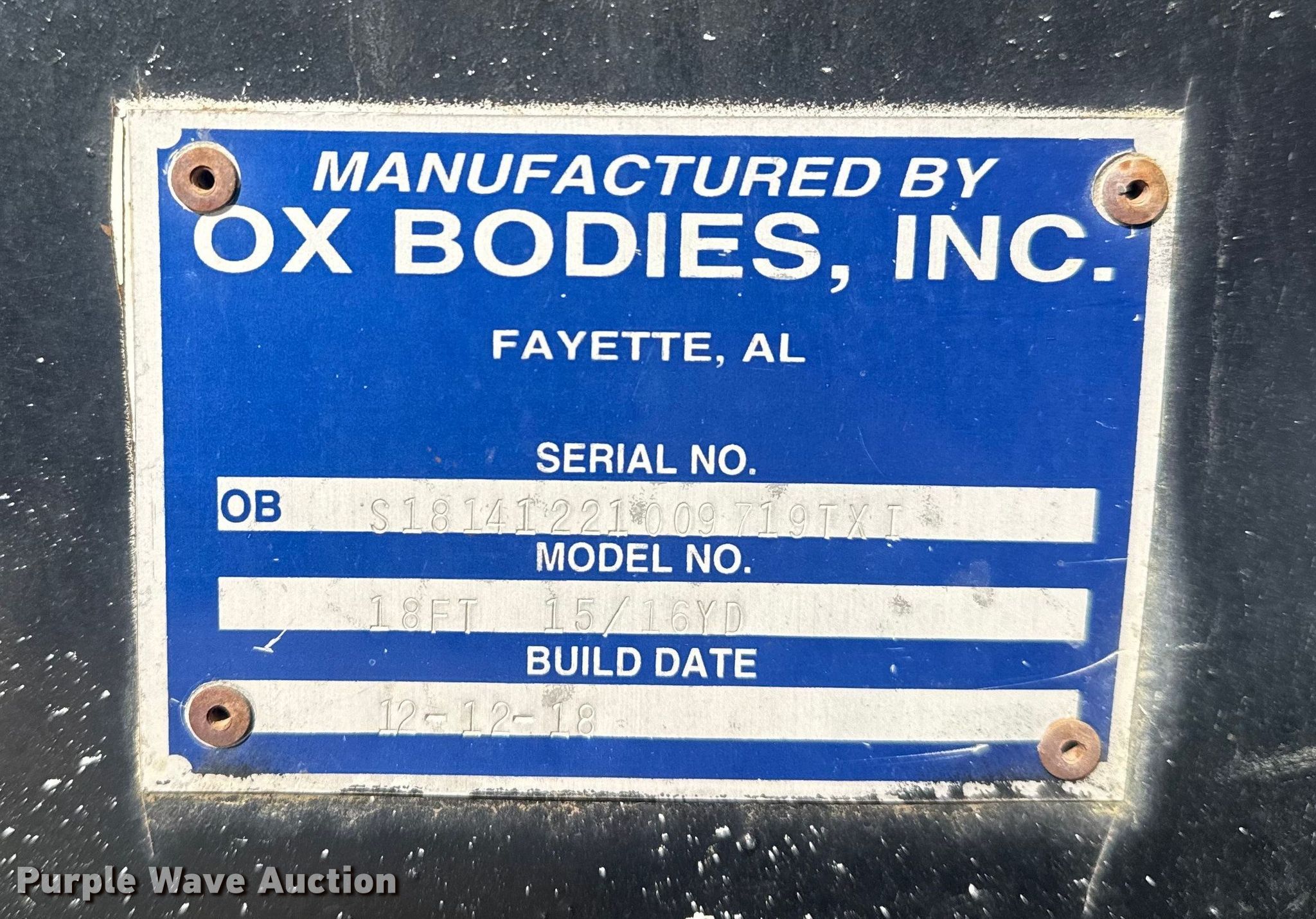 - Ox Bodies, Inc. 18FT 15/16YD