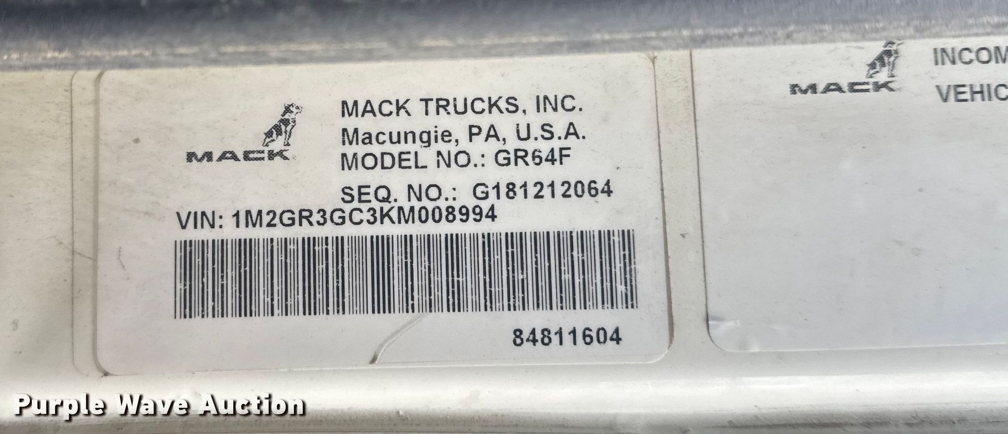 - VIN: 1M2GR3GC3KM008994