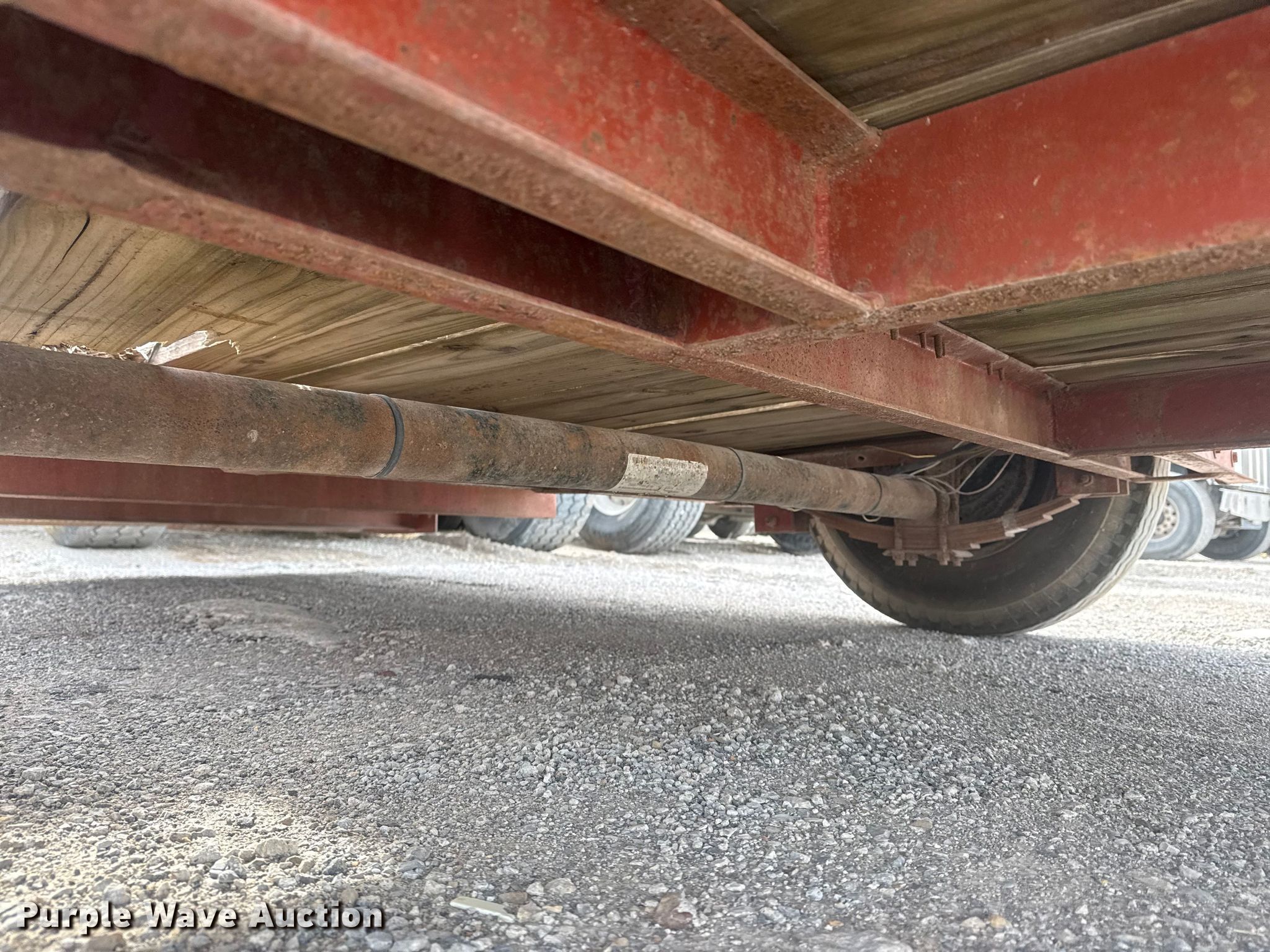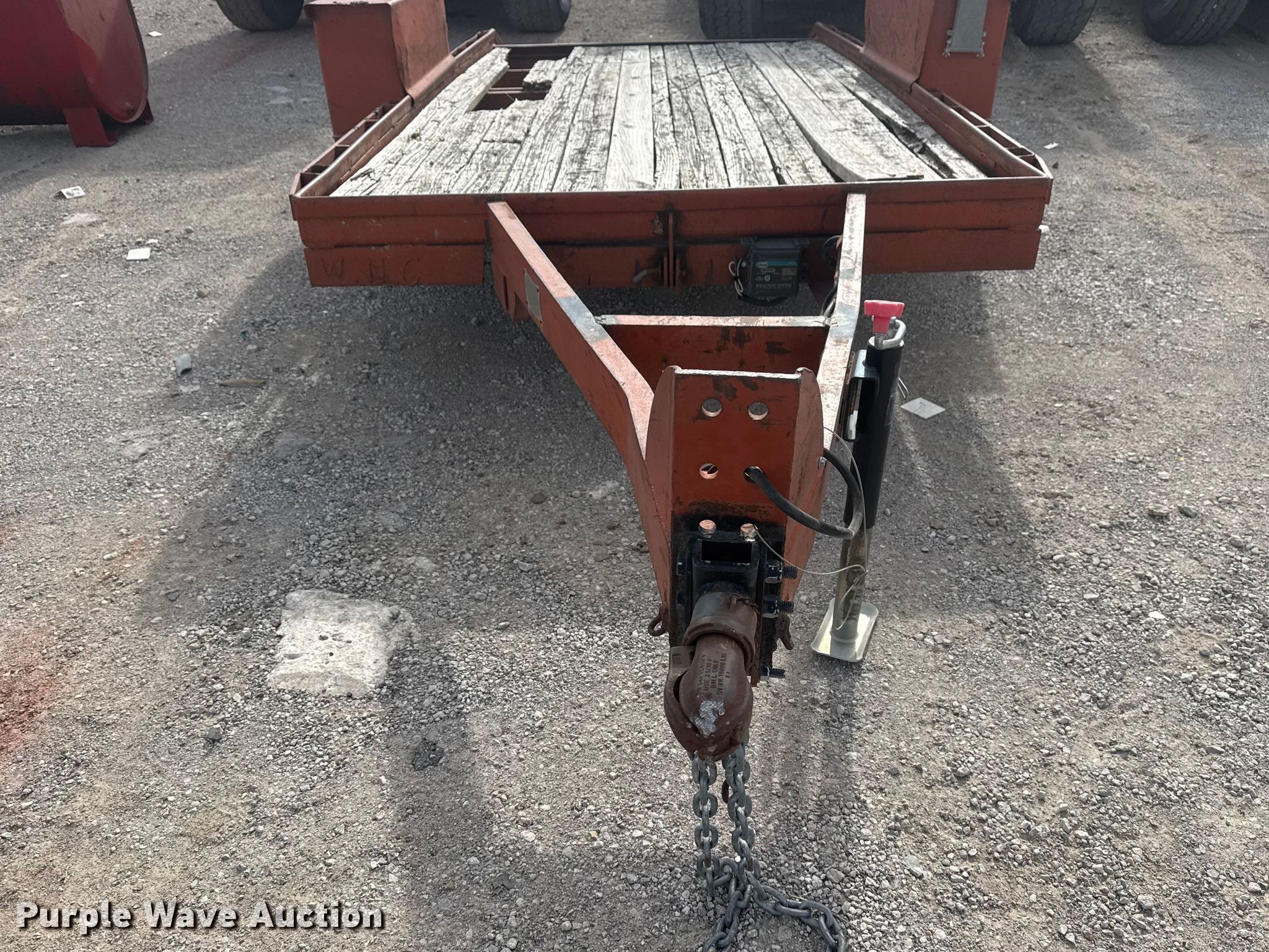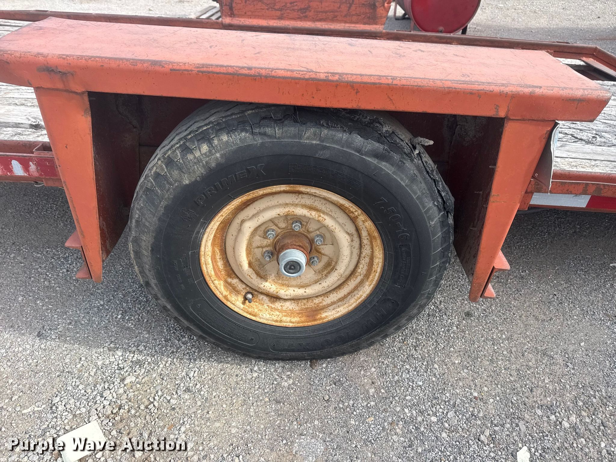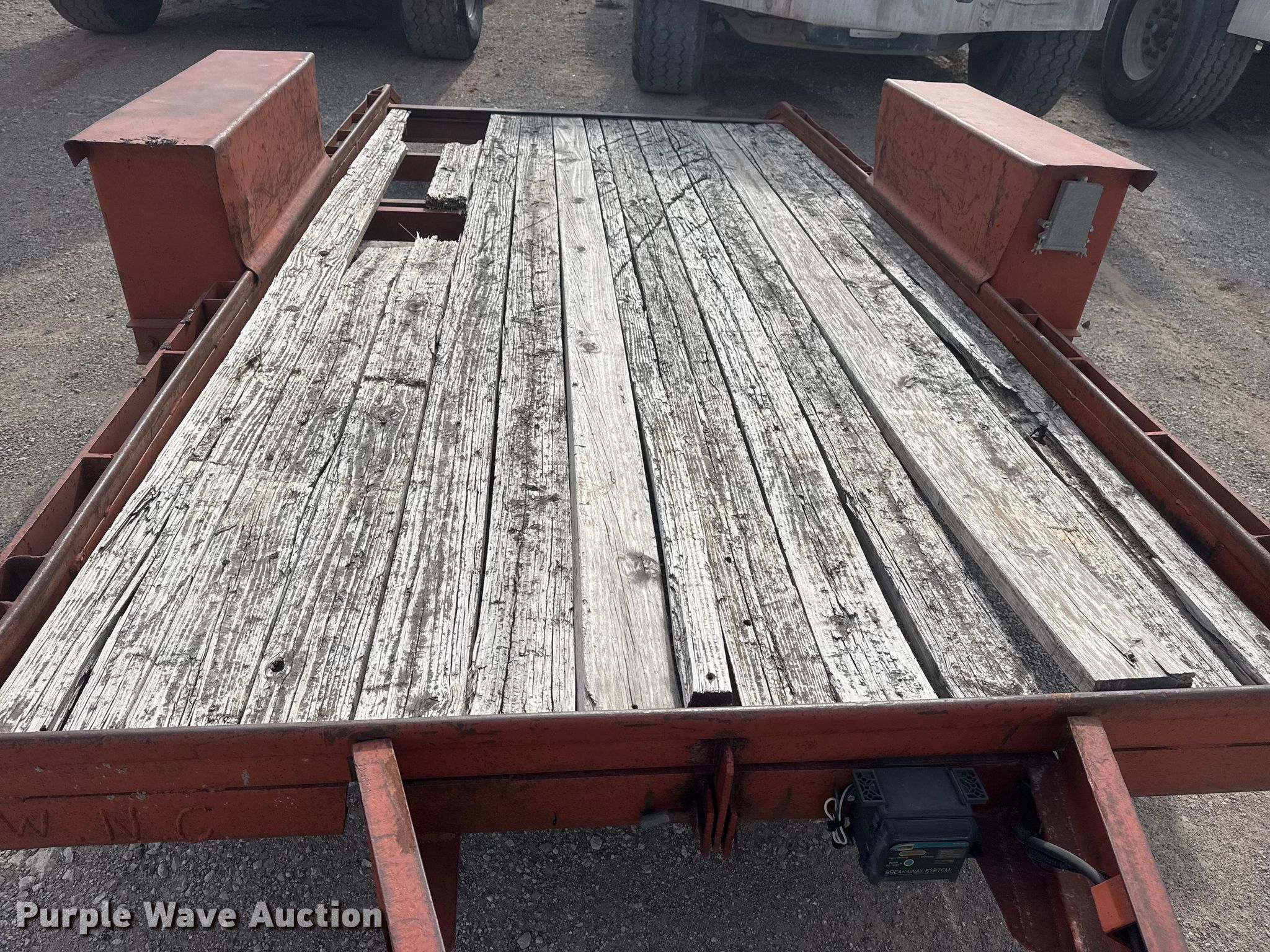 1982 Belshe WB-1 tilt deck utility trailer. VIN: 11963K, Unit #: 15.62. Dimensions Overall Length: 18', Width: 94", Deck Length: 12', Width: 70", Tail length: 1'. Features Deck type: Wood. Chassis Ball hitch: 2 5/16", Landing gear: Single, Suspension: Spring, Brakes: Electric, GVWR: 4,000 lbs, GAWR: 4,000 lbs. Tires Steel wheels, Size: 7.50-16. Notes Deck boards damaged, Tires damaged. Transfer of ownership documentation will be a bill of sale. Sherwood Construction Company. Owasso, OK 74055