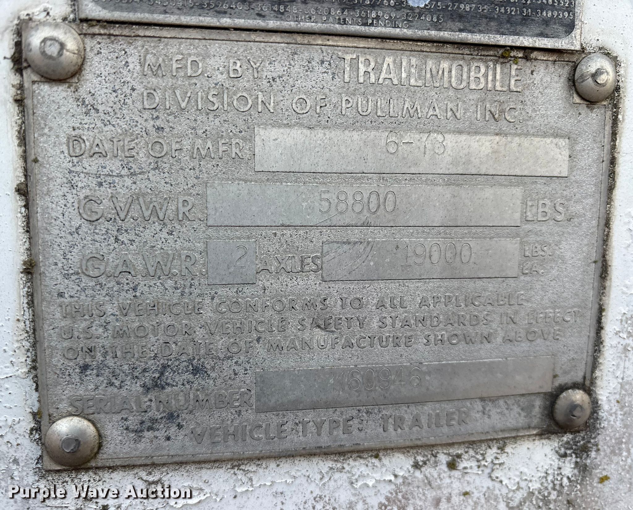 Purple Wave is selling a used Dry Van Trailer in Texas. This item is a 1973 Trailmobile A11A1SAH dry van trailer with the following: VIN: K60946
