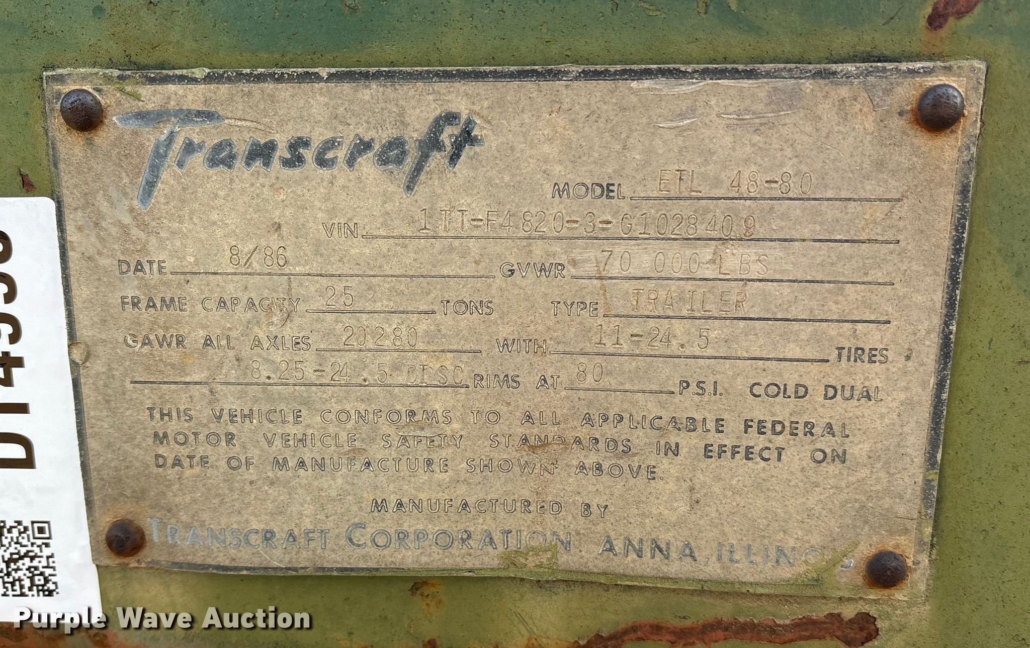 Purple Wave is selling a used Flat or Drop Deck Trailer in Texas. This item is a 1986 Transcraft ETL-48-80 extendable flatbed trailer with the following: VIN: 1TTF48203G1028409, Unit #: 1148