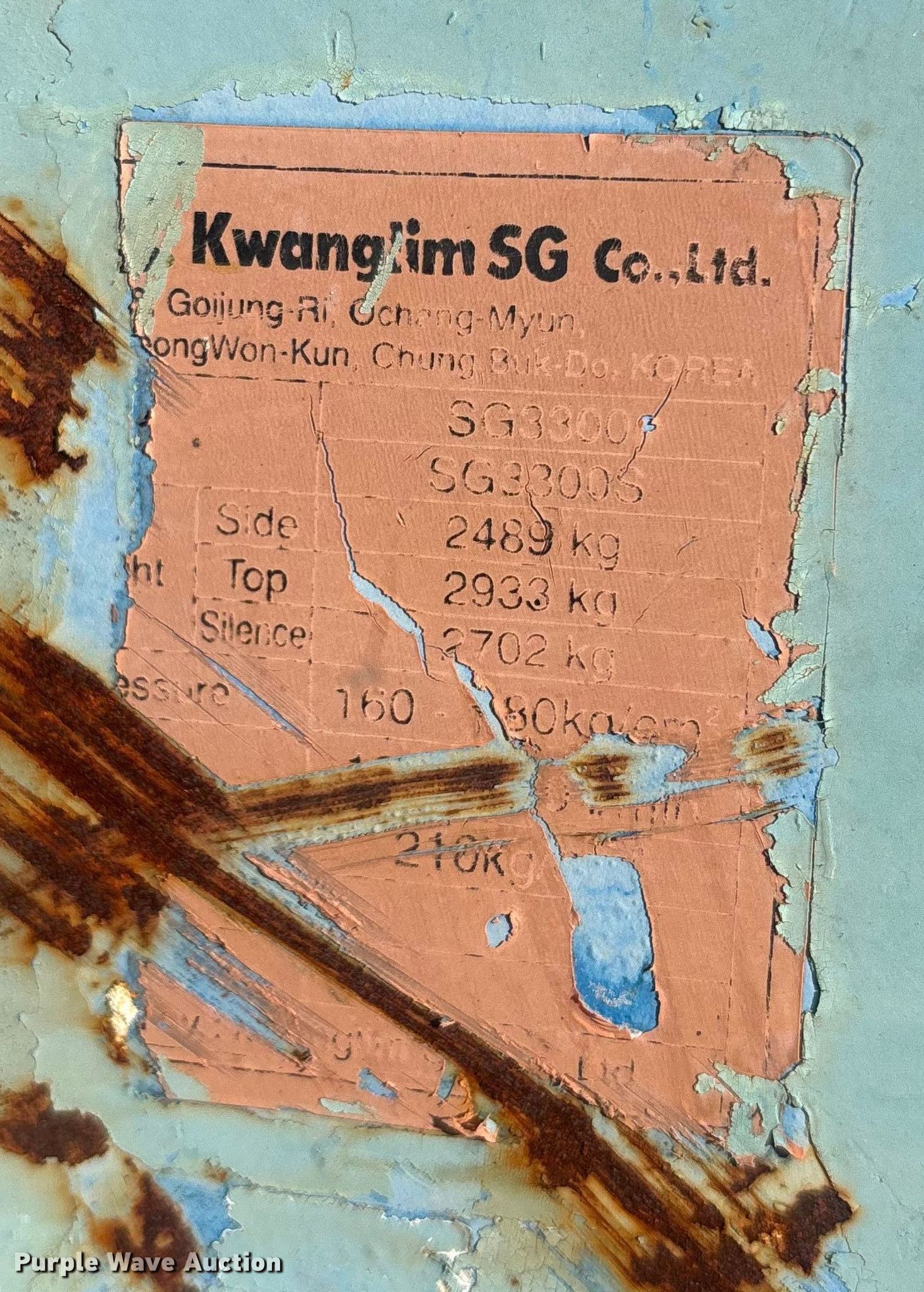Purple Wave is selling a used Breaker or Hammer in Florida. This item is a Kwanglim breaker with the following: Hoses missing