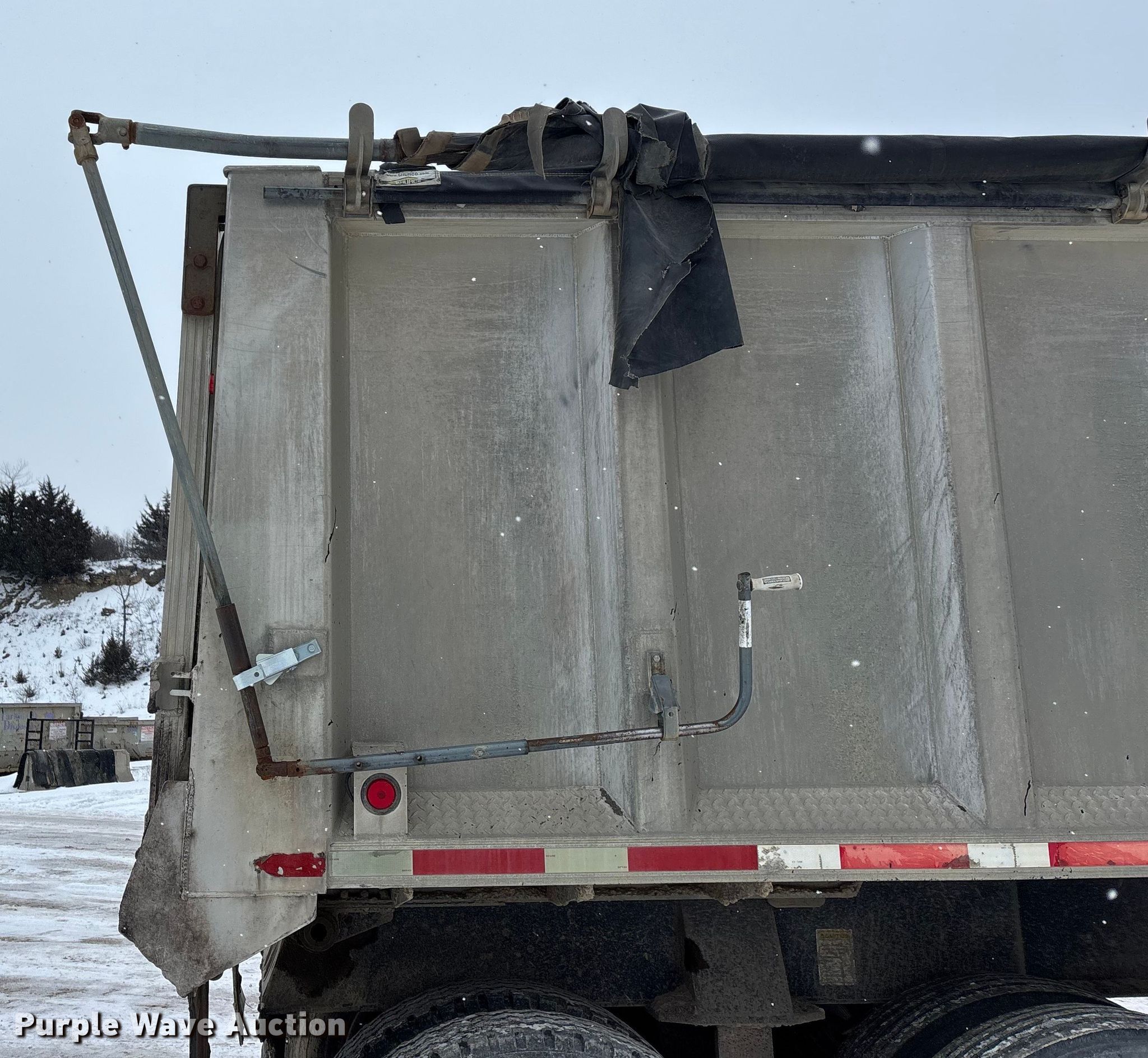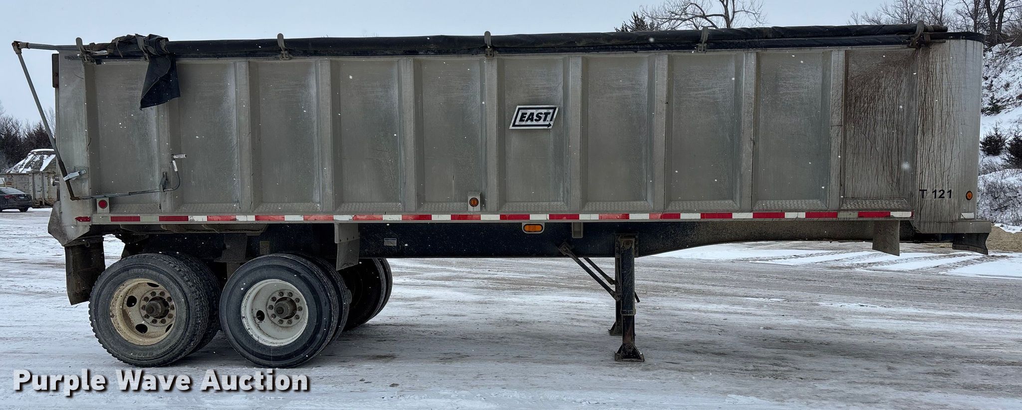 2006 East end dump trailer. VIN: 1E1D1M2806RD39425, Unit #: T121. Dimensions Overall Length: 28', Width: 100", Body Length: 28', Width: 96", Side height: 60". Features Body type: Aluminum, Ram: Single, End gate: Air operated, Roll tarp. Chassis Landing gear: Dual, Suspension: Spring, Brakes: Air, Axles: Tandem, GVWR: 80,000 lbs. Tires Steel wheels, Size: 11R24.5. Notes Semi truck not included. Kansas title. Title distribution may be delayed up to 30 days from verification of funds. Bayer Construction Company. Manhattan, KS 66502