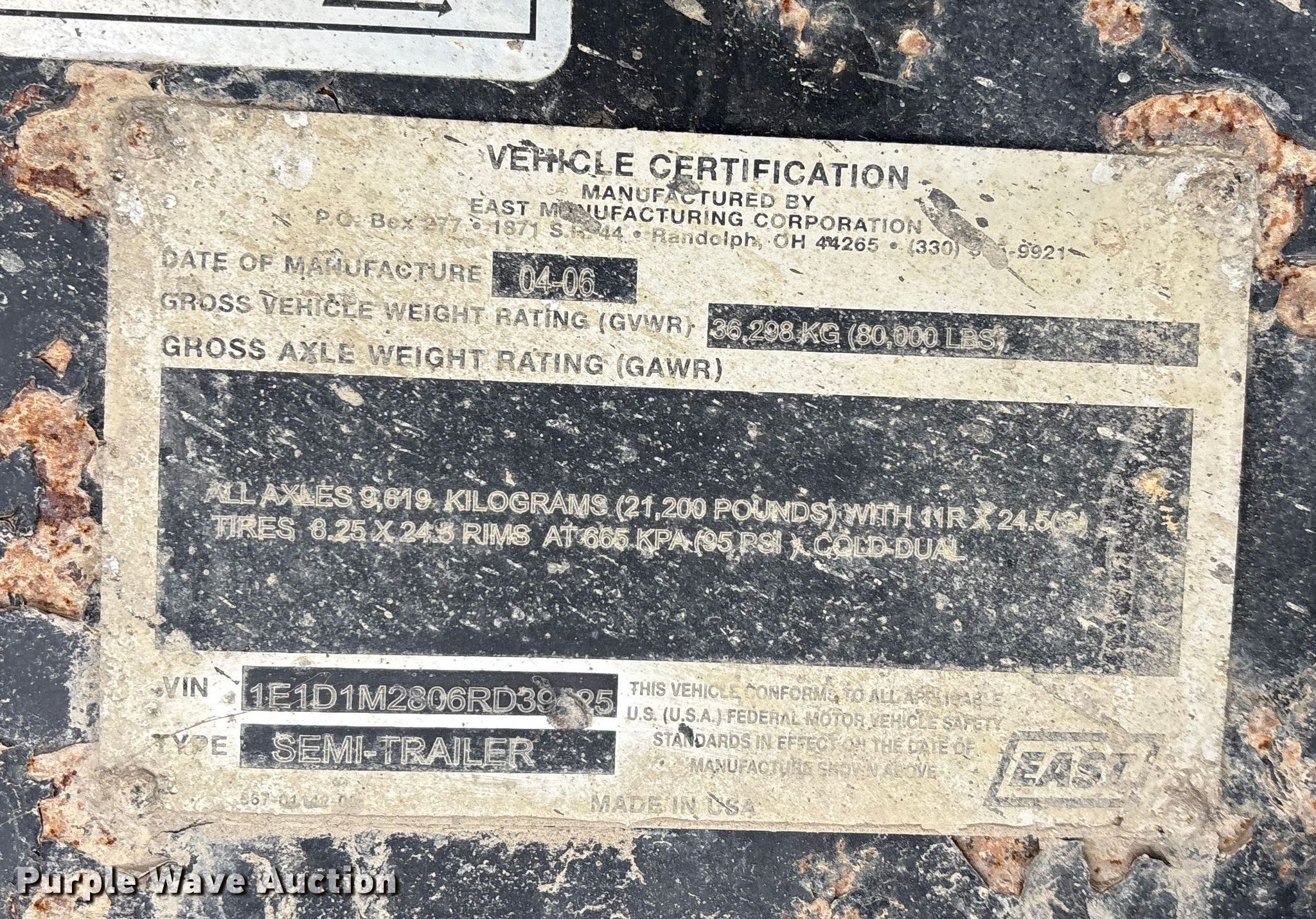 Take a look at this used 2006 East end dump trailer being sold on March 12th, 2026 in the Thursday March 12 Construction Equipment Auction made by East. Take a look at all of the item information below or take a look at similar auctions for Trailers.