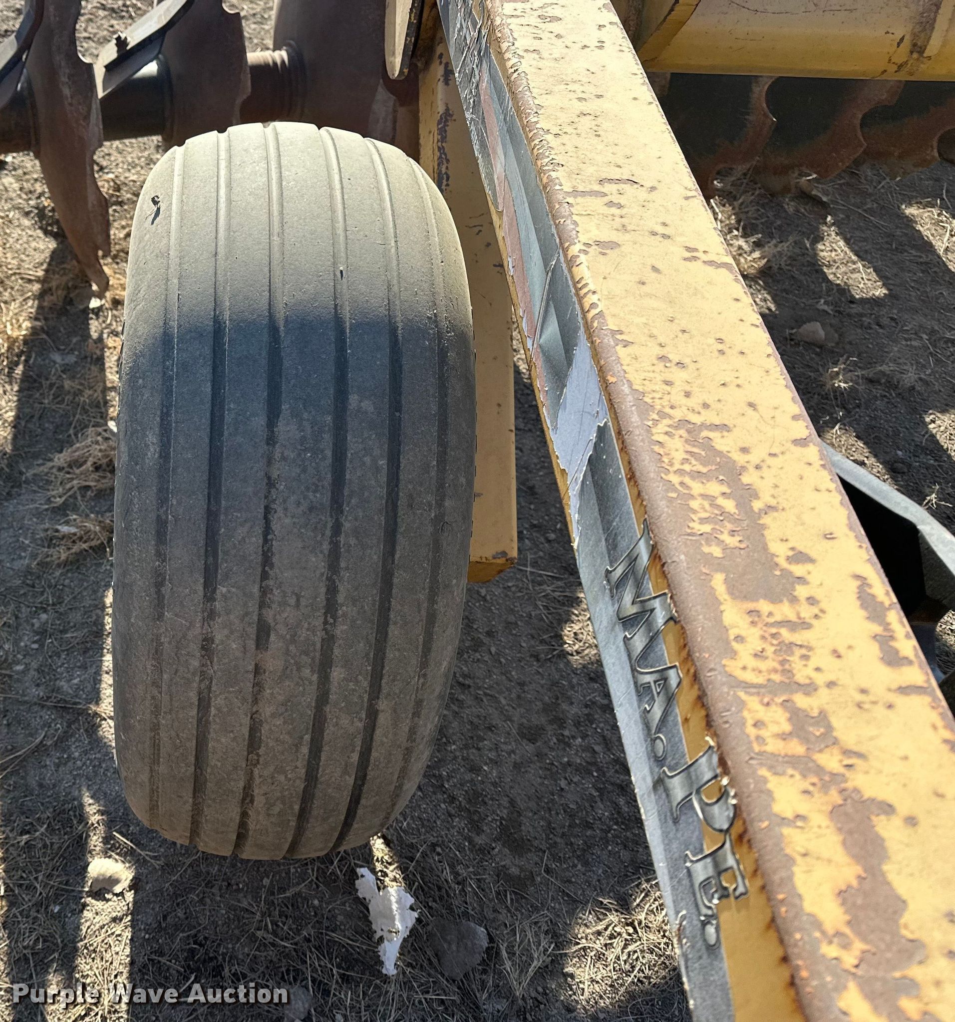 Peters Manufacturing P-24-24 disk. Serial: P-24240001. Features Front blades Diameter: 24", Spacing: 9", Rear blades Diameter: 24", Spacing: 9", Disk scrapers, Operation Hydraulic lift. Tires Tire size: 11L-15SL. Valley, NE 68064