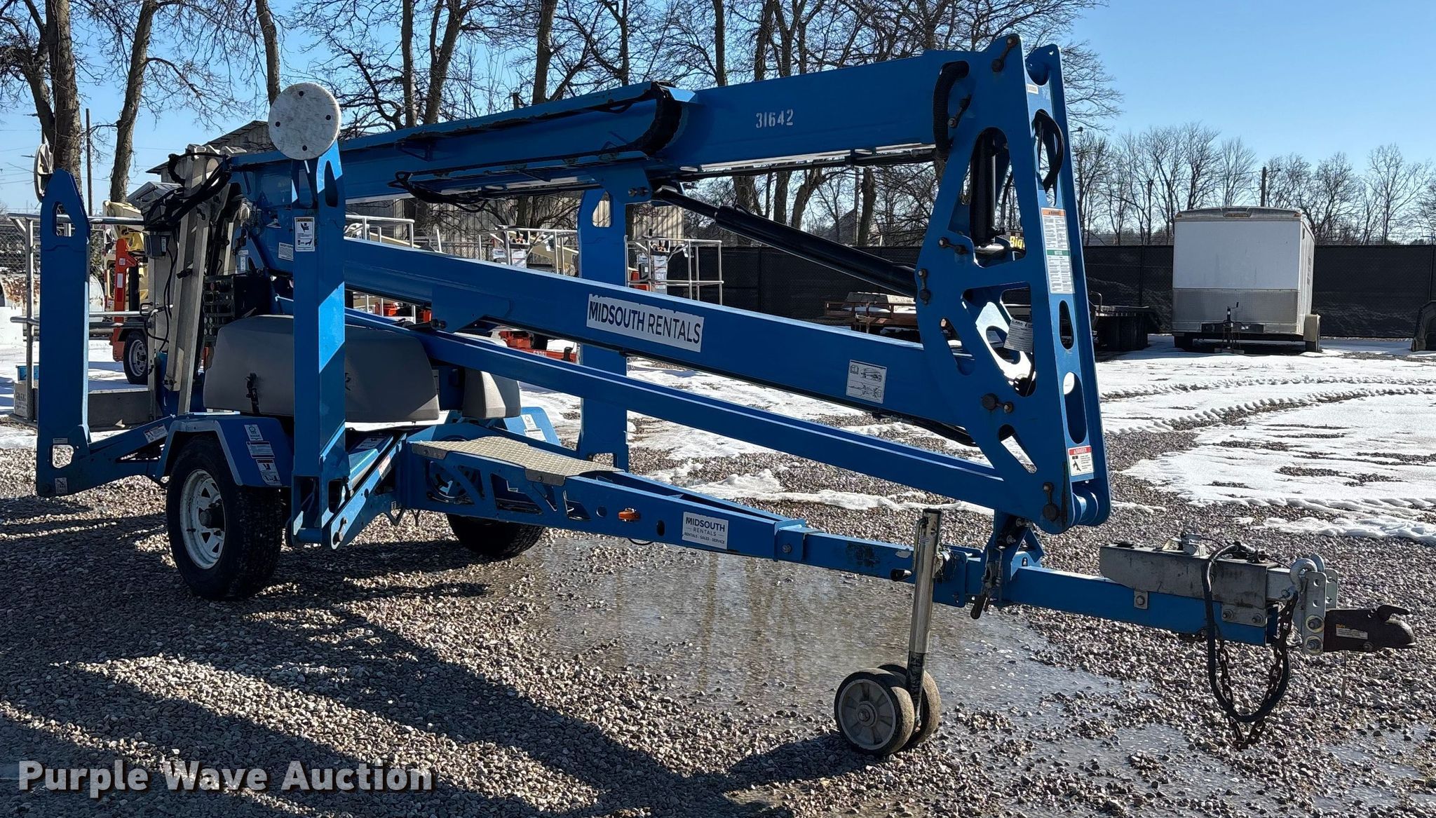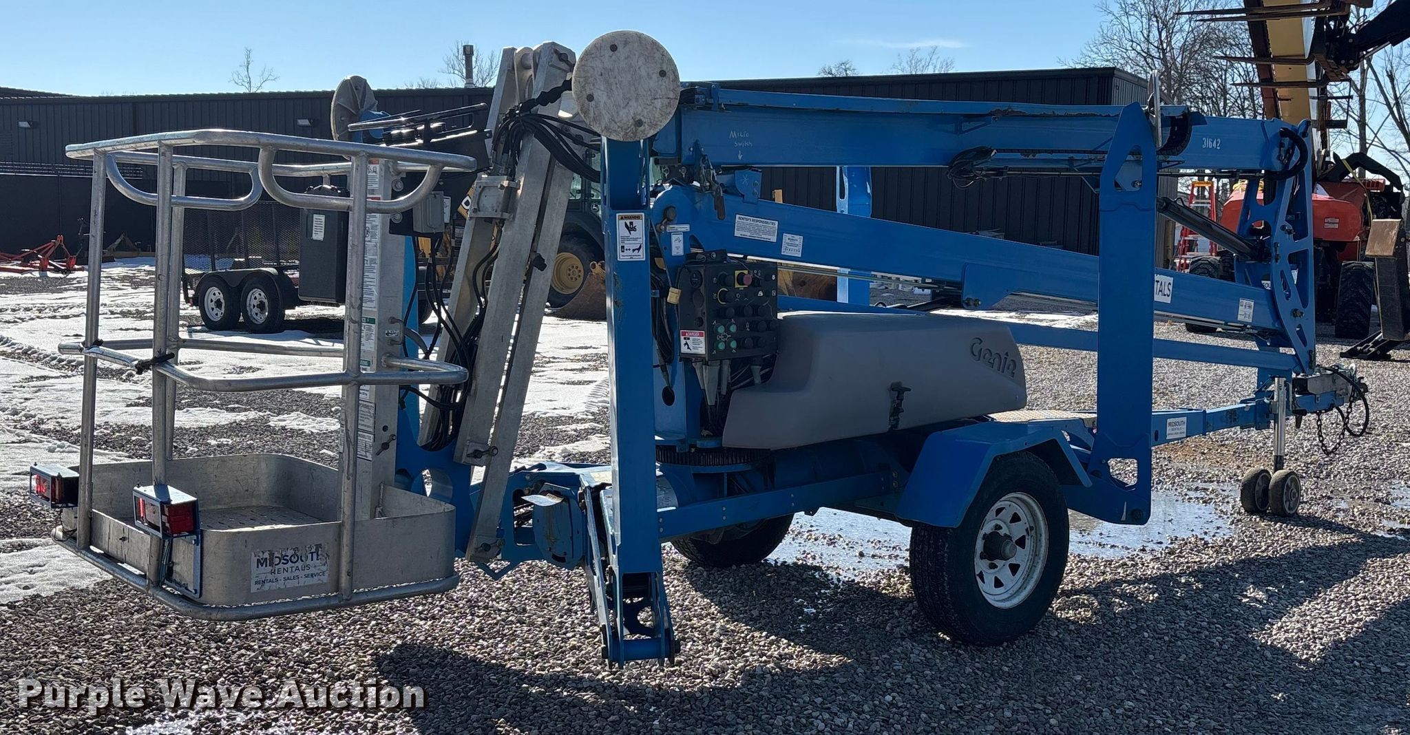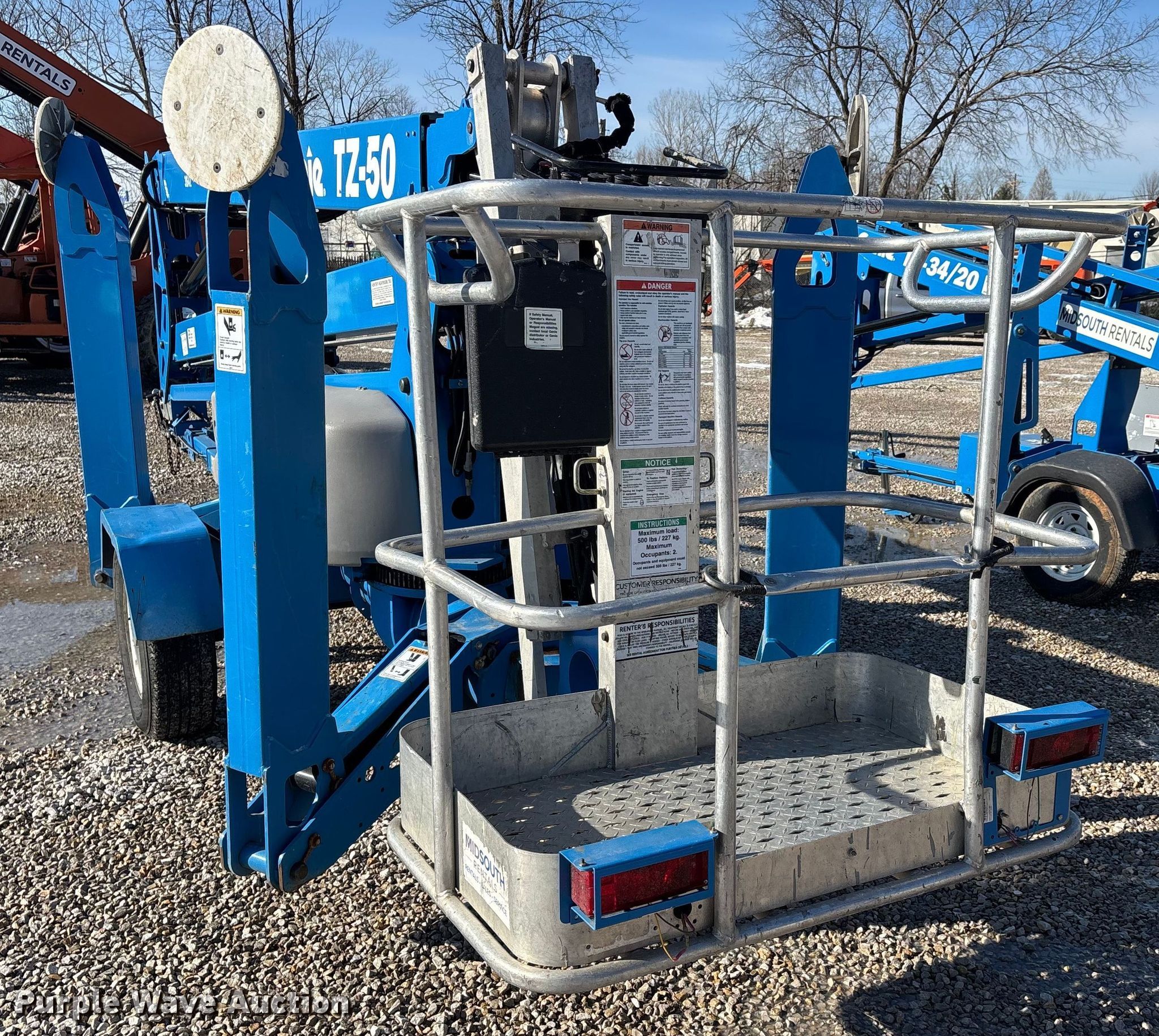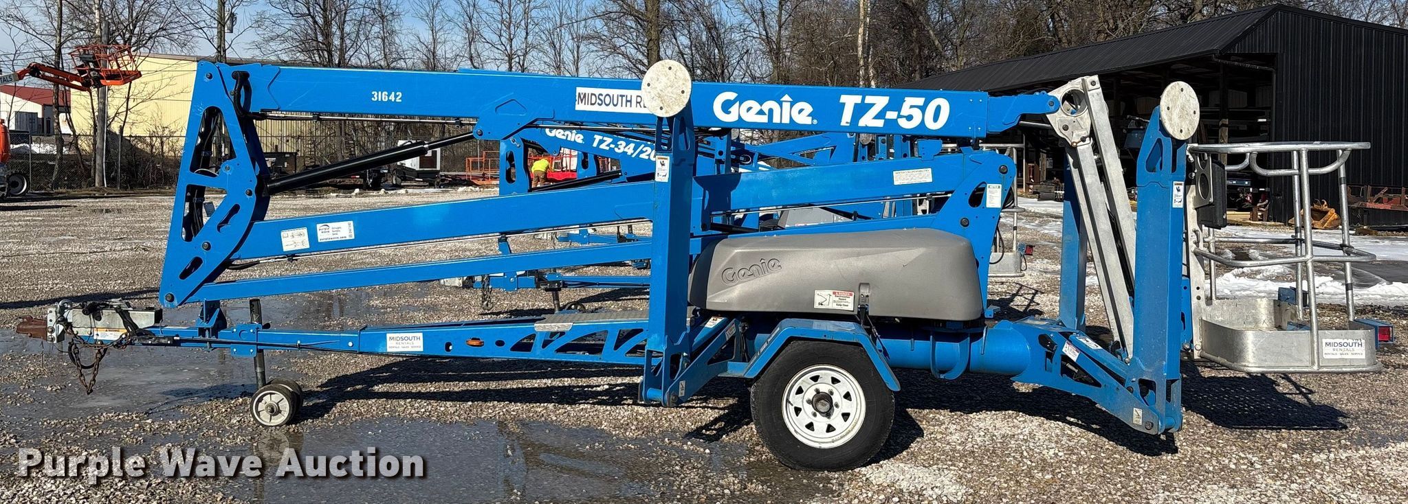 2020 Genie TZ-50 DC boom lift. Hours: 257 on meter, Miles or hours may vary, unit still in use, Serial: TZ50J-4138, Unit #: 31642. Electric Motor Genie 140-01-4007, Volts: 24. Features Tow behind, Boom type: Articulating, Maximum lift capacity: 500 lbs, Maximum reach length: 29', Maximum lift height: 50', Hydraulic outriggers, Platform: 27" L x 45" W, AC power outlet, Controls: Platform, Ground. Tires Tire size: 225/75R15. This is worksite support equipment and will not come with a title. Transfer of ownership documentation will be a bill of sale. Midsouth Rentals LLC. Owensboro, KY 42303