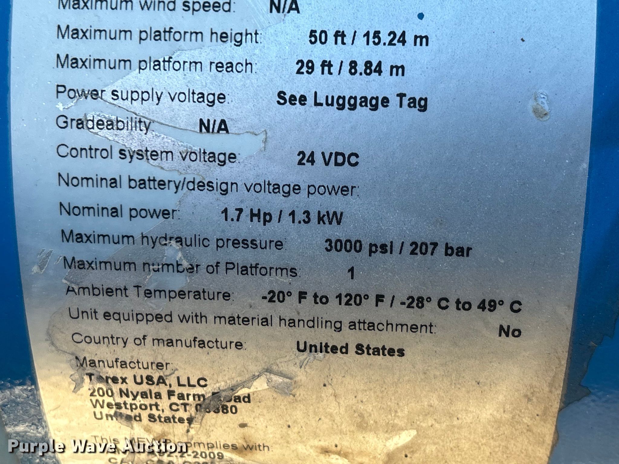 - Maximum lift height: 50'