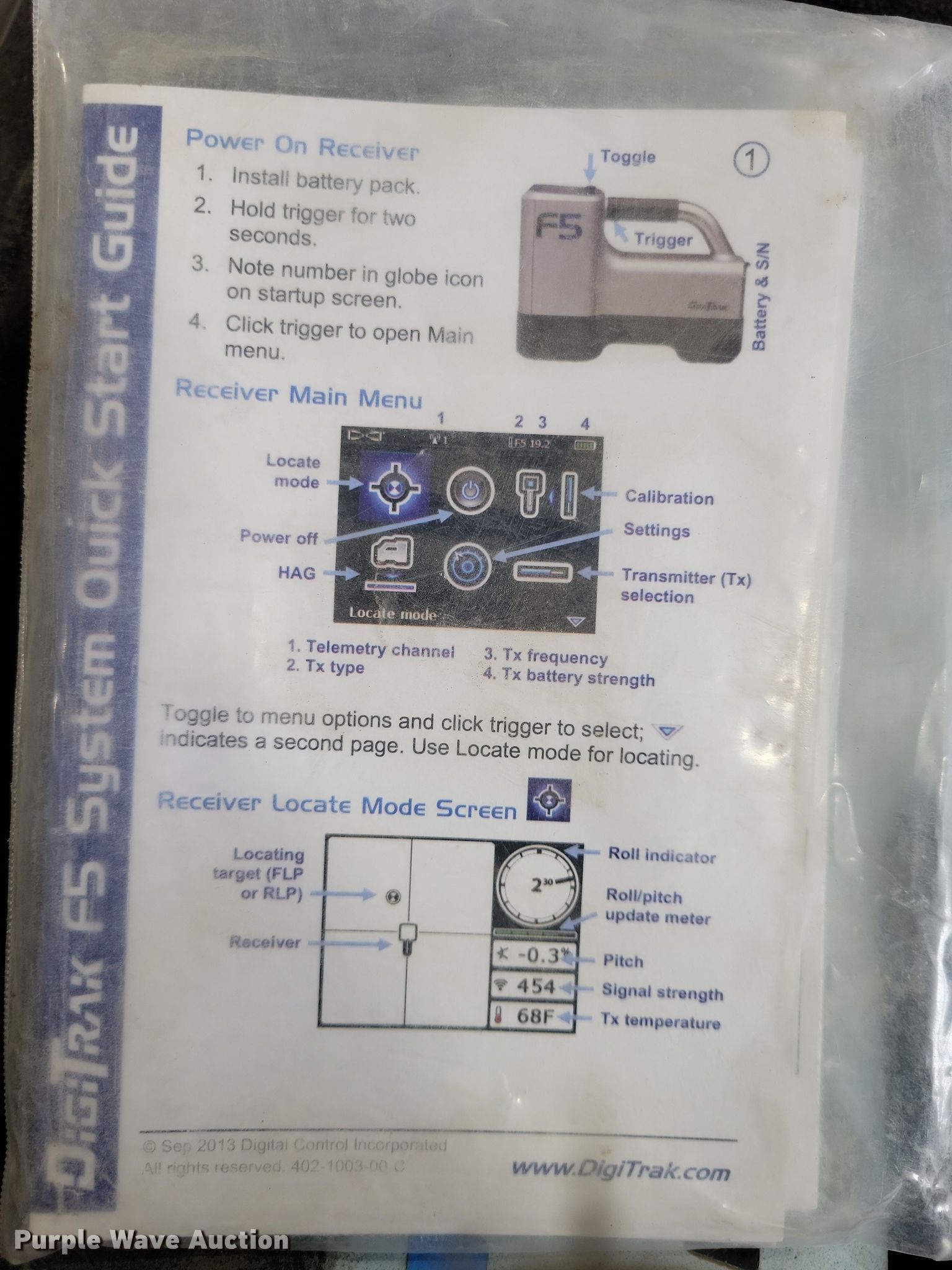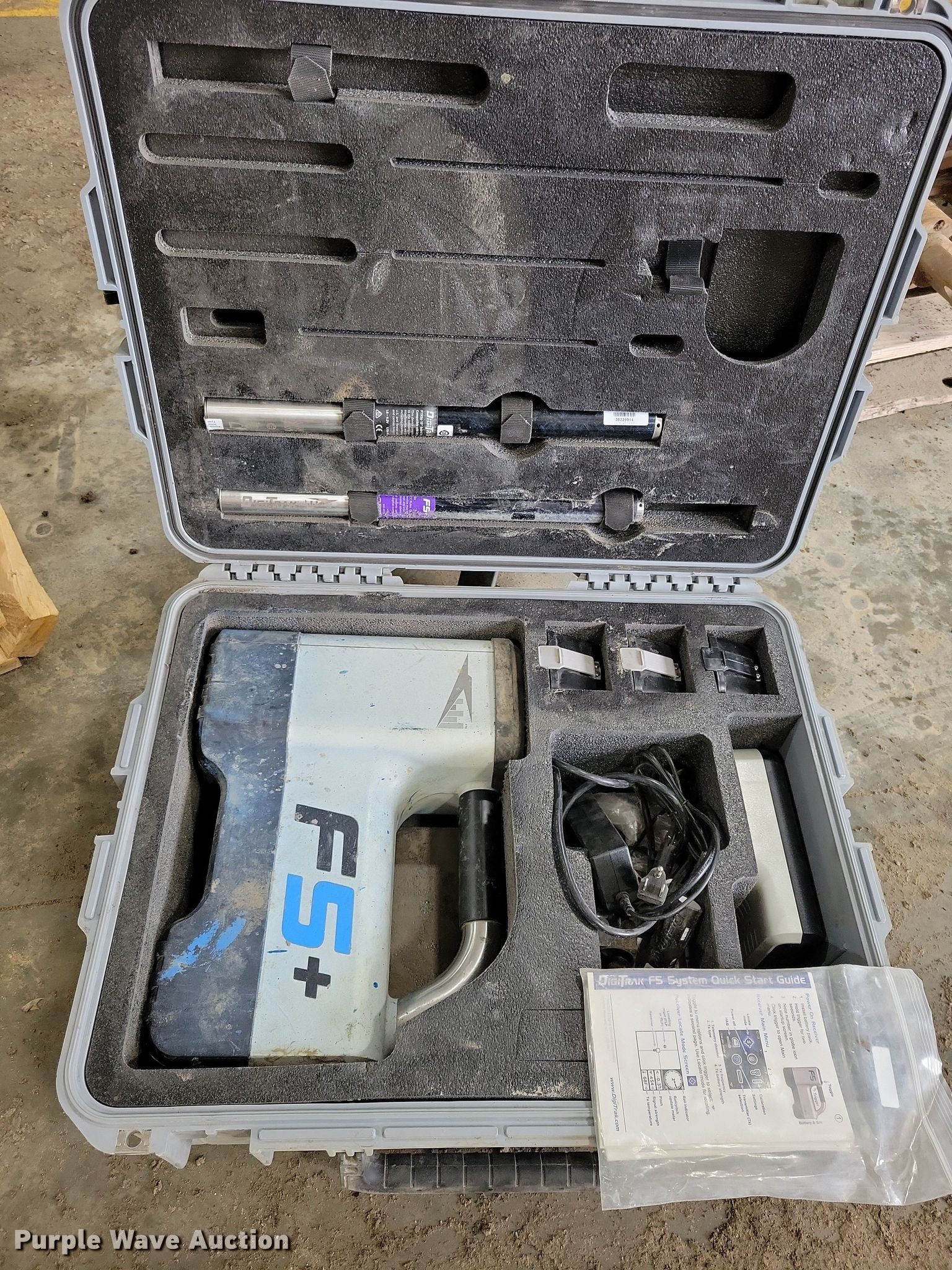 Purple Wave is selling a used Boring or Trenching Tool or Attach. in Iowa. This item is a DigiTrak Falcon F5 + locator with the following: Locator, DigiTrak Falcon F5+, Transmitter, Serial: 30239914, Battery charger, Serial: 20-08-21, (3) batteries, Tripod, Owners manual, (2) rebar probes, Length: 15", (2) Dual frequency transmitters