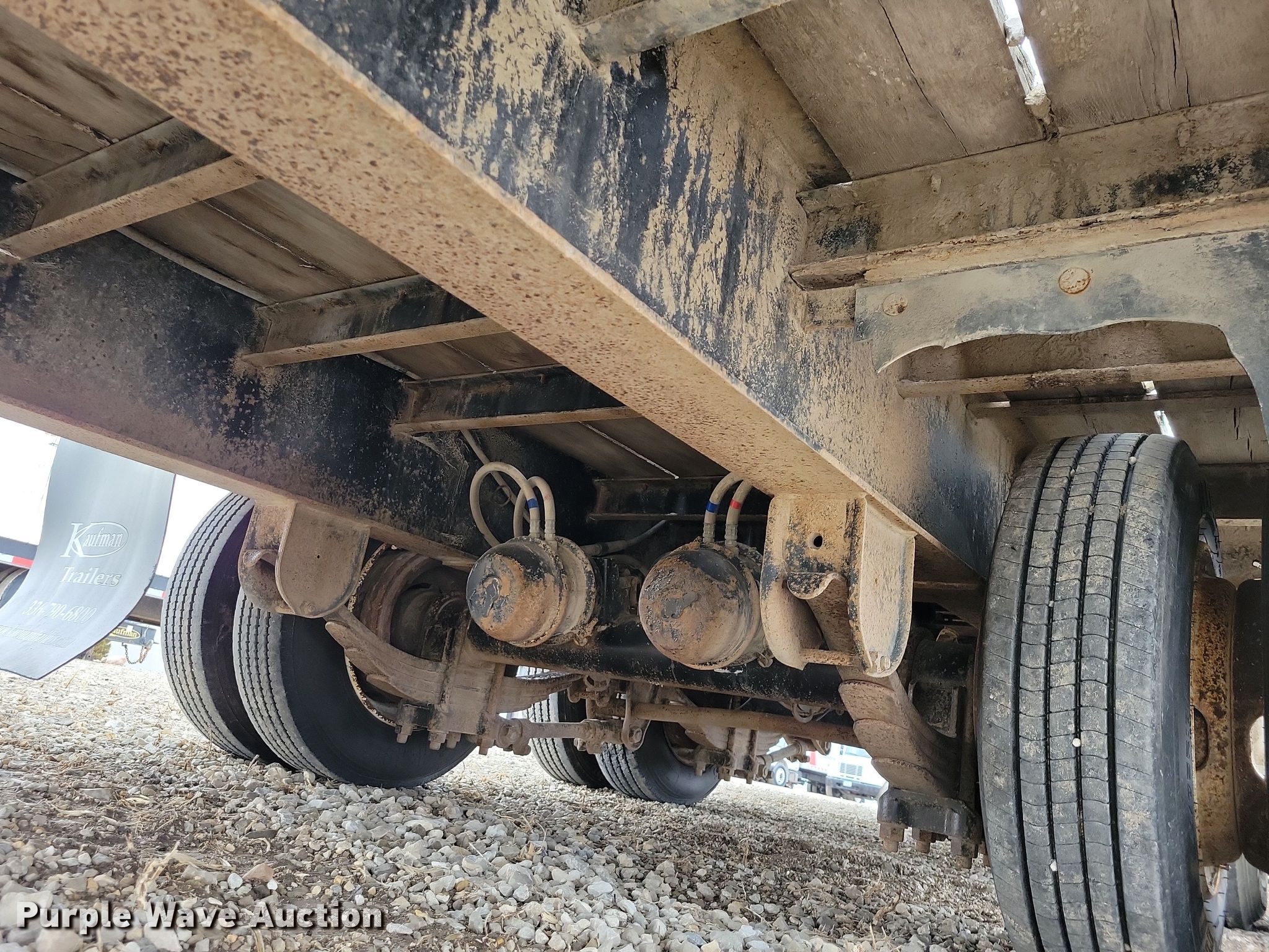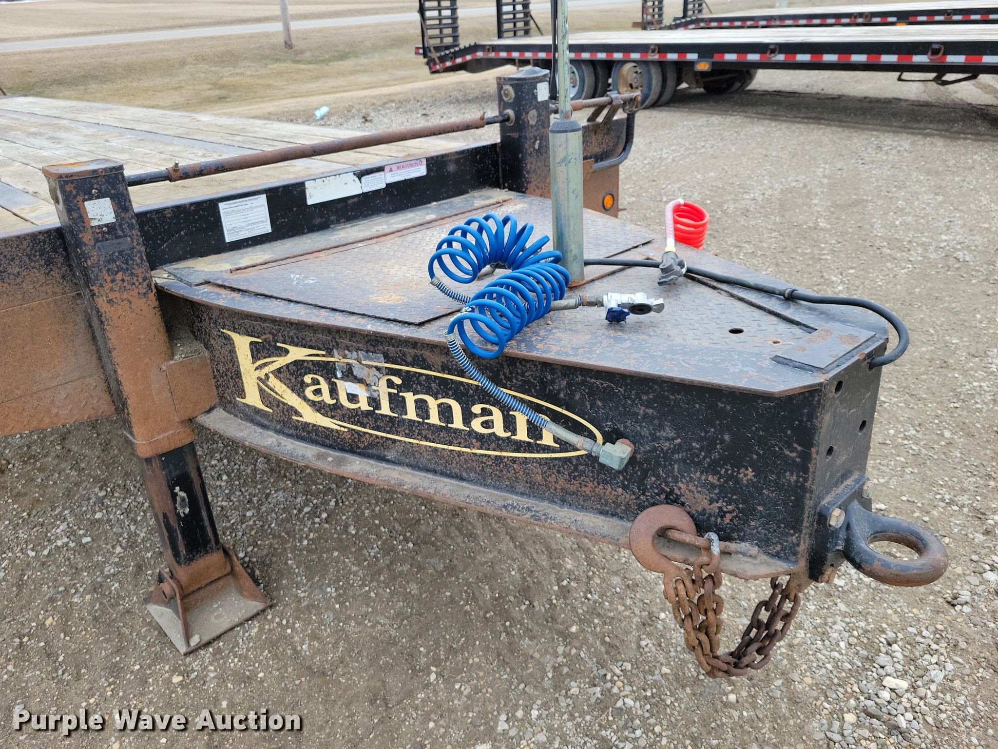 2018 Kaufman equipment trailer. VIN: 5SHAP3524JB000816. Dimensions Overall Length: 42', Width: 6", Deck Length: 30', Width: 101", Deck height: 33", Tail length: 5', Ramps: Manual Length: 6'. Features Deck type: Wood. Chassis Hitch: Pintle, Landing gear: Dual, Suspension: Spring, Brakes: Air, Axles: Tandem, GVWR: 45,000 lbs. Tires Steel wheels, Size: 215/75R17.5. Iowa title. Title distribution may be delayed up to 14 days from verification of funds. Mort's Water Co. Latimer, IA 50452