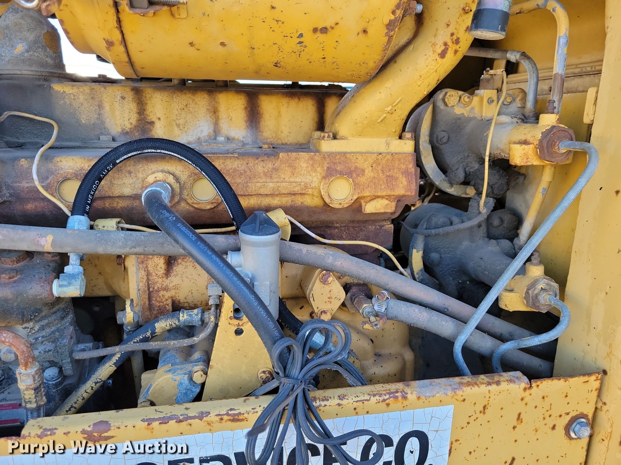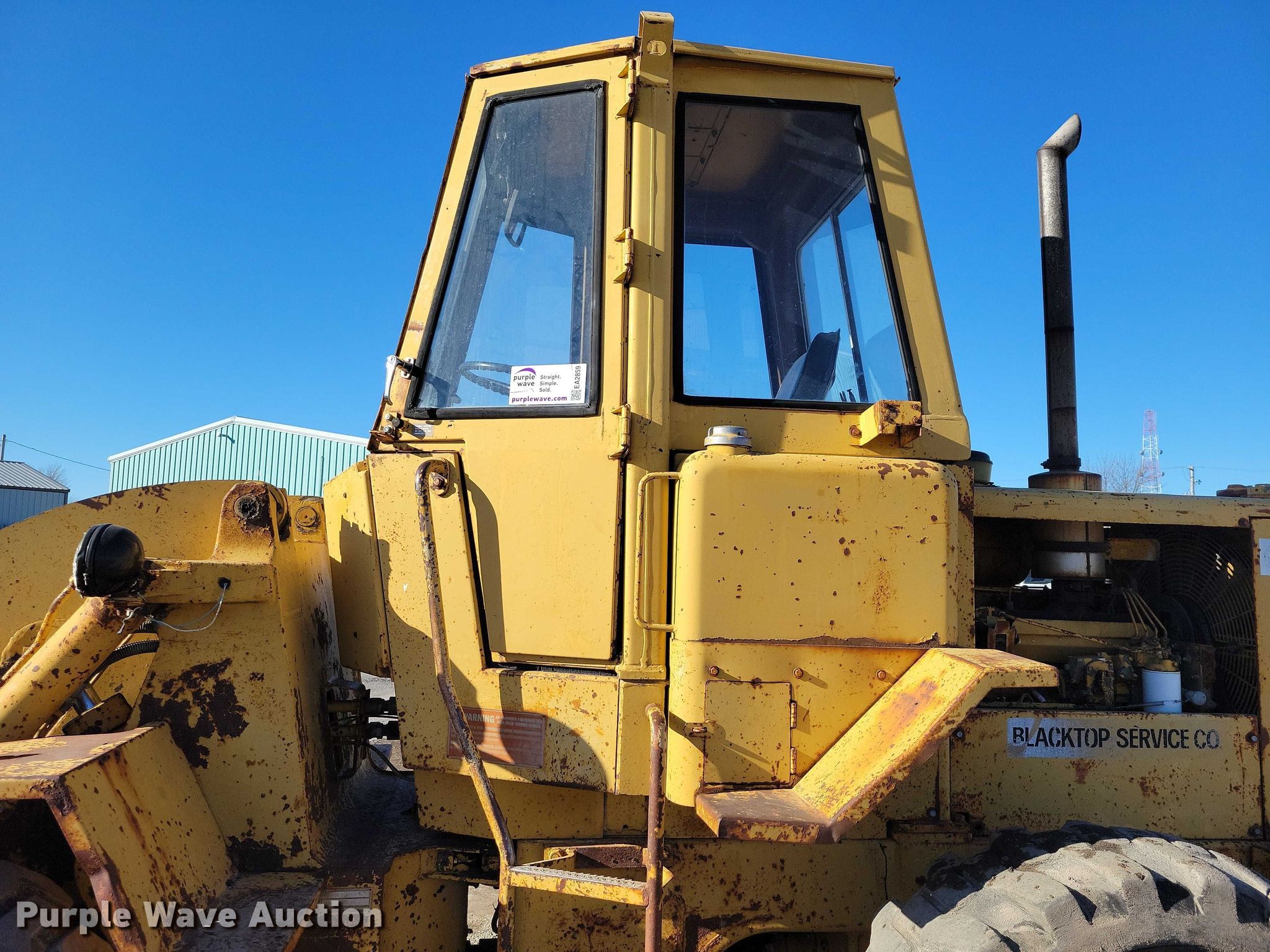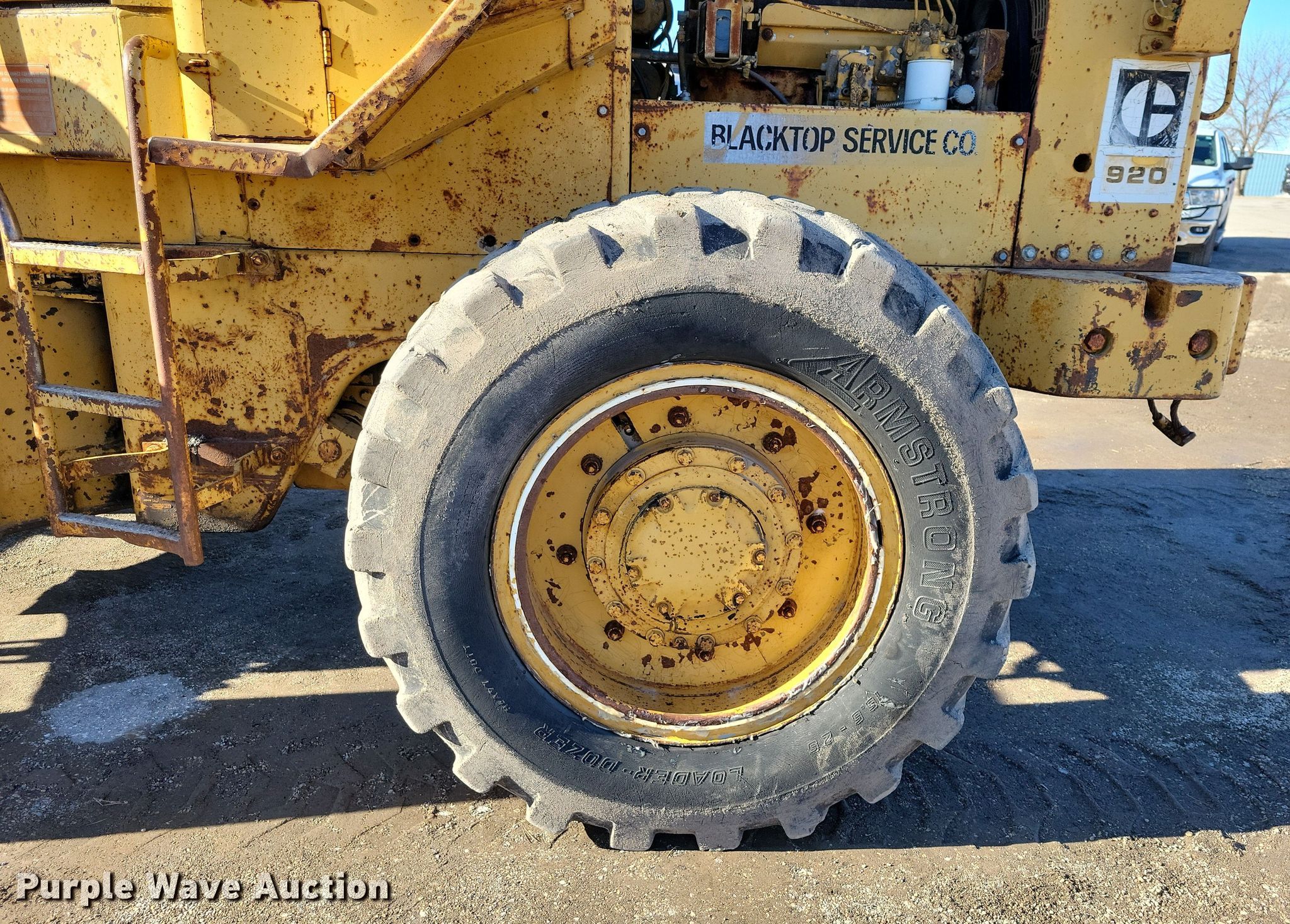 1969 Caterpillar 920 wheel loader. Hours: 3,682 on meter, Serial: 62K1300. Engine Caterpillar 3304, Serial: 78P62694, Displacement: 7.0L, Cylinders: 4, Fuel type: Diesel. Transmission Powershift, 4F - 4R. Operators station Enclosed cab, Bucket controls: Two-lever. Features Counter weights, Bucket Width: 96", Cutting edge: Bolt-on. Tires Size: 15.5-25. Blacktop Service Co.. Humboldt, IA 50548