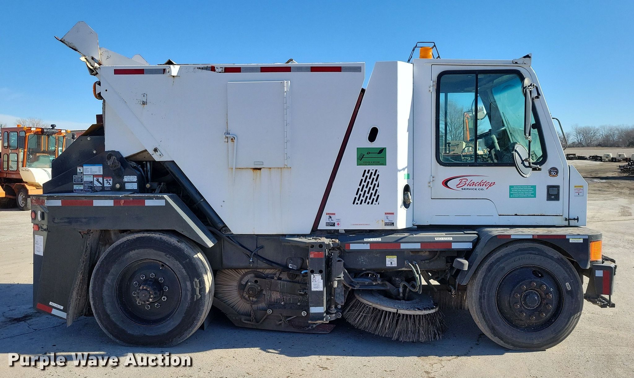 2009 Johnston street sweeper. Miles: 28,597 on odometer, Hours: 5,428 on meter. Engine Paccar, Cylinders: 6, Fuel type: Diesel. Transmission Hydrostatic. Chassis GVWR: 27,000 lbs. Features Broom Width: 60", Left gutter broom Diameter: 36", Right gutter broom Diameter: 36", Water spray system. Tires Front: 9R22.5, Rear: 315/80R22.5. Notes Non-operational AC AC belt removed. This is worksite support equipment and will not come with a title. Transfer of ownership documentation will be a bill of sale. Blacktop Service Co.. Humboldt, IA 50548