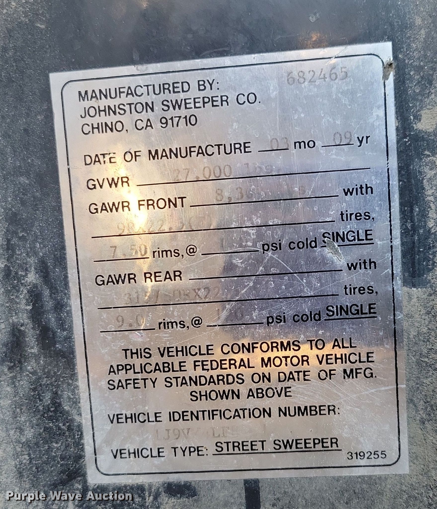 Purple Wave is selling a used Sweeper in Iowa. This item is a 2009 Johnston street sweeper with the following: Miles: 28,597 on odometer, Hours: 5,428 on meter