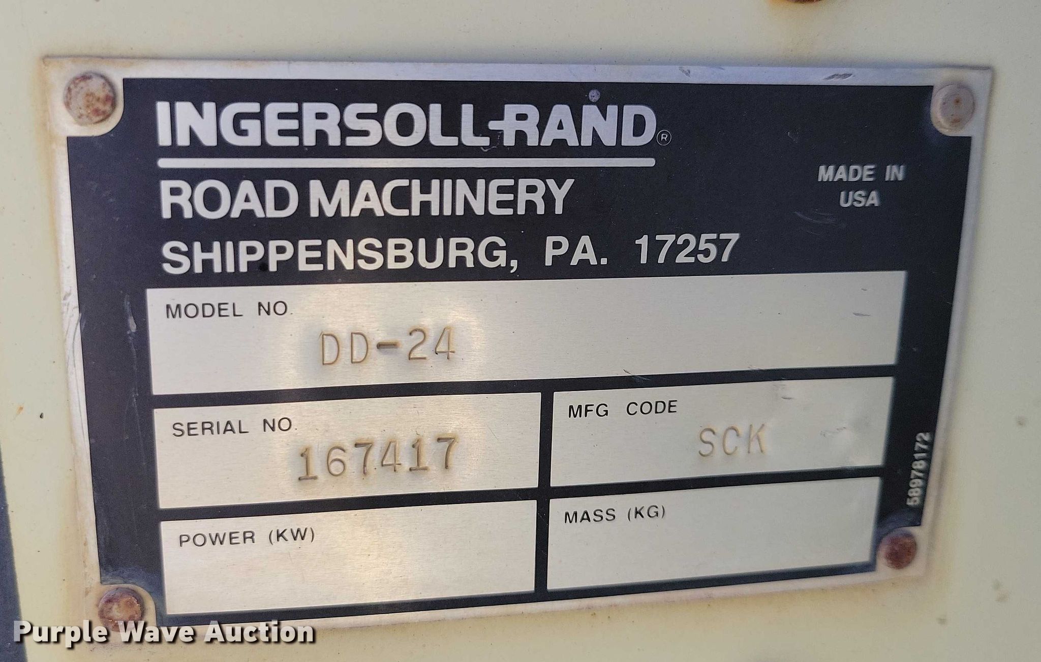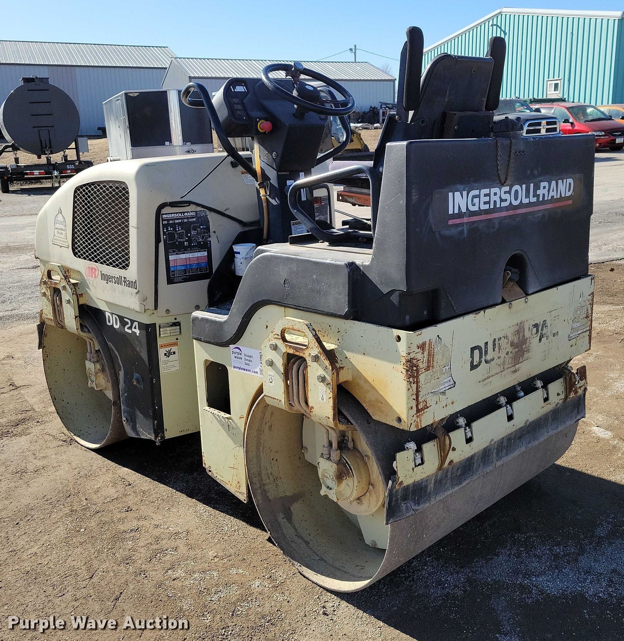 Purple Wave is selling a used Double Drum Roller Compactor in Iowa. This item is a 2001 Ingersoll Rand DD24 double drum vibratory roller with the following: Hours: 2,927 on meter, Serial: 167417