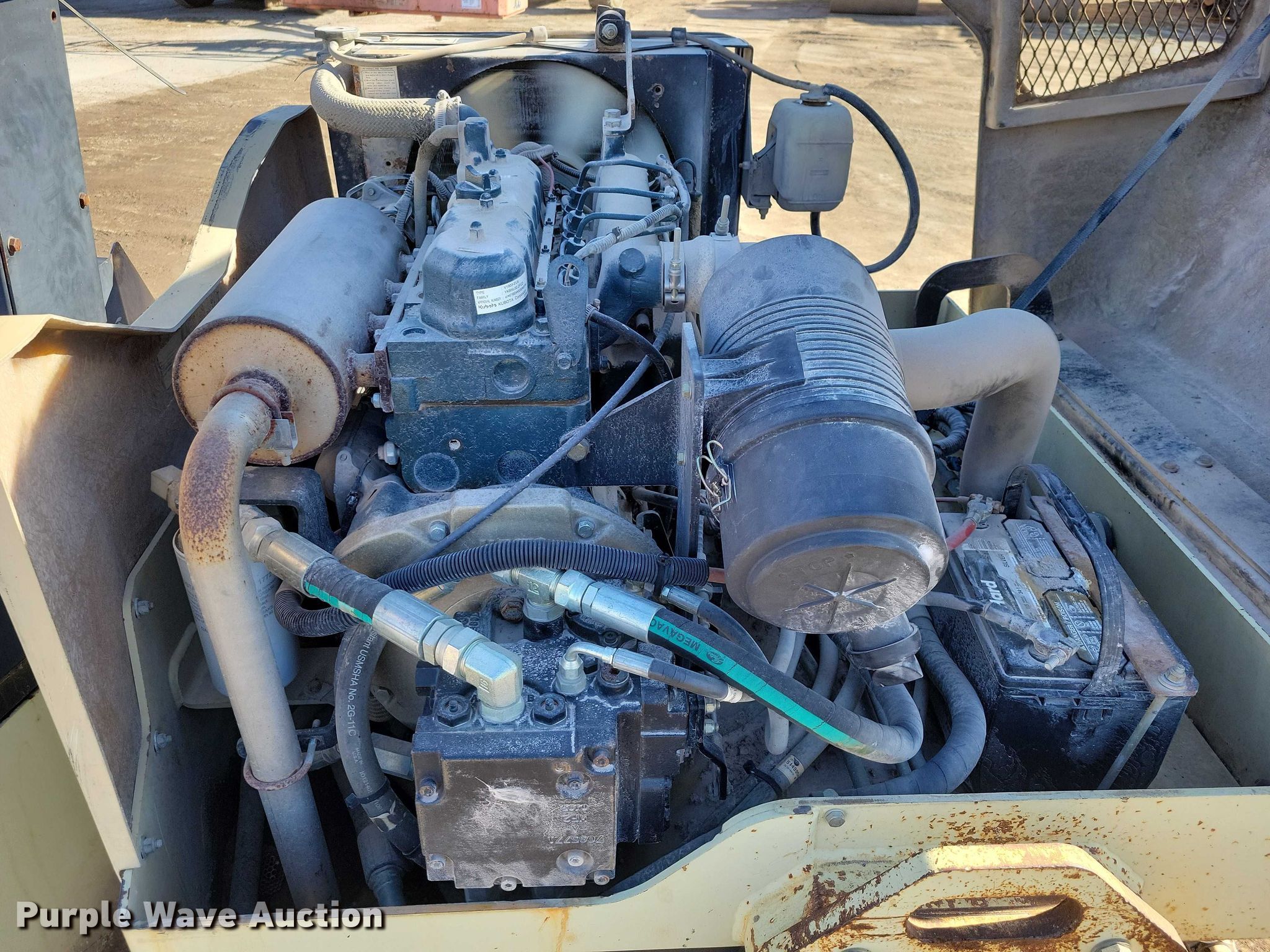 2001 Ingersoll Rand DD24 double drum vibratory roller. Hours: 2,927 on meter, Serial: 167417. Engine Kubota V1903, Serial: OYS0147, Displacement: 1.9L, Cylinders: 4, Fuel type: Diesel, kW: 31. Transmission Hydrostatic. Features Drum type: Smooth, Vibratory system: Double, Front drum Width: 47", Diameter: 28", Rear drum Width: 47", Diameter: 28", Drum scrapers: Front, Rear, Water spray applicator: Front, Rear. Blacktop Service Co.. Humboldt, IA 50548
