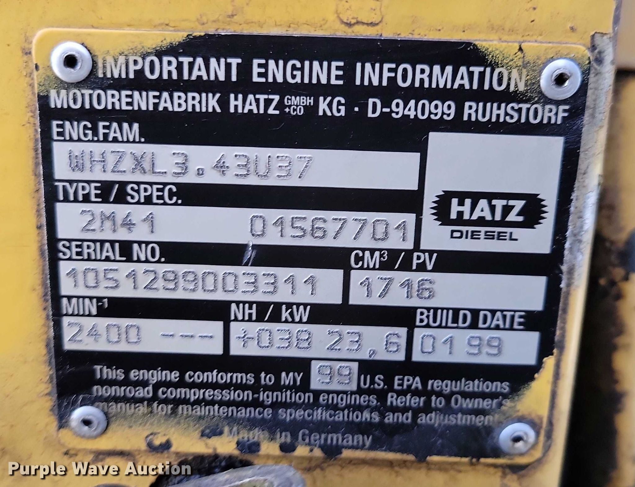 Caterpillar CB-224C double drum vibratory roller. Hours: 3,040 on meter, Serial: 3AL01648. Engine Hatz, Serial: 1051299003311, Cylinders: 2, Fuel type: Diesel, kW: 23.6. Transmission Hydrostatic. Operators station Vandal cover. Features Drum type: Smooth, Vibratory system: Double, Front drum Width: 47", Diameter: 27", Rear drum Width: 47", Diameter: 27", Drum scrapers: Front, Rear, Water spray applicator: Front, Rear. Blacktop Service Co.. Humboldt, IA 50548