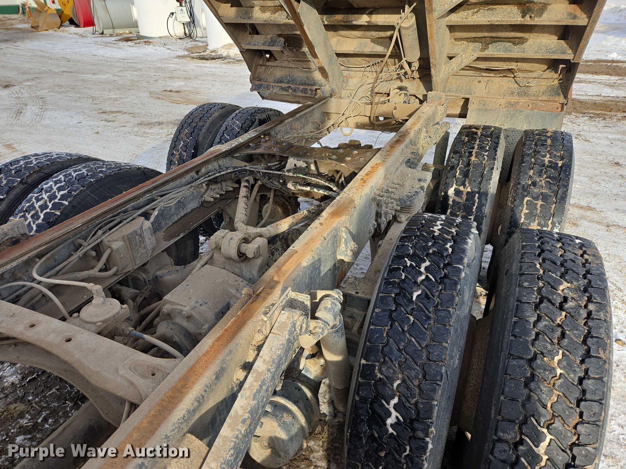 2004 Sterling L8500 dump truck. Miles: Unknown, VIN: 2FZHAWDC54AM48576. Engine Caterpillar C7 Acert, Displacement: 7.2L, Cylinders: 6, Fuel type: Diesel. Transmission Automatic. Chassis Double frame, Axles: Triple, Pusher axle Steerable, Differential lock: Full, Suspension: Spring over walking beam, Brakes: Air, PTO. Interior AC, Heat, Heated mirrors. Features Bed Dump bed, Length: 15', Width: 96", Side height: 54", Bed type: Steel, Roll tarp, Ram: Single, End gate: Air operated. Tires Front: 315/80R22.5, Rear: 11R22.5, Lift axle: 255/70R22.5. Notes Gauge cluster issues, Dash warning indicator: Check engine, Windshield chipped or cracked. South Dakota title. Mileage has not been verified. Exempt will be written in the odometer disclosure on the title. Title distribution may be delayed up to 14 days from verification of funds. Clausen & Sons Construction LLC. Watertown, SD 57201