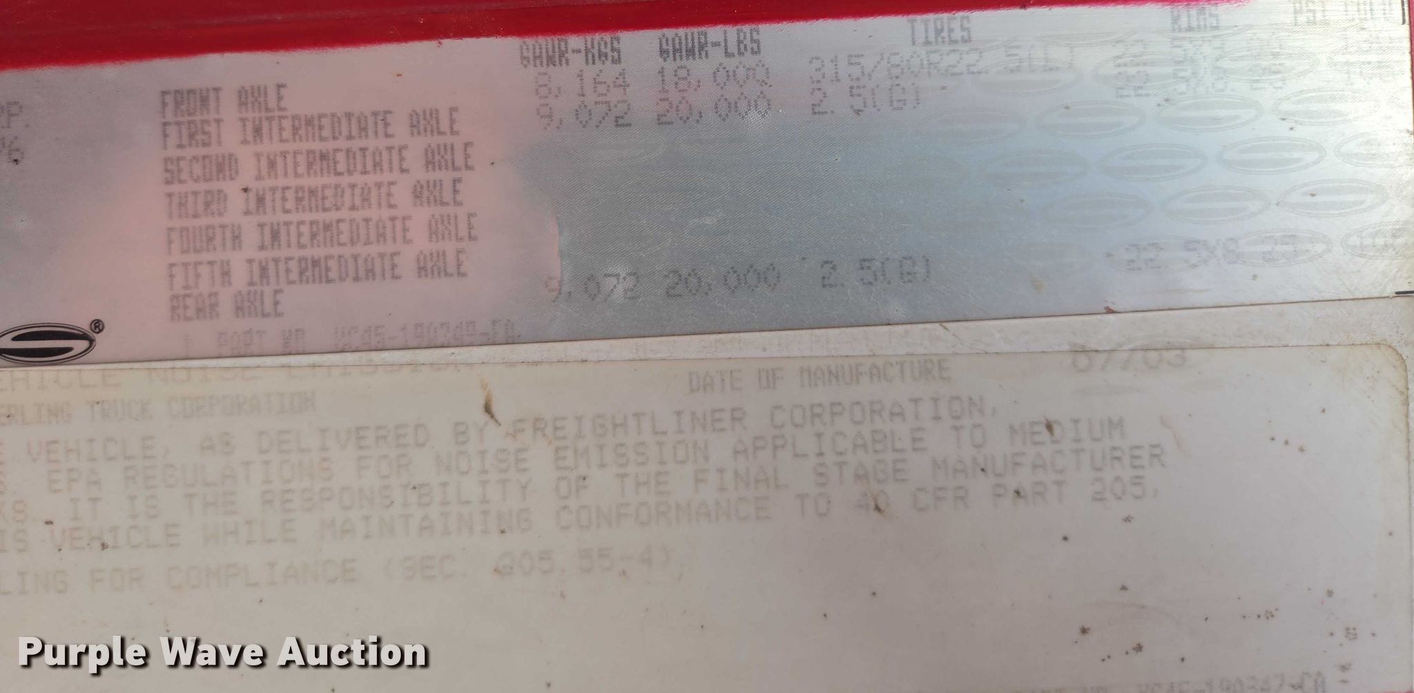 Take a look at this used 2004 Sterling L8500 dump truck being sold on March 12th, 2026 in the Thursday March 12 Construction Equipment Auction made by Sterling. Take a look at all of the item information below or take a look at similar auctions for Construction Trucks.