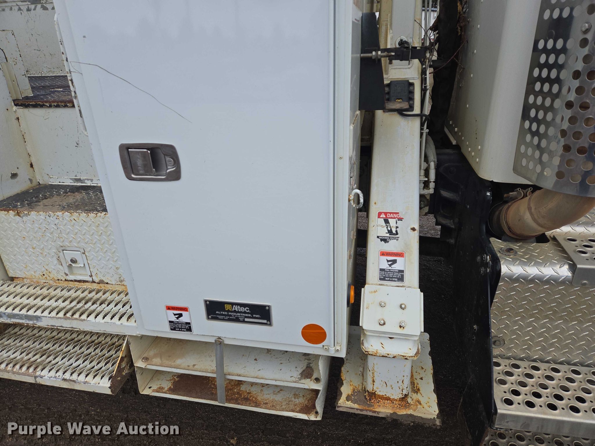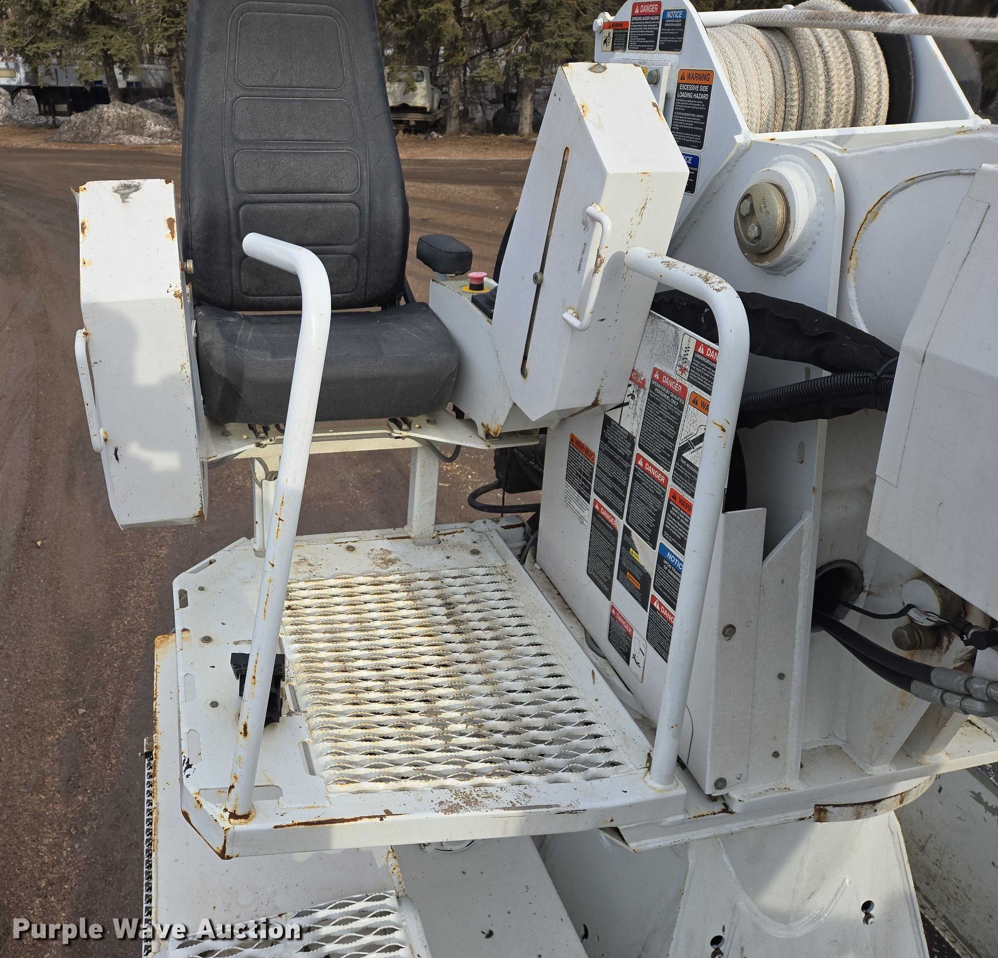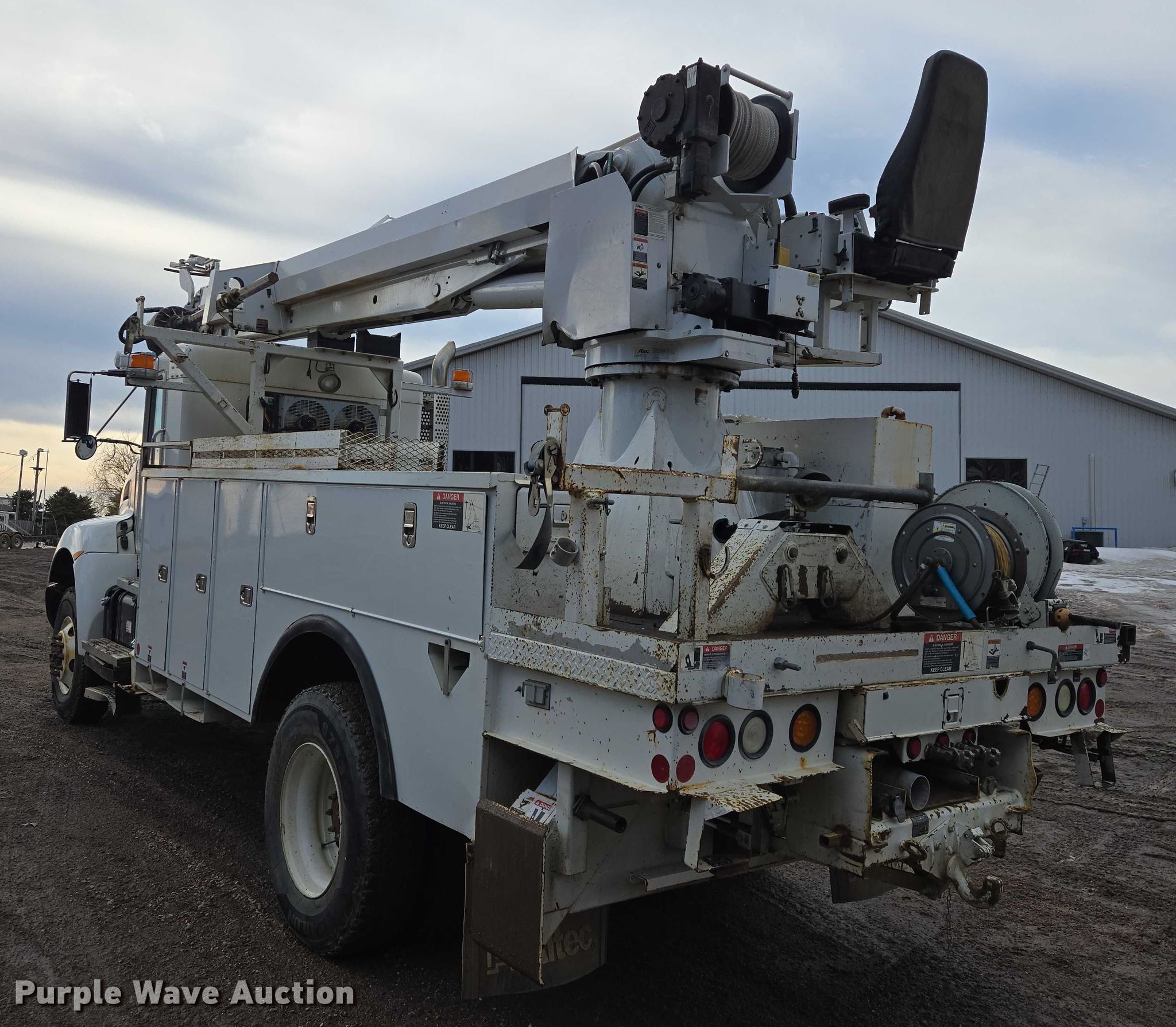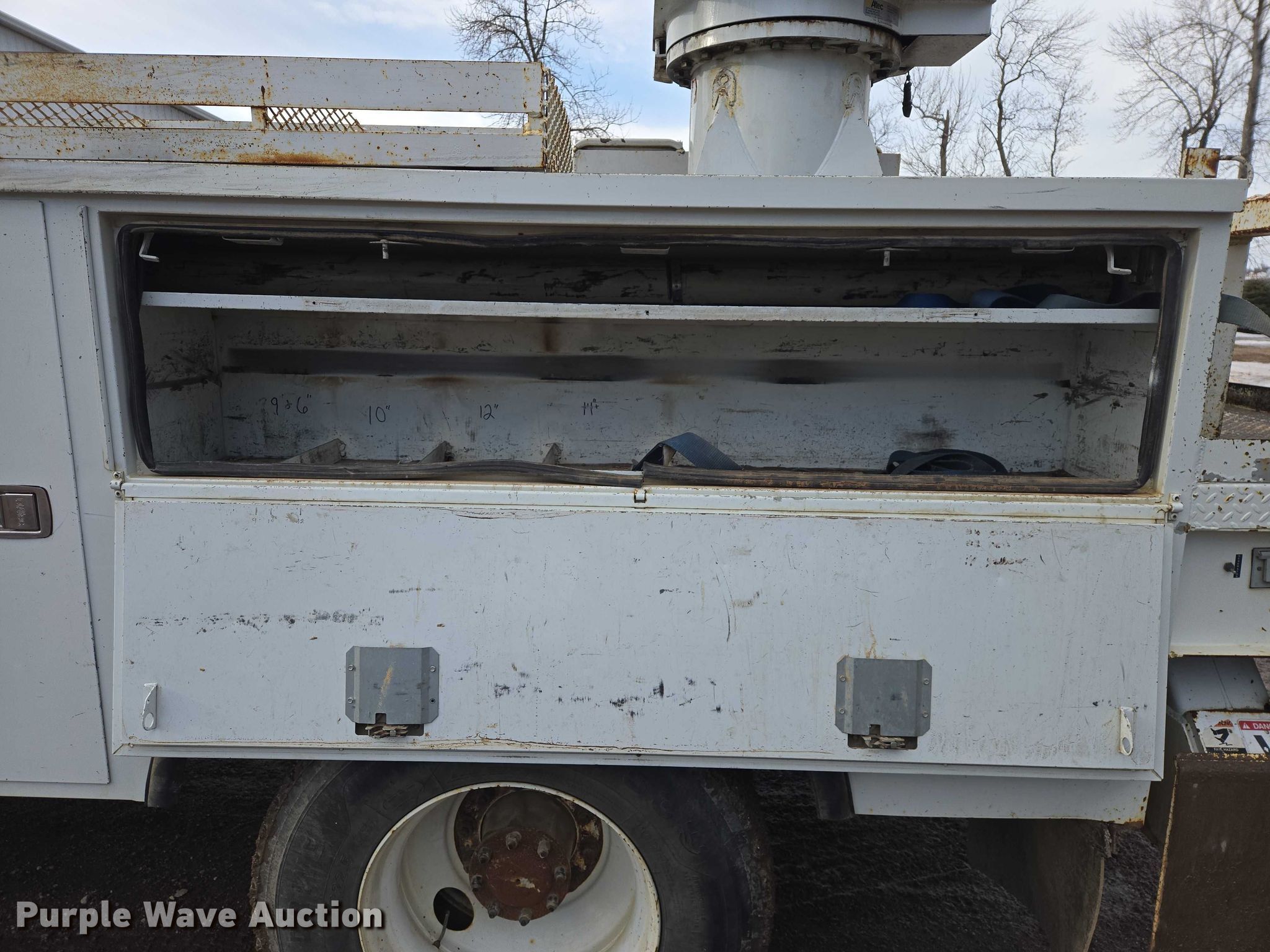 Purple Wave is selling a used Truck Part and Attach. in Minnesota. This item is a Altec DM47TR digger derrick truck bed with the following: Bed, Utility bed, Altec, Serial: 37-165119927, Length: 12' 9", Width: 94", Boom, Altec DM47TR, Serial: 0410DV4518, Maximum lift capacity: 23,790 lbs, Maximum lift height: 47', Boom type: Telescopic, Boom controls, Platform, Remote control, Material handler, Pole guide, Auger