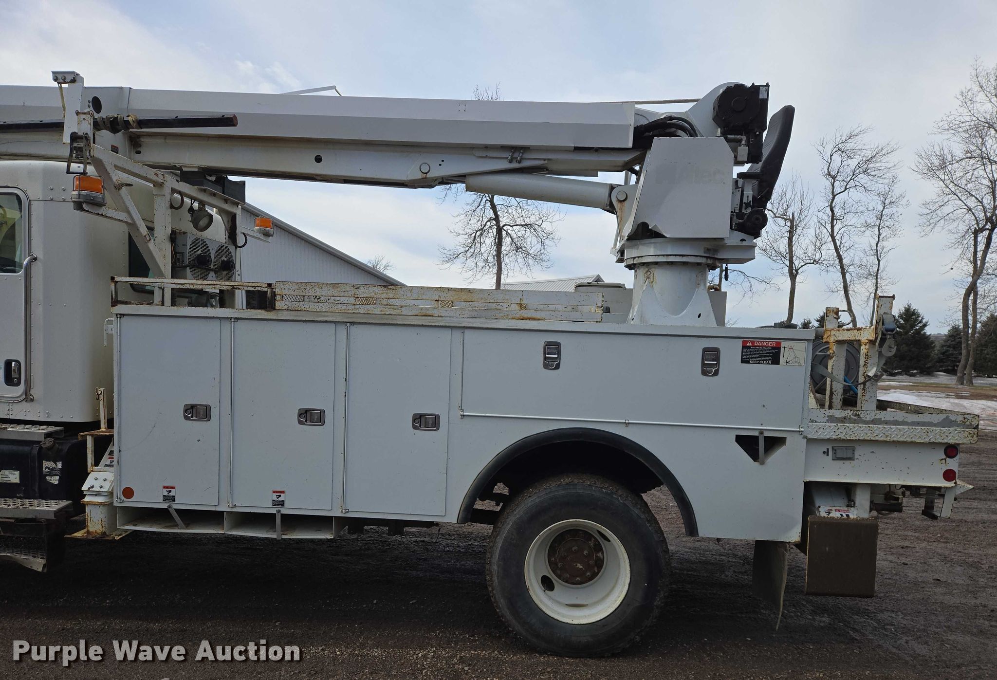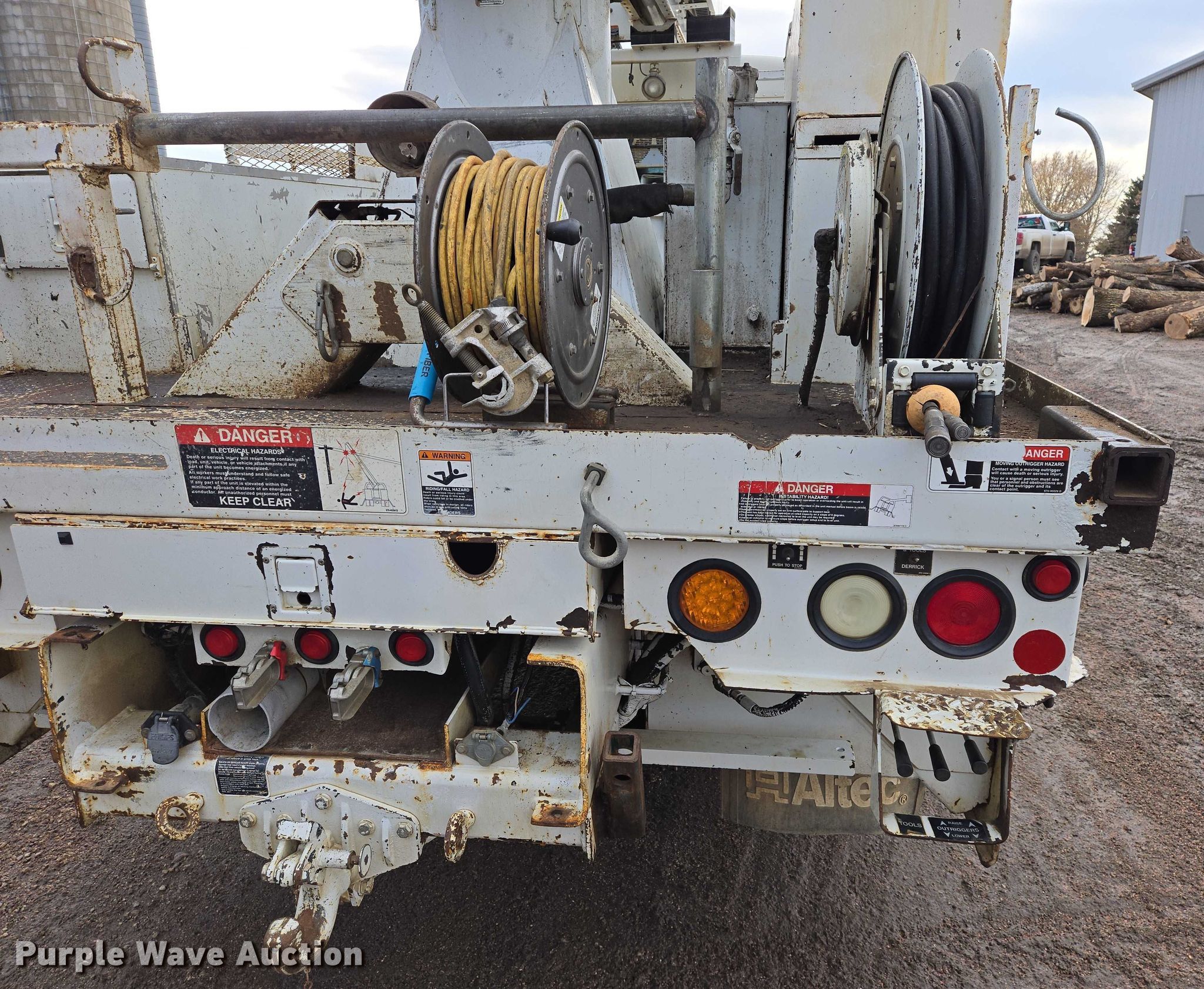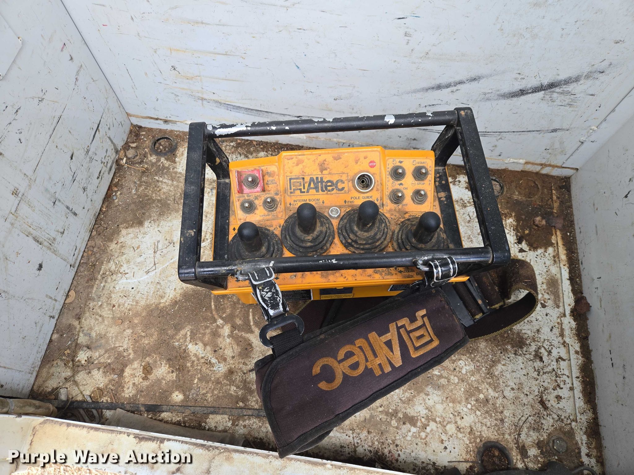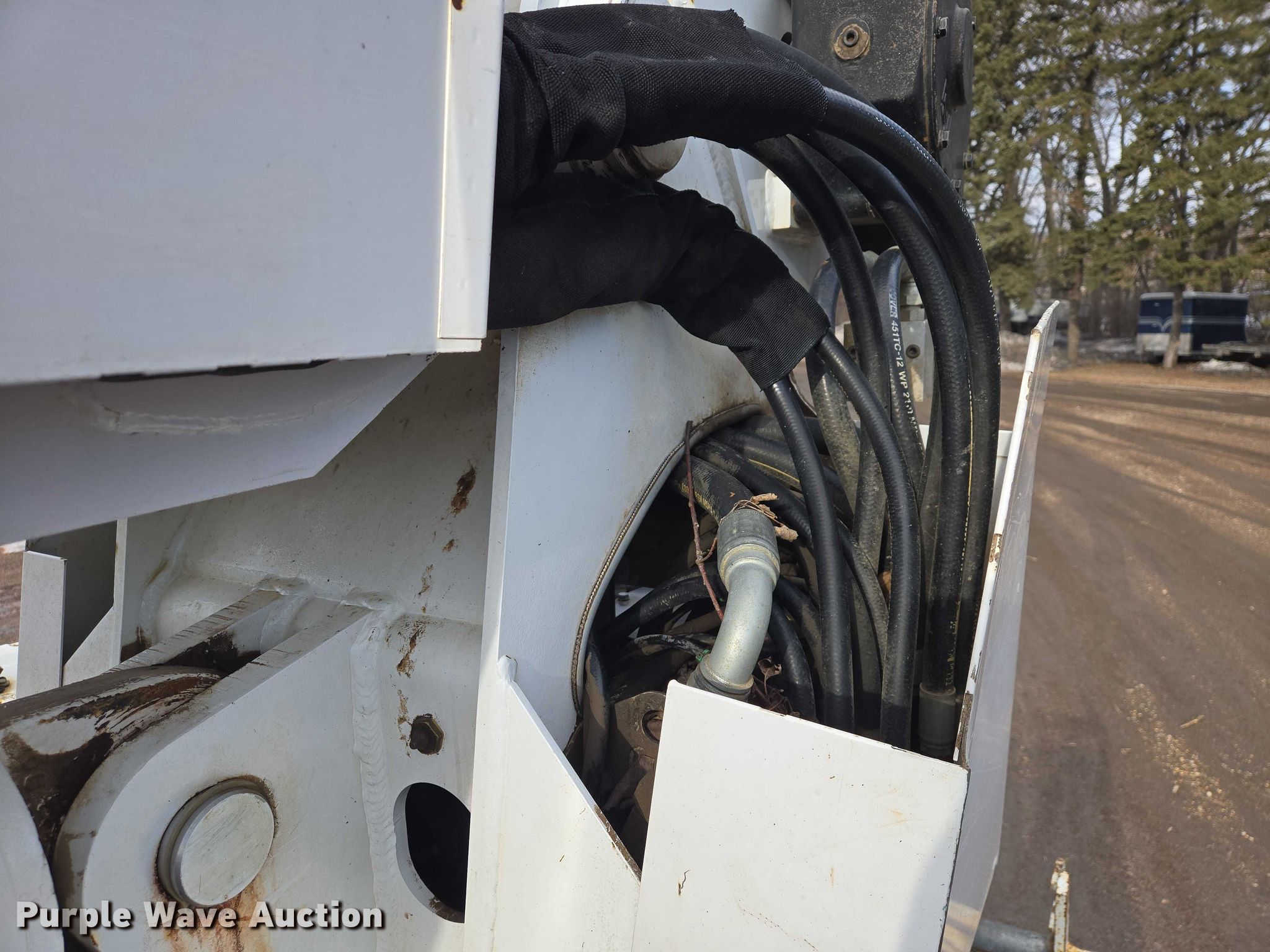 Purple Wave is selling a used Truck Part and Attach. in Minnesota. This item is a Altec DM47TR digger derrick truck bed with the following: Bed, Utility bed, Altec, Serial: 37-165119927, Length: 12' 9", Width: 94", Boom, Altec DM47TR, Serial: 0410DV4518, Maximum lift capacity: 23,790 lbs, Maximum lift height: 47', Boom type: Telescopic, Boom controls, Platform, Remote control, Material handler, Pole guide, Auger