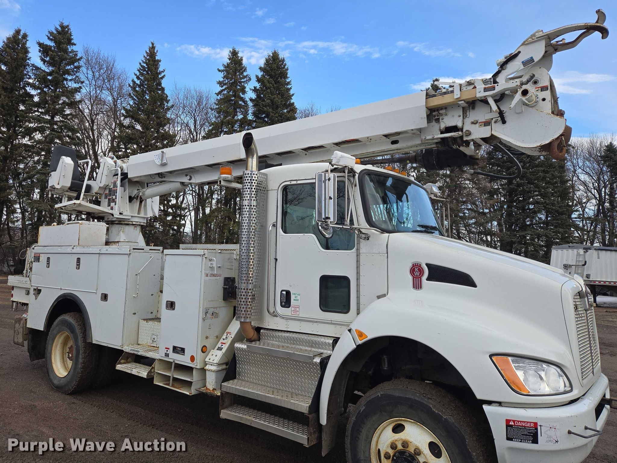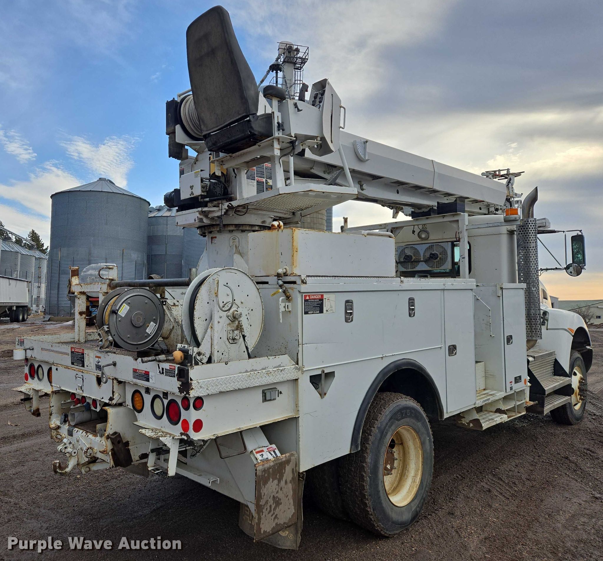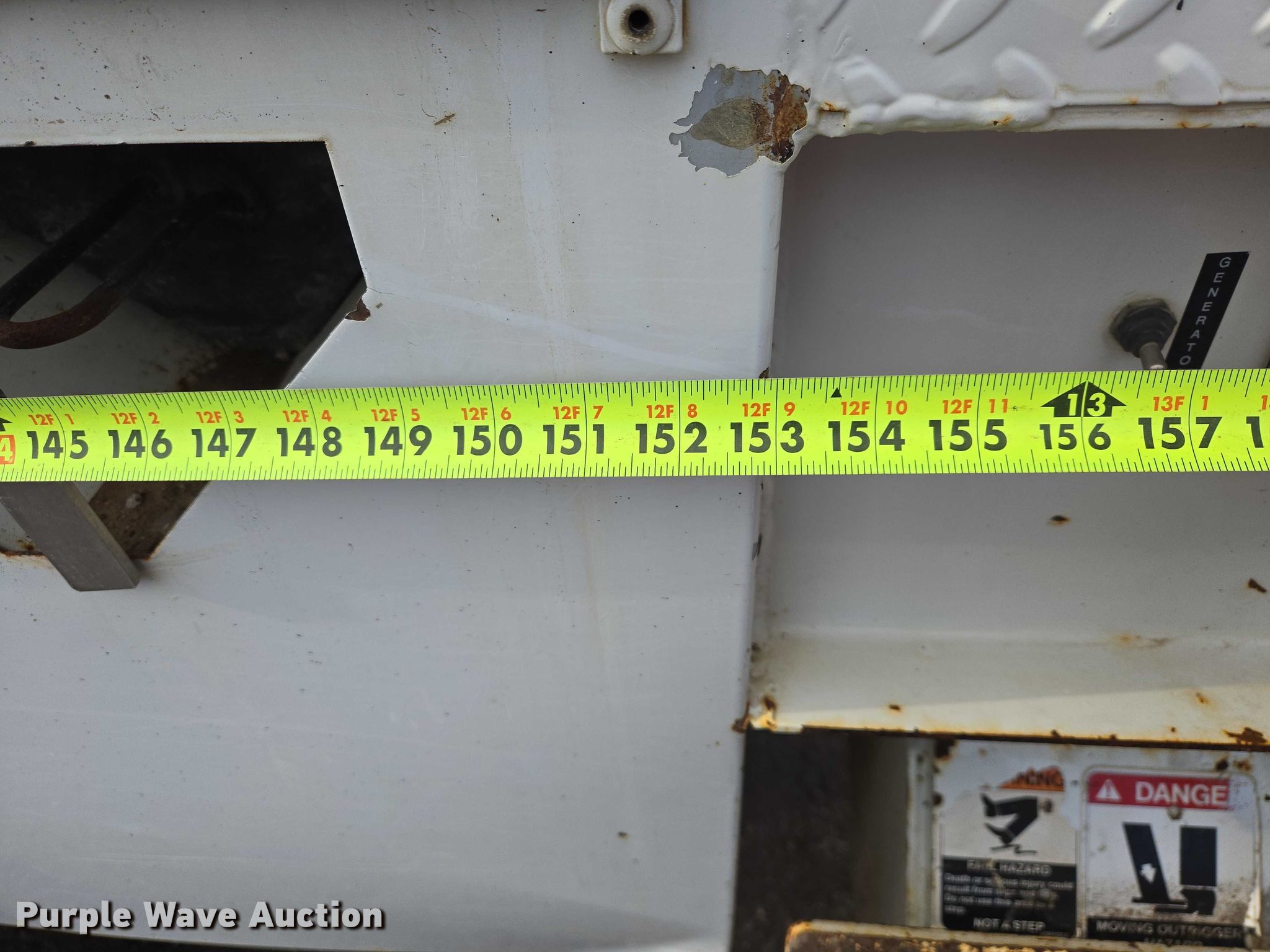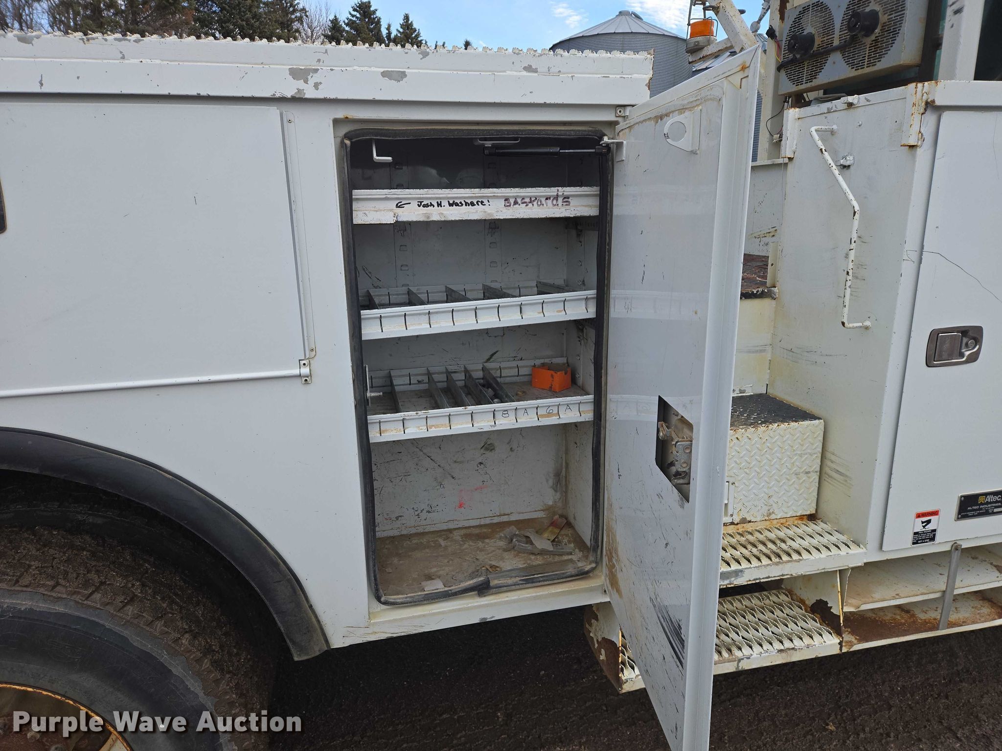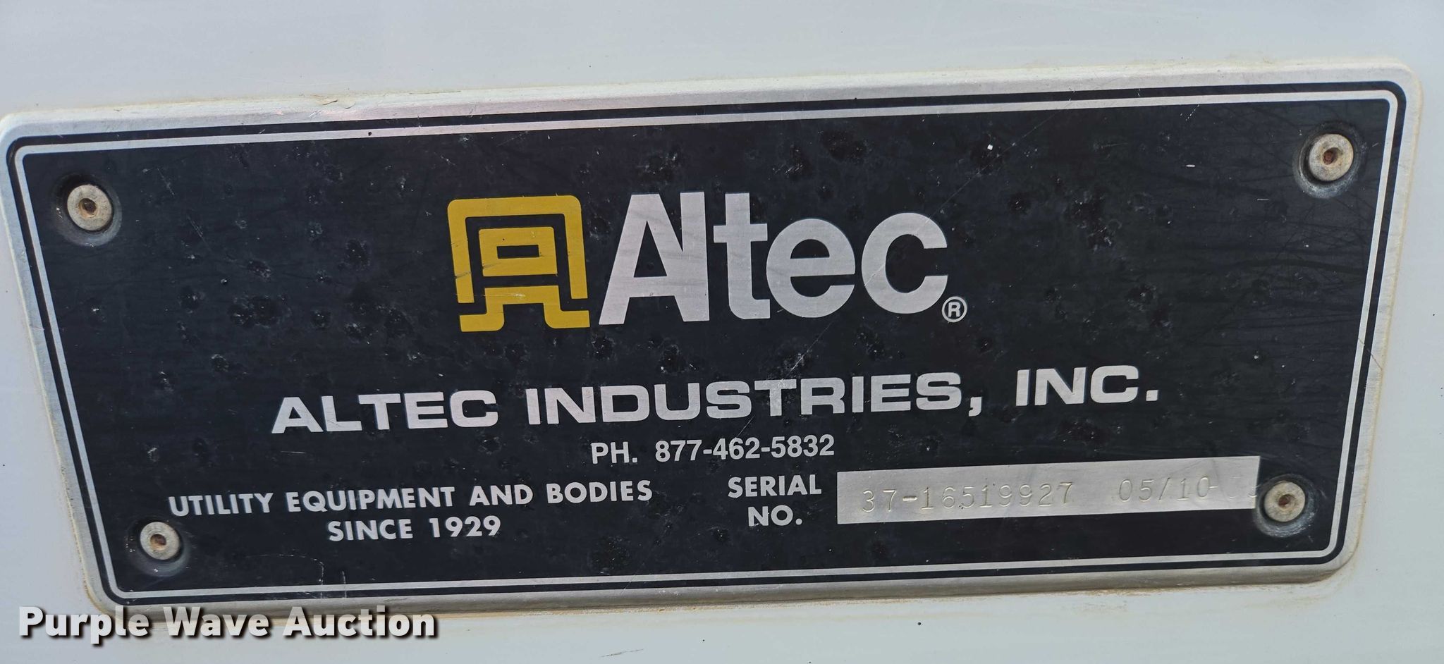 Purple Wave is selling a used Truck Part and Attach. in Minnesota. This item is a Altec DM47TR digger derrick truck bed with the following: Bed, Utility bed, Altec, Serial: 37-165119927, Length: 12' 9", Width: 94", Boom, Altec DM47TR, Serial: 0410DV4518, Maximum lift capacity: 23,790 lbs, Maximum lift height: 47', Boom type: Telescopic, Boom controls, Platform, Remote control, Material handler, Pole guide, Auger