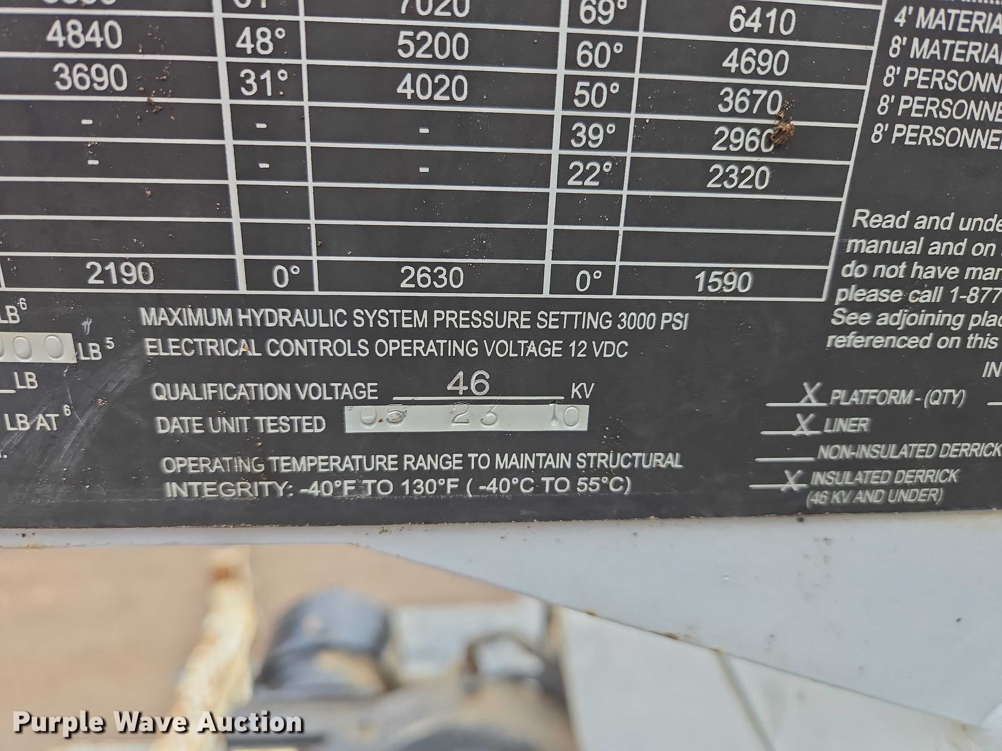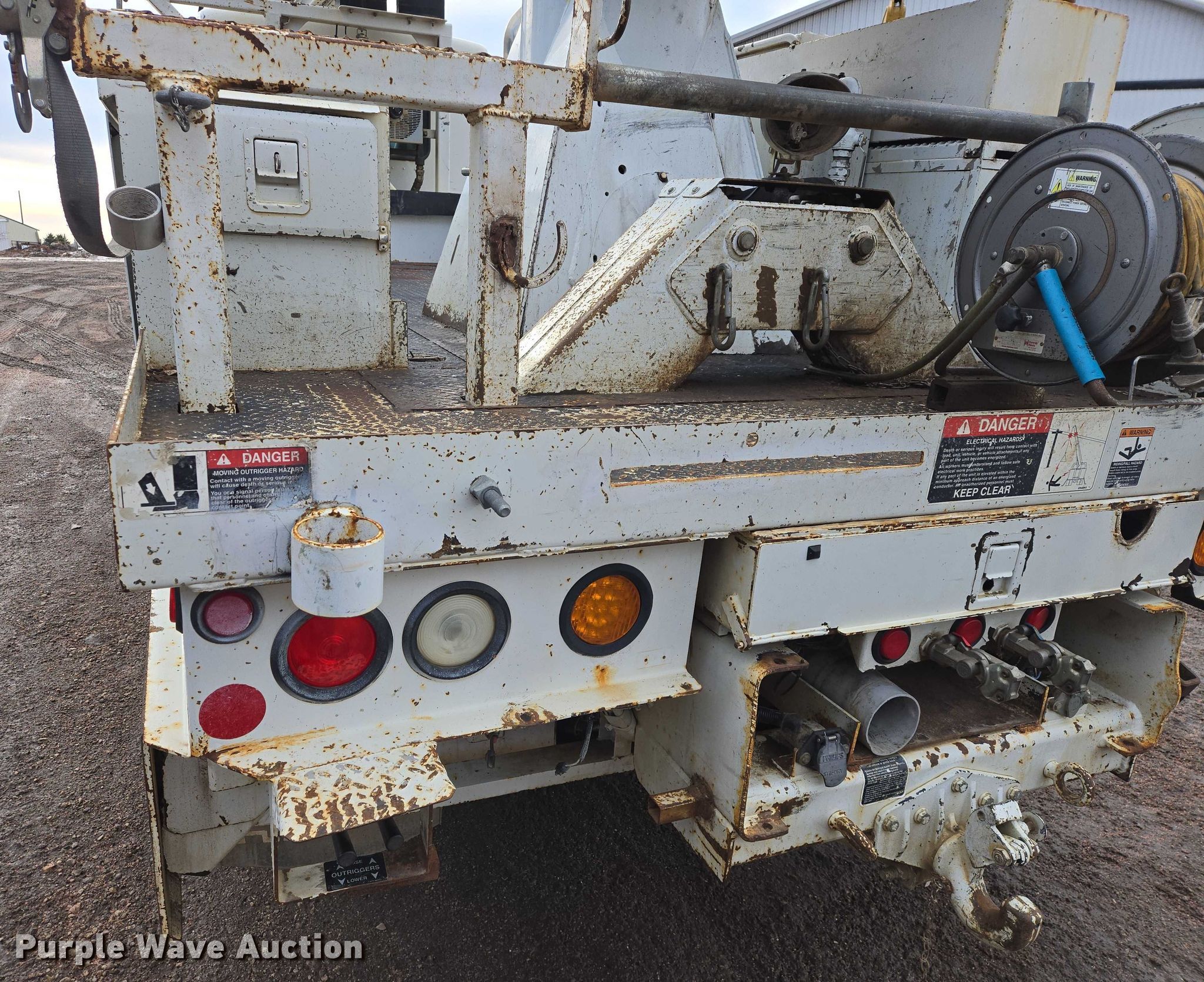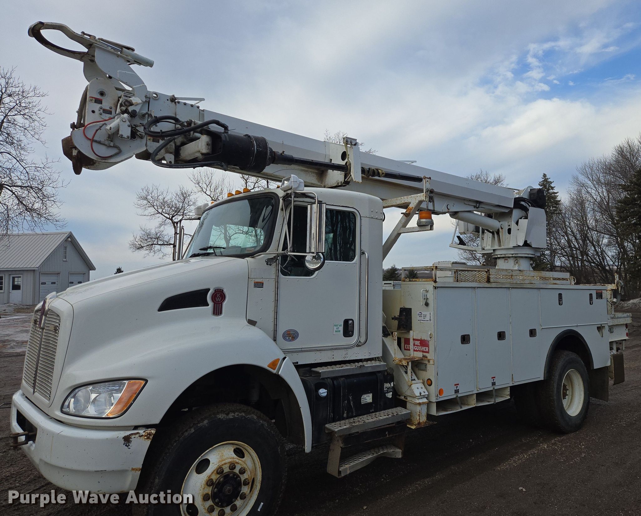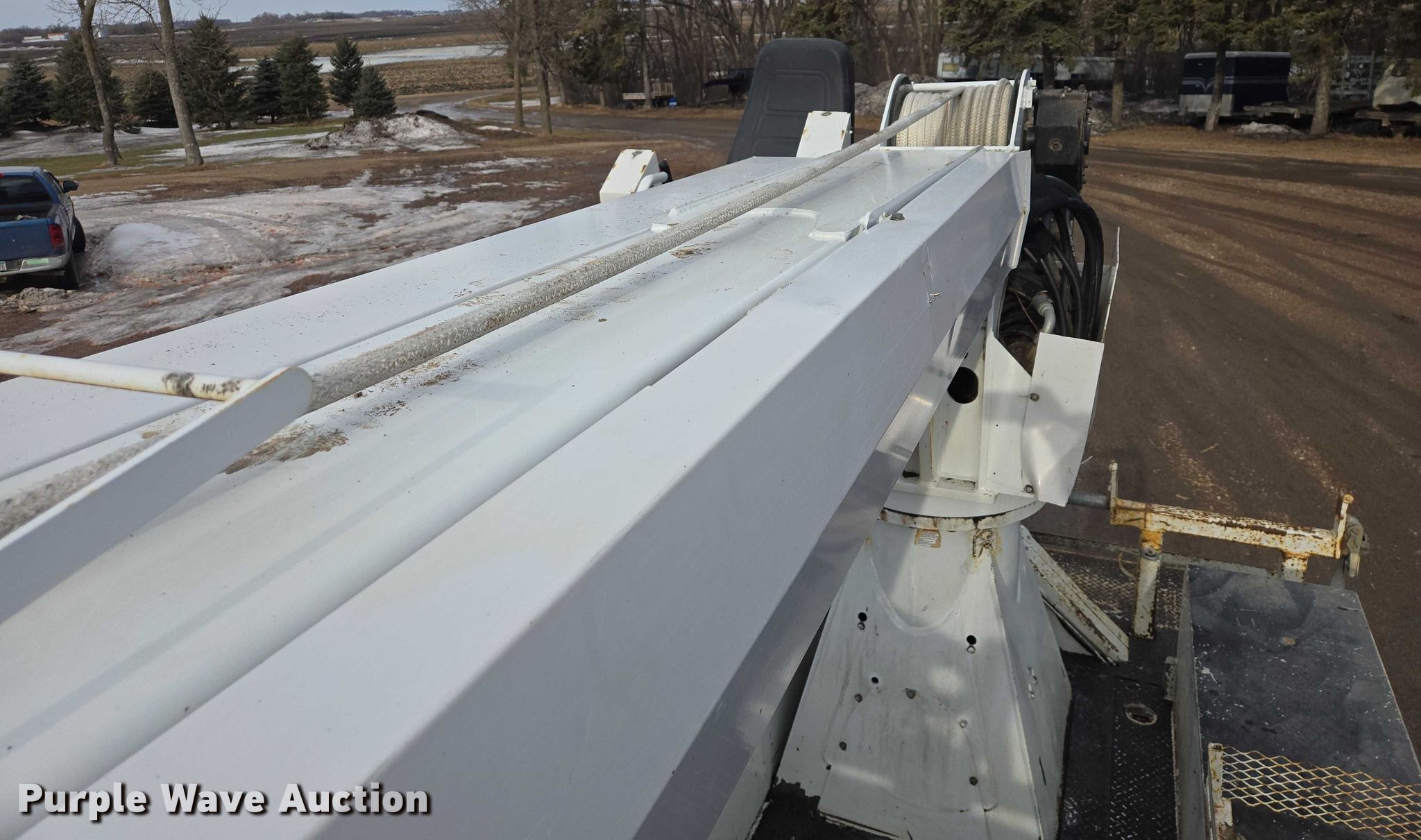 Purple Wave is selling a used Truck Part and Attach. in Minnesota. This item is a Altec DM47TR digger derrick truck bed with the following: Bed, Utility bed, Altec, Serial: 37-165119927, Length: 12' 9", Width: 94", Boom, Altec DM47TR, Serial: 0410DV4518, Maximum lift capacity: 23,790 lbs, Maximum lift height: 47', Boom type: Telescopic, Boom controls, Platform, Remote control, Material handler, Pole guide, Auger