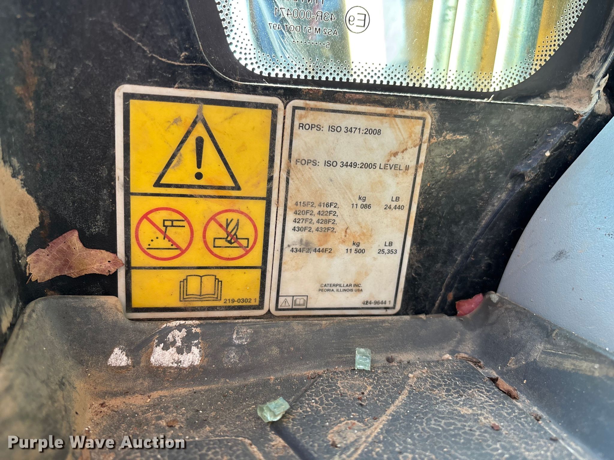 2015 Caterpillar 420F2 IT backhoe. Hours: 3,139 on meter, Miles or hours may vary, unit still in use, Serial: CAT0420FTHWD00506, Unit #: 526. Engine Cylinders: 4, Fuel type: Diesel. Transmission Powershift, 4F - 4R. Chassis Four wheel drive. Operators station Enclosed cab, AC, Heat, Backhoe controls: Pilot control, Pattern changer. Features Loader Quick coupler: Hydraulic, Auxiliary hydraulics, Bucket Caterpillar, Capacity: 1.31 cu.yd., Width: 94", Cutting edge: Bolt-on, Forks Length: 53", Backhoe Extendable stick, Quick coupler: Manual, Auxiliary hydraulics, Bucket Caterpillar, Width: 24", Teeth: 5.. Tires Front: 320/80-18IND, Rear: 19.5L-24IND. Notes Glass missing, Contents not included. Hamilton & Dad Inc.. Springfield, MO 65802