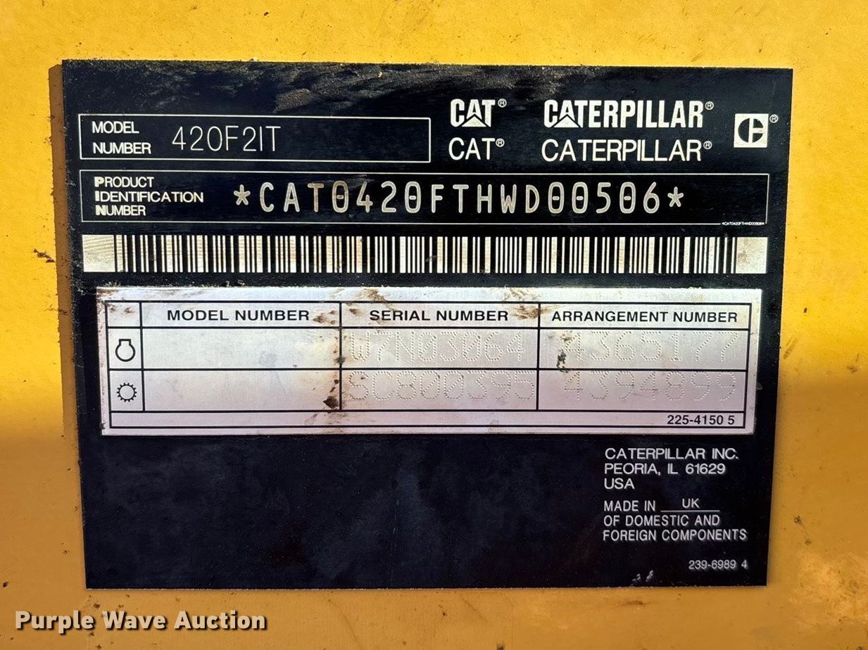 Purple Wave is selling a used Tractor Loader Backhoe in Missouri. This item is a 2015 Caterpillar 420F2 IT backhoe with the following: Hours: 3,139 on meter, Miles or hours may vary, unit still in use, Serial: CAT0420FTHWD00506, Unit #: 526