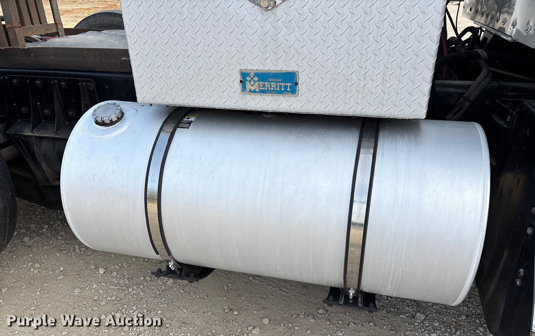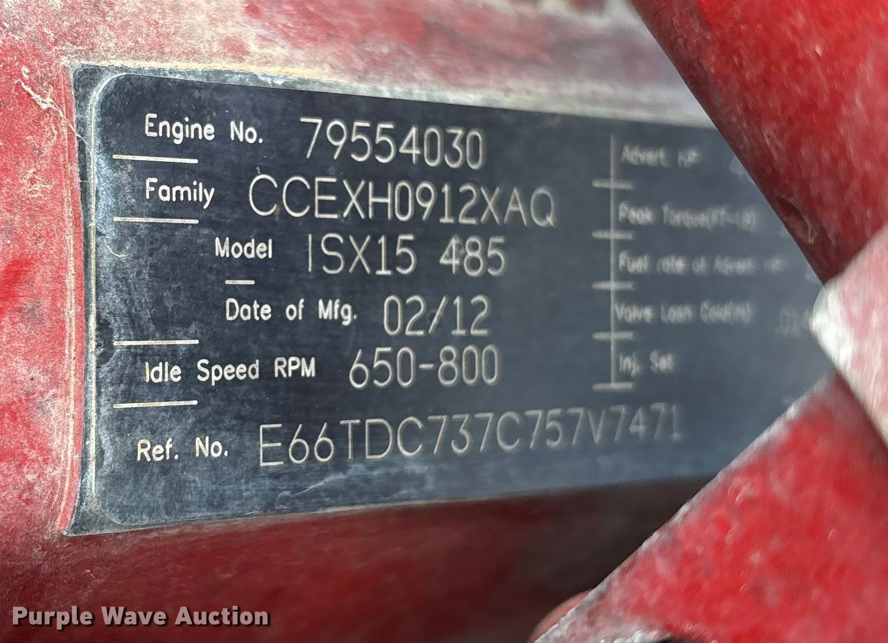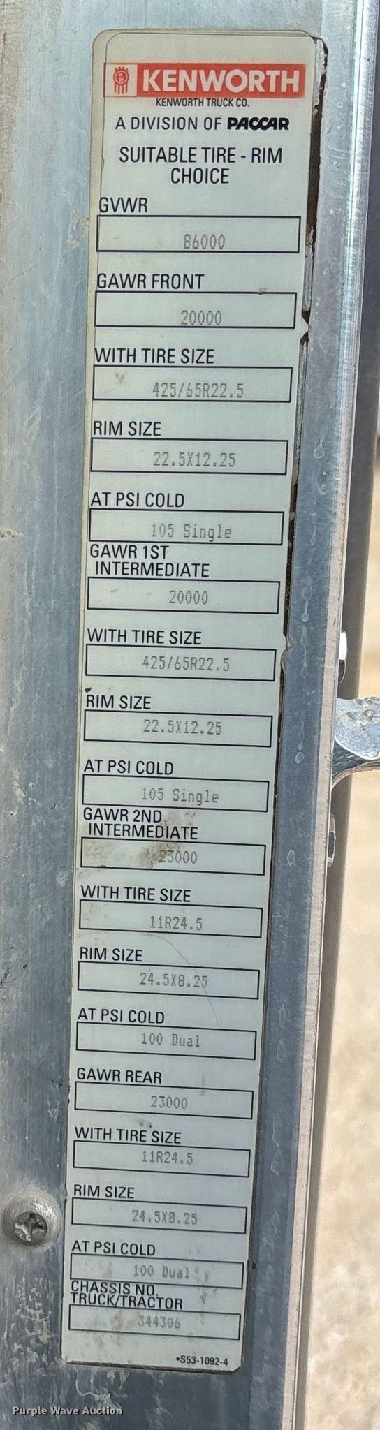 2013 Kenworth T800. Miles: 353,909 on odometer, Hours: 13,351 on meter, VIN: 1NKDX4TX5DJ344306. Engine Cummins ISX15, Serial: 79554030, Displacement: 15.0L, Cylinders: 6, Fuel type: Diesel, HP: 485, Engine brake. Transmission Manual. Chassis Axles: Triple, Pusher axle Steerable, Differential lock: Full, Suspension: Air Dump valves, Brakes: Air, GVWR: 86,000 lbs FAWR: 20,000 lbs, IAWR: 23,000 lbs, RAWR: 23,000 lbs, Lift axle GAWR: 20,000 lbs, Wheelbase: 252". Interior AC, Heat, Heated mirrors, Power locks, Cruise control, Air ride cab, Auxiliary controls. Features Deck plate: Steel, Fifth wheel type: Air operated, Sliding, Fuel tank: Dual. Tires Front: 425/65R22.5, Rear: 11R24.5, Lift axle: 425/65R22.5. Notes Dash warning indicator: ABS, Windshield chipped or cracked, Emissions system modified, DEF deleted, Unknown operating condition of lift axle. Texas title. Title distribution may be delayed up to 30 days from verification of funds. CTC Transportation - Open inspection February 24th. 3540 Euless South Main Street. Euless, TX 76040