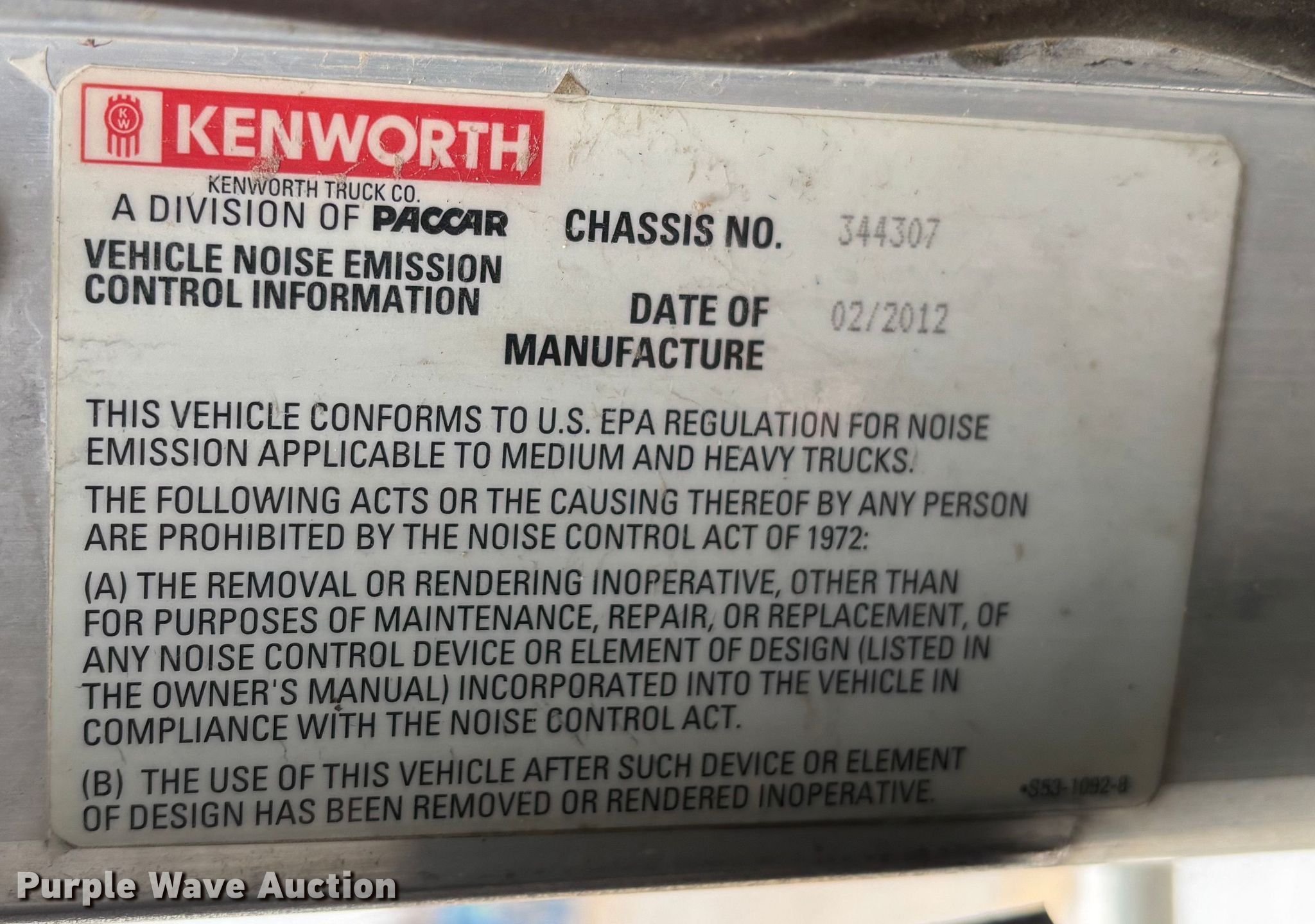 Purple Wave is selling a used Truck Tractor in Texas. This item is a 2013 Kenworth T800 semi truck with the following: Miles: 343,901 on odometer, Hours: 4,135 on meter, VIN: 1NKDX4TX7DJ344307, Unit #: 259