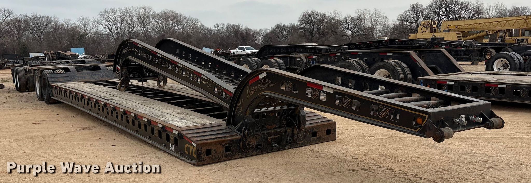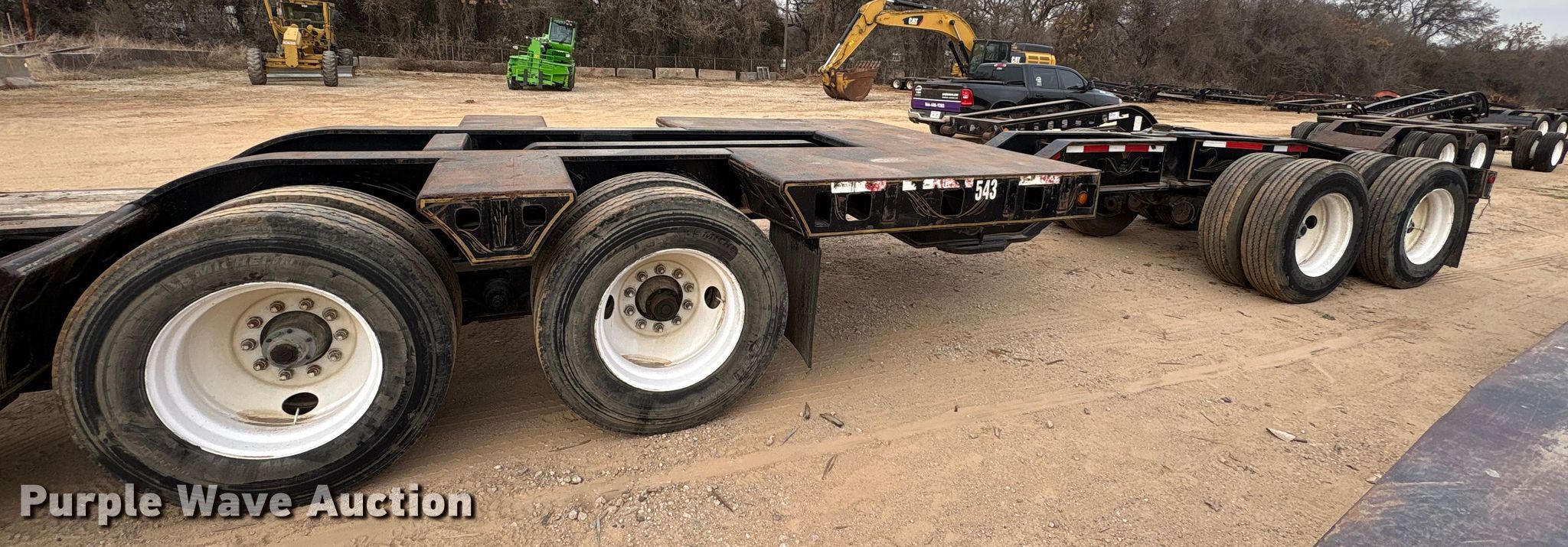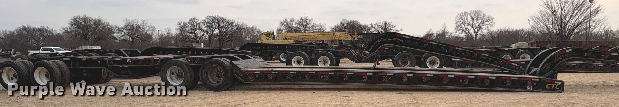 1987 Siebert 70T2ABTM lowboy equipment trailer. VIN: 1S9TK5021H1111188, Unit #: 543. Dimensions Overall Length: 73', Width: 102", Deck Length: 30', Width: 102", Tail length: 173". Features Deck type: Wood, Neck type: Detachable. Chassis Suspension: Walking beam, Brakes: Air, Axles: Tandem. Tires Steel wheels, Size: 11R24.5. Notes Additional 206" neck included. Siebert stinger axle Dimensions Overall Length: 177". Chassis Brakes: Air, Axles: Tandem. Tires Size: 11R24.5. Trailer: Transfer of ownership documentation will be a bill of sale. Stinger axle: Transfer of ownership documentation will be a bill of sale. CTC Transportation - Open inspection February 24th. 3540 Euless South Main Street. Euless, TX 76040
